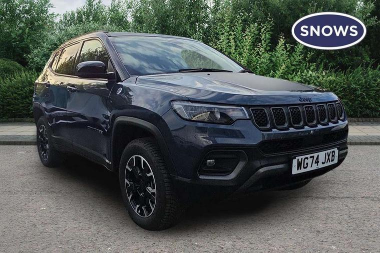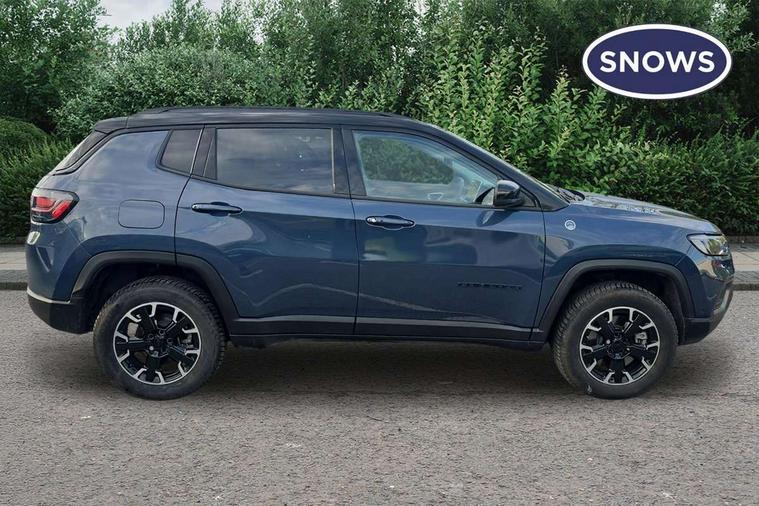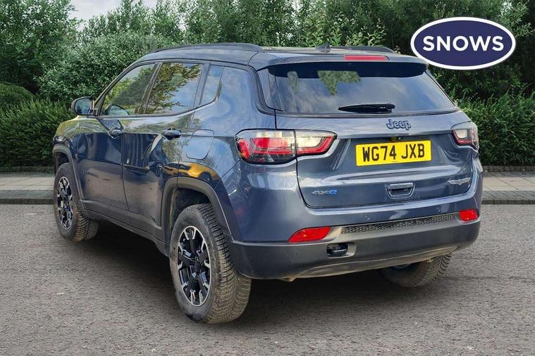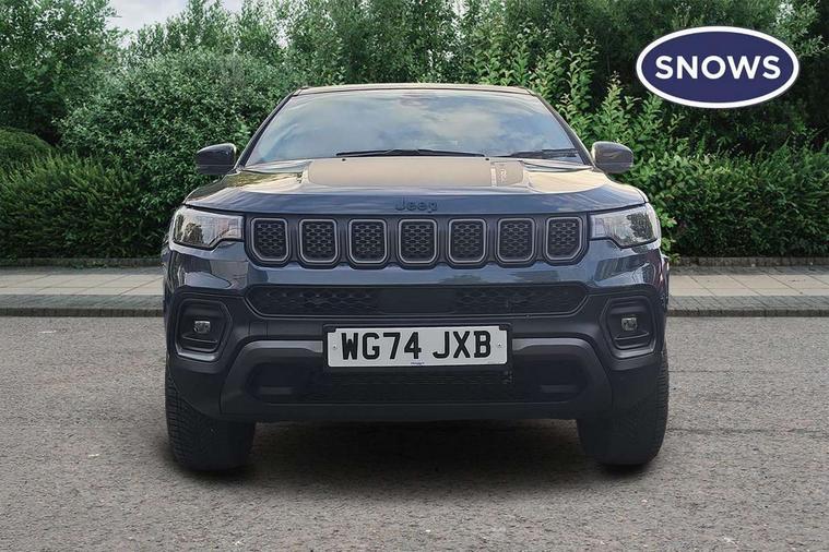 160 MPH primary speedometer, Active lane management, Active speed limiting device, Adaptive cruise control with Stop and Go, Drowsy driver detection, E-call, Electric power steering, English owners handbook, Extended Guide in English, Full speed forward collision warning plus mitigation, Instrument cluster- 10.25" TFT Colour display, Instrument panel, Intelligent speed assist, Media centre electronic storage, Outside temperature display, Parallel and perpendicular park assist with exit, Parksense front and rear park assist system, Selec terrain system with sport mode, Tachometer, TBM - Connected services (e-call), Traffic sign recognition (TSR), United Kingdom equipment group, Vehicle information centre, Wireless charging pad, Battery run - down protection, Battery skid plate, CO2 improvement, E- launch, E-creeping, E-Parking, E-Queueing, Electric drive, Electronic roll mitigation, Mode 3 cable, Off road suspension, 6 speakers, Bluetooth audio streaming, DAB Digital radio, Global telematics box module (TBM), Media hub (USB A-C TYPE), Steering wheel mounted audio controls, USB A and C type - second row, USB host flip, Wireless CarPlay/Android Auto, 4XE badge/e-Hybrid badge, Accent/body colour bumpers, Aspherical driver's exterior mirror, Auto dimming rear view mirror, Auto high beam, Automatic headlights, Belly pan - underbody protection, Black side roof rails, Black window surrounds, Body colour door handles, Carry back MHEV, Chromed DLO, Coastdown and run-in optimization, Compass badge, Daytime running lights, Deep tint privacy glass, Door mirrors: power adjustable and folding, heated with auto folding function and indicators, Exterior door mirrors with heating element, Front fascia/belly pan skid plate, Gloss black exterior door mirrors, Gloss Black Grille - Gloss Black Crosshairs, Headlamp leveling system, Headlamp off time delay, Heated rear window, Higher ground clearance, Jeep badge, LED front fog lamps, LED projector headlamps, LED rear lights, LED tail lights, Lower bodyside cladding in black, Neutral gray headlamp bezels, Neutral grey exterior accents, Off road bumper, Partial body cover protection, Power windows - driver and passenger express up/down, Rain sensitive windscreen wipers, Rear fascia, Rear fog lamps, Rear Jeep Badge, Rear side wing doors, Rear windshield washer/wiper, Red rear tow hook, Removable short mast antenna, Skid plate shield - front suspension, Skid plate shield - fuel tank, Skid plate shield - transfer case, Skid plate shield - transmission, Smartbeam headlights, Third brake light, Trail Rated, Trail rated badges, Trailer sway damping, Trailhawk badges, Trailhawk hood decal, UK front number plate bracket, Windshield wiper de-icer, 12V auxiliary power outlet - 2nd row, 3 rear seat head restraints, 3 seat bench in 2nd row, 6 way manual adjust front passenger seat, 60/40 split folding rear seat, All weather floormats with Jeep logo, Cargo area lights, Cargo compartment carpet, Cargo compartment cover, Cargo compartment organiser, Cargo compartment reversible mat, Cargo load floor, Cargo tie down loops, Centre console with sliding armrest, Centre rear 3 point seat belt, Child seat anchorage points, Cloth/vinyl upholstery, Coat hooks, Dash insulation, Driver assist handle, Driver seat 6 way manual adjust, Driver seat memory function, Dual zone temperature control with preconditioning capability and heater, Easy To Clean Seat, Fold flat front passenger seat, Front head restraints, Front height-adjust seatbelts, Front map pocket LED lamps, Front map reading lights, Front seats back map pockets, Full length centre console, Glovebox light, Glovebox with damped door, Heated front seats, Heated steering wheel, Height adjustable cargo load floor, Illuminated door entry system, Interior door handle LED lamps, Internal rear grab handles, Leather wrapped gear knob, No Alternator, Overhead console, Overhead dome LED lamps, Passenger assist handles, Power 2-way driver lumbar adjustment, Rear air conditioning and heater vents, Rear seat armrest with cupholder, Single front passenger seat, Spare wheel storage insulation, Sunvisors with illuminated vanity mirrors, Tilt/telescopic steering column, Vinyl wrap steering wheel, Ventilated leather seats - Compass Trailhawk, AEB with pedestrian and cyclist detection, All speed traction control, Automatic electronic hold brake, Driver's front airbag, Dual note electric horns, Dual tyre pressure - lum changes, Electrical steering column shaft lock, Electronic parking brake, Electronic stability control, Energy recovery system, Front and rear side curtain airbags, Front passenger airbag, Front side airbags, Hill descent control, Hill start assist, Jeep call assistance label, Passenger airbag deactivation switch, Rain brake support, Rear door child protection locks, Rear seat belt reminder, Tyre pressure monitoring display, Capless fuel filler, Occupant detection system, Passive entry and keyless go (Key fob without panic button), Power locking fuel filler door, Premium security alarm, UK Warranty, Front and rear air vents, Speakers in satin chrome silver, 17" diamond cut painted high gloss black alloy wheels, No fix and go kit,