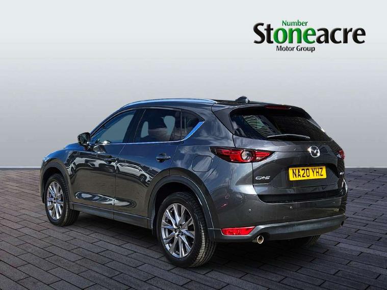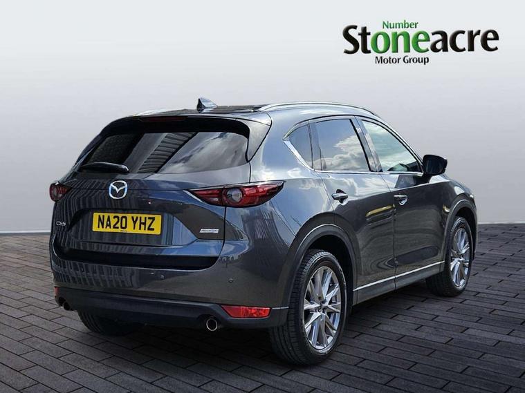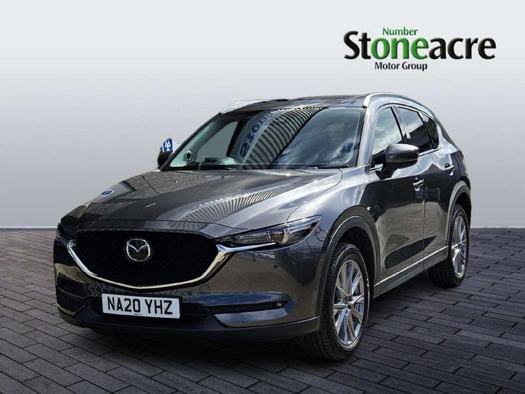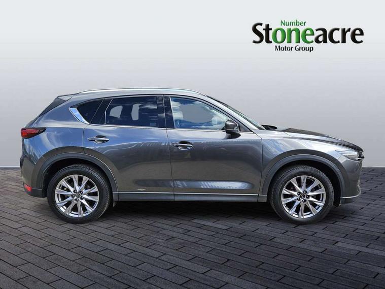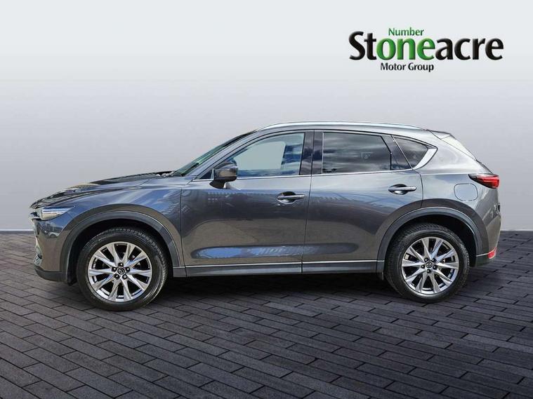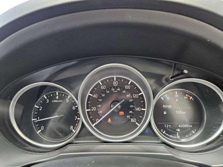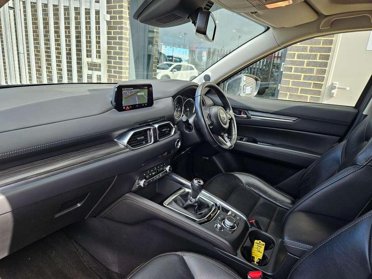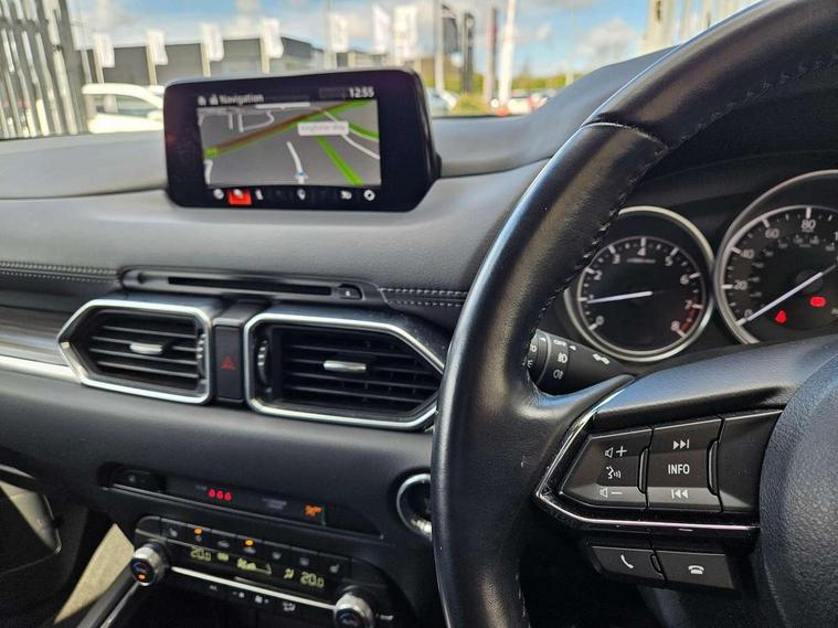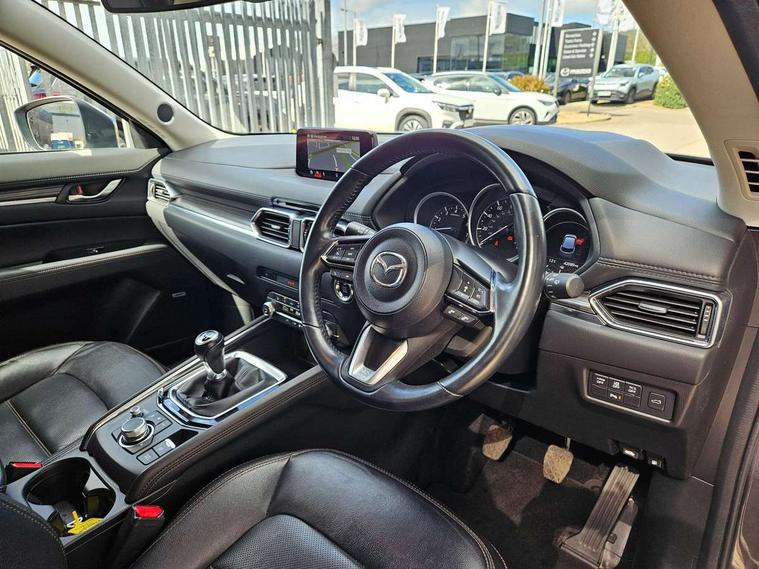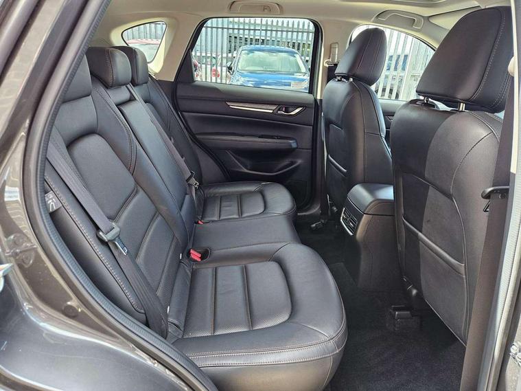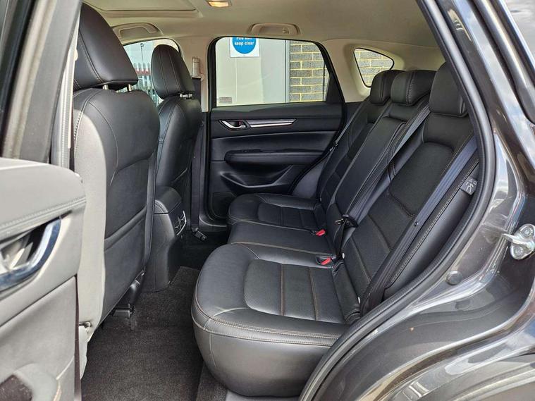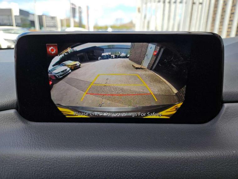 Dark vinyl door panel inserts, 18" Bright alloy wheels, Emergency tyre repair kit, Remote central locking with deadlocking and automatic door lock when driving, Smart keyless entry, Thatcham accredited alarm and immobiliser, 2 USB charging ports in front inner central armrest, AM/FM and DAB radio, Bose surround sound system with 12 Speaker, Bose center point, Bass match and audio pilot technology, Steering wheel mounted audio/bluetooth controls, 3 point ELR front seat belts x2 with pretensioners, 3 point ELR rear seat belts, Anti-lock braking system (ABS), Drivers knee airbag, DSC - Dynamic Stability Control, Electronic parking brake with auto disengage function and auto hold function, Front and rear curtain airbags, Front dual stage driver and single stage front passenger airbags, Front passenger airbag cut-off switch, Front side airbags, Front smart city brake support, G-Vectoring control plus, Hill launch assist, Manual child lock in rear doors, Mild Hybrid system with regenerative braking, Seatbelt reminder for driver/front passenger and rear seats, Traction control system (TCS), Tyre pressure monitoring system (TPMS), Adaptive LED Headlights, Auto dimming driver's door mirror, Auto headlight levelling, B-pillar and C-pillar garnishes in piano black finish, Body coloured, electrically adjustable, heated auto power folding door mirrors with integrated indicators, Chrome finish signature wing in front grille, Coming/leaving home lighting function, Door mirrors with adjustable memory and tilt-down function when reversing, Dual chrome exhaust, Dusk sensing headlights, Electric front/rear windows with one touch auto up/down, Frameless auto dimming interior rear view mirror, Front kodo turn signal, Gloss black front grille, Gloss black rear roof spoiler, High beam assist, LED signature daytime running lights, Power tilt/slide sunroof, Privacy glass (rear side windows and rear screen), Rain sensing front wipers with adjustable speed and intermittent wipe, Rear fog lights, Rear side wing doors, Rear wiper, Signature LED rear combination lights, Third brake light, 12V power outlet in centre console, 3 seat bench in 2nd row, 60/40 split fold down rear seats, Chrome horn pad ring, Chrome interior trim accents with steering wheel centre bezel, surround of engine start / stop button and glove box handle, Dashboard, door cards and front centre armrest in rich brown leather, Driver and front passenger visors with covered vanity mirror and driver ticket holder, Driver's seat power slide, recline, height, seat tilt and lumbar adjustment with head up display and driver door mirror memory, Driver, front passenger and two rear door storage, Driver, Front passenger and two rear grab handles with coathooks, Dual zone climate control air conditioning with rear air vents, Folding rear centre armrest with two cup holders, Front and rear (x3) head restraints, Front and rear LED lighting, Front armrest, Front centre storage with two cupholders with lid, Front passenger seatback pockets, Front passengers seat manual slide, recline and height adjustment, Glovebox illumination, Heated front seats with 3 stage setting, Heated steering wheel, ISOFIX child seat anchorage points attached on outer rear seats, Leather upholstery with interior accents, Leather wrapped gear shift knob, Leather wrapped steering wheel with telescopic and tilt adjustment, LED luggage compartment lighting, Light roof headlining and pillars, Paddle shift controls, Rear armrest inner material in cloth, Roof mounted sunglasses holder, Single front passenger seat, 7" TFT Colour driver instrument panel display, 8.8" Colour centre touch screen display with Mazda Connect infotainment, Adaptive cruise control (Mazda radar cruise control) features stop and go, Apple car play/Android Auto, Blind spot monitoring with rear cross traffic alert, Drive mode selector, Driver attention alert system, E-call with GPS, Emergency stop signalling system, Engine start/stop button, Front and rear parking sensors, Integrated bluetooth, Integrated Mazda navigation system, Intelligent speed assist, Lane keep assist system (LAS) with Lane departure warning system (LDWS), Mazda connected services, Multimedia Commander including separate volume dial, PAS, Power lift gate, Reversing camera, Service indicator, Traffic sign recognition, Trip computer, i-stop,