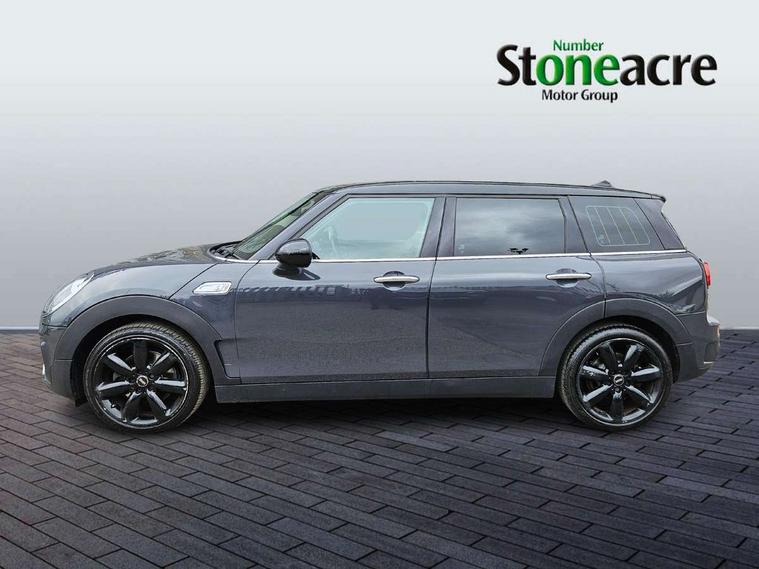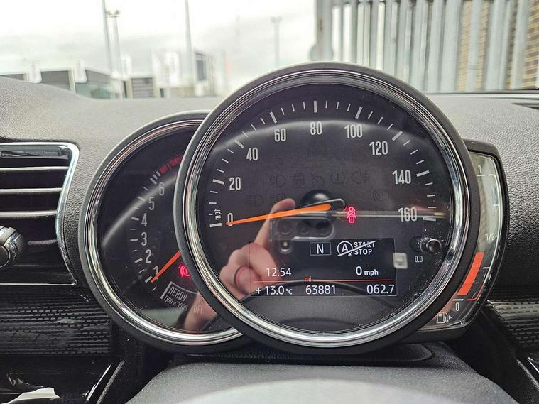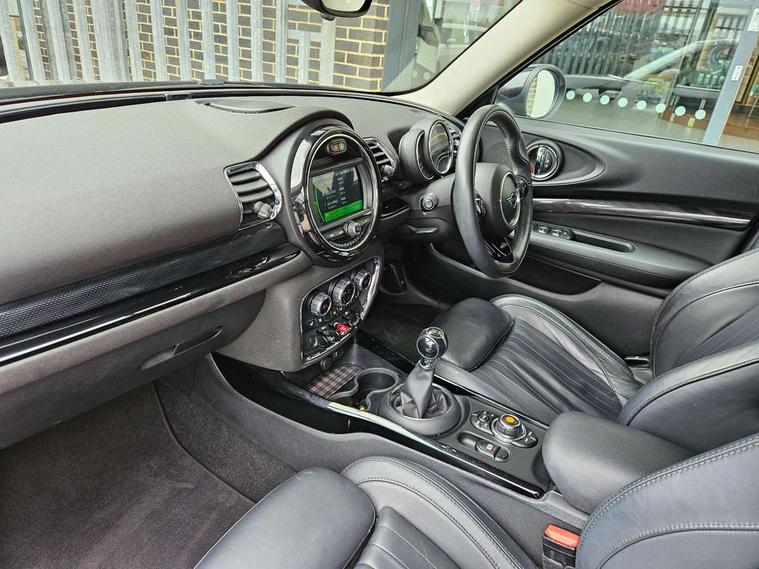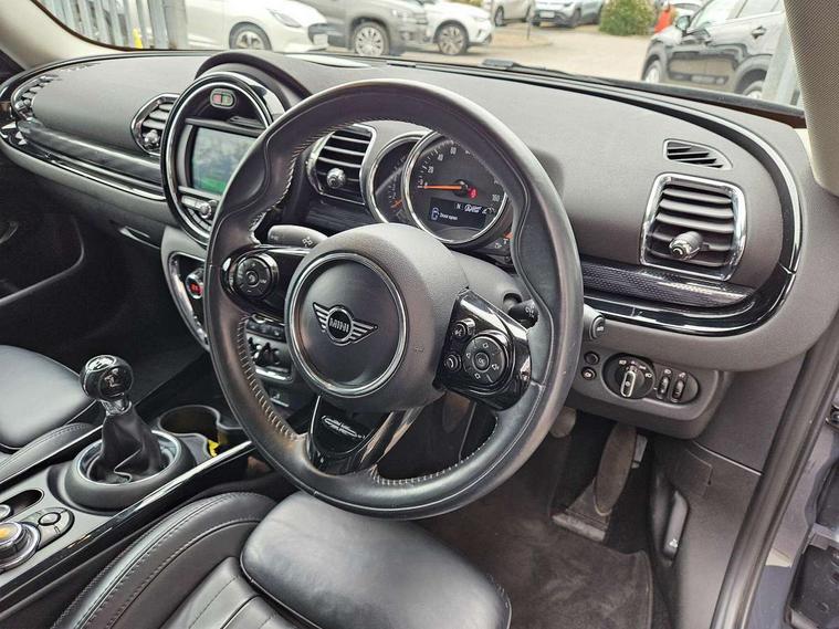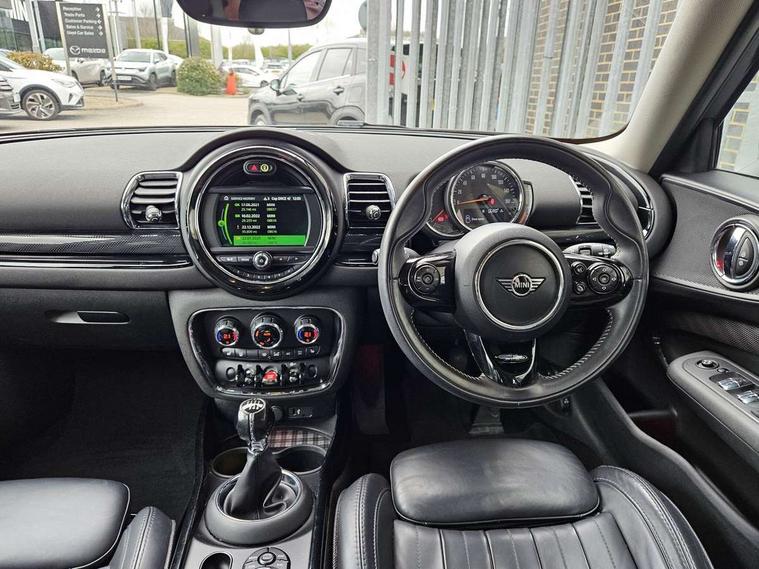 Active Guard incl speed limiting and lane departure functions with auto steering, and front collision warning with brake intervention, Automatic start/stop function with brake energy recuperation, Compatible mobile phone bluetooth with audio streaming, Electro-mechanical speed dependant steering assistance, Instrument cluster, Mini E-call, MINI TeleServices, On board computer, Double Vanos system, Fully variable valve control, High precision injection, Performance Control, FM tuner and DAB digital radio, Bonnet scoop, Chrome border honeycomb structure radiator grille with S badge, Chrome fuel filler cap, Chrome line exterior, Dynamic brake lights, Electric windows, Heated rear window, Heated windscreen washer jets, Metal door sill strips with Cooper S imprint, Model logo, Model logo on rear doors, Piano black exterior, Rain sensor with auto headlights, Rear fog lights, Rear window wiper, Side scuttle panel with integrated indicator, Split rear doors, Sun/heat protection glass, Twin exhaust tailpipe, White indicator lenses, 12V Accessory socket in centre console, 360L luggage compartment capacity, 4 lashing eyes in luggage compartment, 60/40 split folding rear seat, Chrome interior highlights, Cupholders, English handbook, Glove compartment, Height and length steering column adjustment, Interior lighting with 12 basic colours selectable via toggle switch in roof, Isofix rear child seat preparation, Leather gearshift lever and handbrake gaiters, LED reading lights, vanity mirror lights, front foot well light and spotlight on front seats, Manual air conditioning, Mechanical seat adjustment, driver seat height adjust, forward/back and front seats backrest, MINI Yours fine walk nappa leather steering wheel with contrast stitching in silver and MINI Yours badge, Multifunction steering wheel, Storage compartments in doors, Sunvisors with vanity mirrors, Toolkit, Excitement pack - Clubman, Navigation pack - Clubman, 2 tone horn, 3 point seatbelts on all seats, 6 Airbags - front, side, head and seat belt tensioners, Anti-lock braking system (ABS), DSC - Dynamic Stability Control, Electronic handbrake, Front and rear disc brakes, Tyre pressure monitoring system, Alarm system with tilt sensor, monitoring doors, bonnet interior and tailgate, Auto drive away locking, Deadlocking function, Electronic vehicle immobiliser, Locking wheel bolts, Start/stop toggle with keyless go, Chrome line interior,