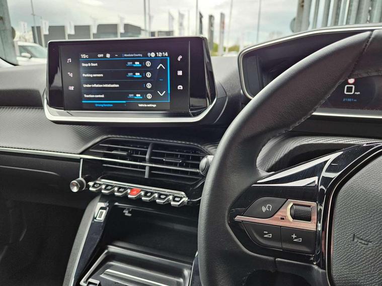 Bluetooth telephone facility, Driver attention warning, E-call, Exterior temperature indicator with ice warning, Lane keep assist, Mirror screen with mirror link, apple carplay and android auto, Multi function trip computer, PEUGEOT i-Cockpit with compact steering wheel, PEUGEOT i-Cockpit with configurable 3D headup instrument panel, PEUGEOT SOS and assistance, Rear parking sensor, Smart phone docking station, Speed limit recognition and recommendation, Start/stop system, Visio Park 1 with 180 degree Colour reversing camera, 2 front USB socket with USB-C, 2 USB sockets in rear, 6 speakers radio with mp3 compatible, DAB Radio (Digital Audio Broadcasting), Voice recognition for radio, navigation and telephony features, 2 X Rear number plate lights, Automatic front windscreen wipers, Automatic hazard light activation upon heavy brake application, Black front wing trim with gloss black detail, Body coloured exterior door handles, Chrome Lion Badge front and rear, Colour coded rear spoiler, Colour coded roof, Dark tinted rear side and tailgate windows, Diamond black mirror shells, Eco LED headlights, Electric, heated, and power folding door mirrors, Electrochrome rear view mirror, Front bumper - Silver lower trim, Gloss black finish on B pillar, Gloss black longitudinal roof rails, Gloss black rear cluster connecting strip, Gloss black roof bars, Headlights left on audible warning, LED daytime running lights with distinctive tooth design, LED third brake light, Model designation badges front and rear, One touch electric front/rear windows with pinch protection, Radiator grille - gloss black top edge trim, Radiator grille chrome chequered, Rear full LED 3D peugeot signature claw effect lights with daylight function, Rear reversing lights, Rear side wing doors, Rear windscreen wiper triggered automatically in reverse gear, Tailgate with heated rear windscreen and wiper blade, Trailer Stability Programme, Variable front intermittent wipers, Wheel arch extensions, 1/3 to 2/3 split folding rear seats, 12v power outlet - front, 12V socket, 3 seat bench in 2nd row, Automatic air conditioning with pollen and active carbon filter, Central front armrest with storage compartment, Driver and front passenger comfort seats, Driver seat manual adjustment - height, longitudinal and back rest angle, Electric power steering with reach and rake adjustable steering column, Front centre armrest, Front LED interior light with 2 reading spotlights and rear interior light with timer, Front passenger seat manual adjustment - height, longitudinal and back rest angle, Gear lever top - manual in full grain leather, Gear shift indicator, High centre console, Leather steering wheel, Mint green contrast stitching to front centre console, door panels and dashboard facia, Modular boot floor, Multifunction steering wheel, Piano keys: Gloss black and chrome toggle switches to access main functions of the vehicle, Roof lining - light grey, Seatbelt unfastened on the move audible and visual alert for front and rear seats, Single front passenger seat, Switch for Push Button Start finished in black with chrome surround, Tri material cloth/leather upholstery, Visibility pack - 2008, 2x 2nd row ISOFIX child seat mountings, ABS (Anti-lock Braking System) with EBD (Electronic Brakeforce Distribution) and EBA (Emergency Braking Assistance), Acoustic vehicle alerting system, Active safety brake with night function/cyclists/pedestrians, Adaptive driver and front passenger airbags with passenger airbag deactivation function, Child locking functionality on rear doors, Driver/front passenger side airbags, Electric parking brake, ESP (Electronic Stability Program) + Hill Start Assist, Front and rear curtain airbags, Front and rear disc brakes, Front and rear three-point retractable seatbelts, with force limiters, Front optimised safety headrests and rear retractable headrests (x3), height adjustable, Tyre pressure sensor, Alarm system with anti-lift sensor, Automatic door locking when moving off, Deadlocks, Electronic code immobiliser, Exterior door lock x1 (Left-hand or passenger’s side), Remote central locking, Carbon effect Dashboard, front and rear door panel finish, 17" Salamanca diamond cut alloy wheels,