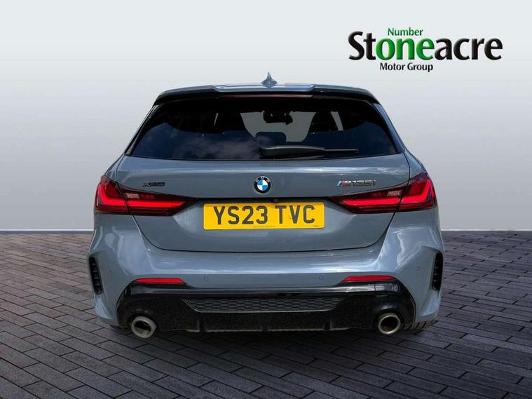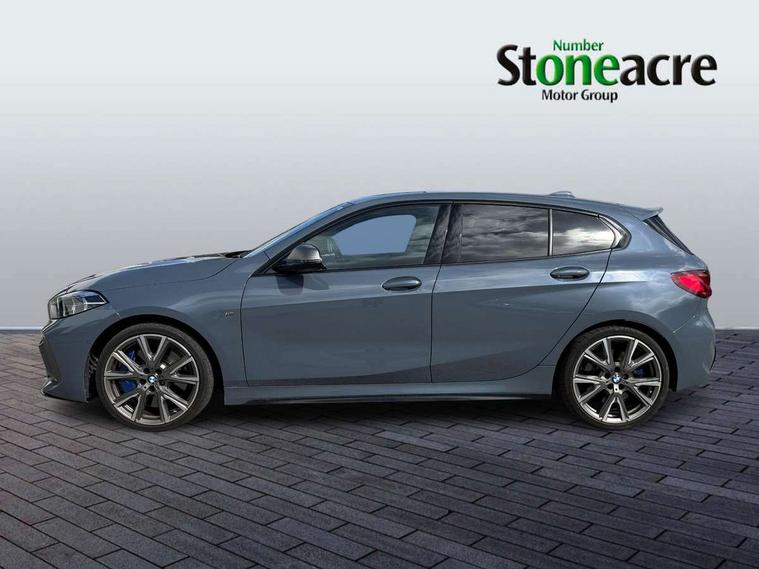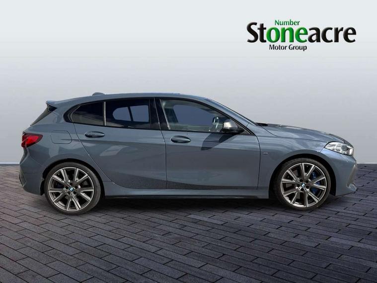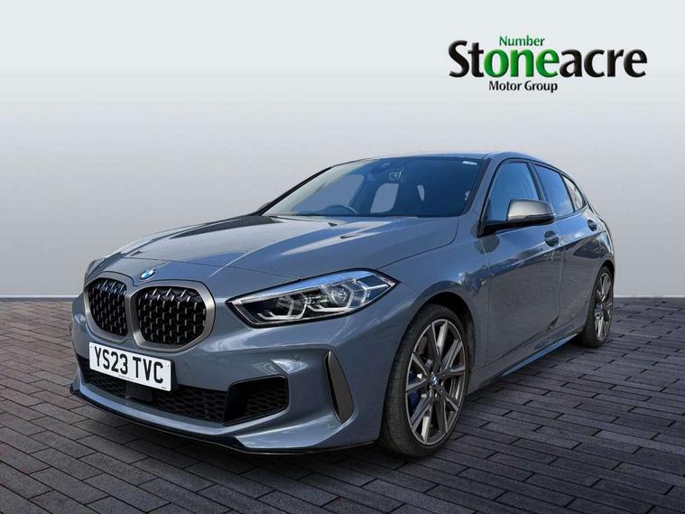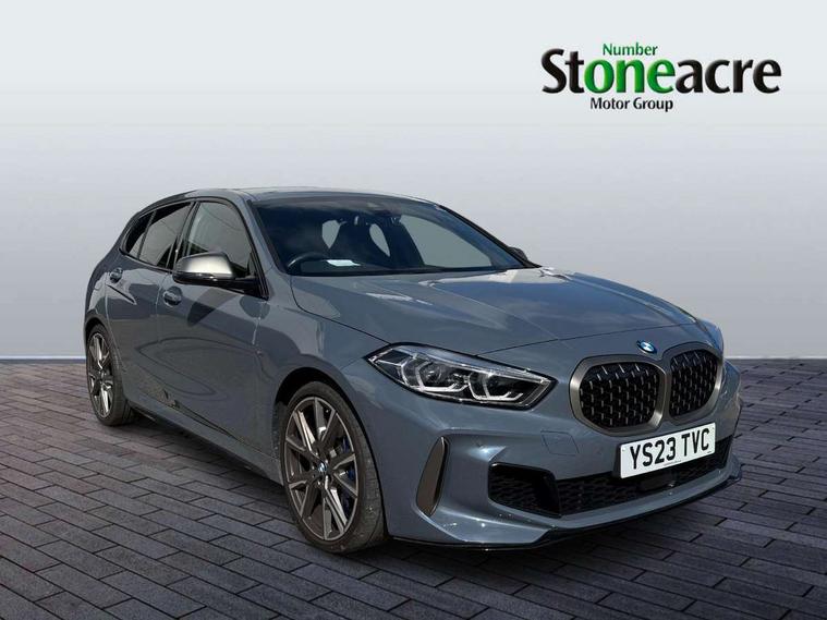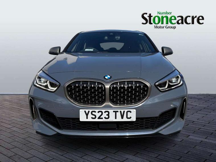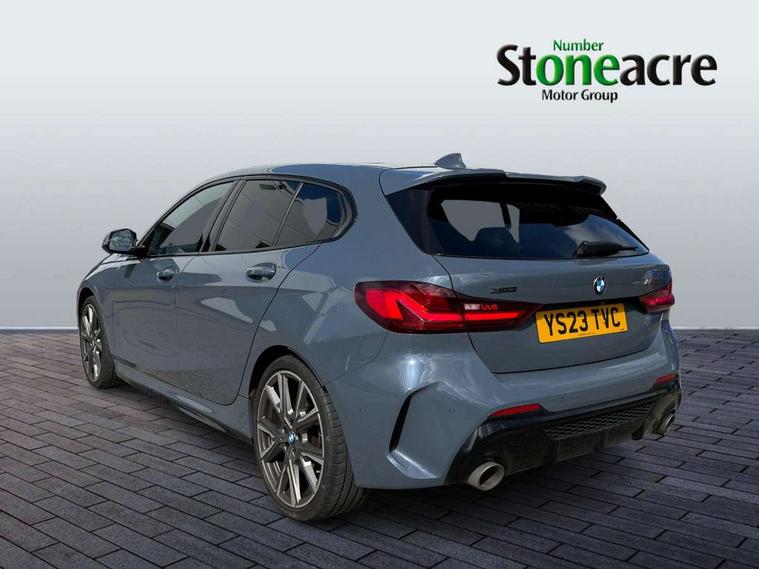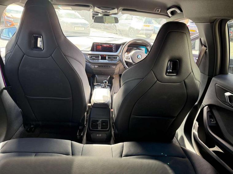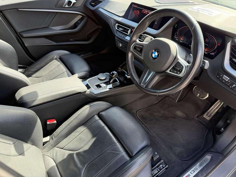 Active guard plus, Attentiveness assist, BMW ConnectedDrive online services, BMW Teleservices, Check Control warning system for monitoring of lights and door/luggage compartment open warning, Cruise control with speed limiter, Eco pro mode, Electric power steering, Electro hydraulically controlled multi-plate clutch transfers drive to rear axle and with power take-off device located on the front differential., Energy efficient operating strategy, Front axle single joint with specific axle kinematics to minimise drive influences on steering + provide increased rigidity agile driving behaviour, Gearshift time display in manual mode, Integrated owners handbook, Lane departure warning system, M Sports steering with M135i xDrive specific settings, Oil sensor for level and grade, On board computer, Optimum shift indicator, Personal Profile, Pull away assistant, Rigidly mounted rear subframe - Multi link construction with separate spring / damper configuration and excellent driving characteristics, Speed limit Info including no-overtaking indicator, Sporty fast gear shifting in sport mode, Aluminium lightweight construction, Anti roll bar front and rear, Balancer shaft, Double VANOS, Drive Performance Control, Eight speed sport automatic transmission with gearshift paddle switches, Electronic differential lock, Electronic selector lever, Engine cover with M performance designation, High precision injection, Larger fuel tank capacity (50 litres), Launch control, M135i specific heavily de-throttled engine intake air guide, M135i specific high-performance cooling package, M135i specific larger turbocharger with integrated divert-air valve, Petrol Particulate Filter, Twin tube gas filled shock absorbers with degressive characteristic curve, VALVETRONIC engine management, Variable, stepless and infinitely adjustable distribution of drive torque between the front and rear axles, xDrive intelligent all wheel drive with M135i specific reinforced components, DAB Digital radio, Auto dimming rear view mirror, Automatic headlight beam throw control, Automatic windscreen wipers and automatic headlight, Body colour door handles, Body colour roof trims, Cerium grey exterior mirror caps, Direction indicator side lights in exterior mirrors, Electrically adjustable exterior mirror with mirror adjustment switch on drivers armrest and aspheric on driver side, convex on passenger side, Exhaust tailpipe, Cerium Grey with bevelled finish - twin, round 100mm, left and right split, Fading support, Folding side mirrors with auto dimming/folding wing mirrors with auto dimming, Follow me home headlights, Front and rear bumper system with replaceable deformation elements, Front and rear electric windows with open and close fingertip control, anti trap facility and comfort closing, Front door sill finishers with M135i designation, Green tinted heat protection glazing, High gloss shadowline window frame, Recess cover mirror frames and B/C pillar embelisher trim, High level third brake light, Integrated front windscreen with washer jets, Kidney grille frame in Cerium Grey with Mesh design, LED daytime running lights, LED eyebrow turn indicators, Lightweight engineering, M logo designation side in cerium grey, M Performance exhaust system with valve control and minimised exhaust back pressure, M Performance specific setup, M Sport spoiler, Matt black air guide grilles, Matt black wheel arch trim, Model designation on electric bootlid includes xDrive designation for M135i xDrive, Nearside reverse light in rear light cluster, Preparation for high beam assistant, Rear fog lights, Rear side wing doors, Rear window wiper, Reinforced crank drive, new pistons and adapted con rods, Shark fin antenna, Trailer stabilisation logic, Visible VIN plate, Welcome lighting, 12V power socket in front centre console with blanking plug, 3 rear seat head restraints, 3 seat bench in 2nd row, 3 spoke sports leather steering wheel with black leather and stitching, pearl chrome decorative finish, specific M Badge, Anthracite headlining, Black boot net with lashing eyes, Cargo function on 2nd seat row, Child seat ISOFIX attachment for two outer rear seats and front passenger seat with anchorage points, Conditioned based service, Driver and front passenger backrest net on rear, Driver and front passenger seat heating, Driver side folding compartment in instrument panel, Folding rear clothes hook, Four grab handles integrated in roof lining, Front and rear door pockets with bottle holders, Front and rear side armrest integrated into door trim, Front armrest, Front M sports seats, Glove compartment, Height adjustable front head restraints, Luggage compartment for bag hooks on left and right, foldable luggage compartment liner and four lashing eyelets, Manual adjust steering wheel, Multi-function controls for steering wheel, Single front passenger seat, Storage compartment in centre console, Storage compartment in luggage compartment, Stowage of the parcel shelf in luggage compartment trim, Sun visors with vanity mirrors and insert tab, Two front centre console cupholders, Two zone automatic air conditioning, Type C two USB ports in rear centre console, Velour floor mats, Additional interior lighting pack - 1 Series M135i, BMW live cockpit professional pack- 1 Series, Connected pack professional - 1 Series, Interior lights pack - 1 Series, M Sport exterior styling aerodynamics pack - 1 Series 135i, 2 tone horn, 3 point seatbelts on all seats, front pyrotechnic belt tensioners, stopper and belt force limiters, rear coded belt buckles, Airbags - Front driver/passenger, front and rear curtain head protection, front side, manual deactivation of front passenger airbag, Anti lock braking system (ABS) with brake assist, BMW emergency call, Brake drying, Braking readiness, Child proof locking system in rear door, City braking function, Comfort modes, Cornering brake control, Crash sensor activating of airbags, Unlocking doors, hazard warning lights, interior light