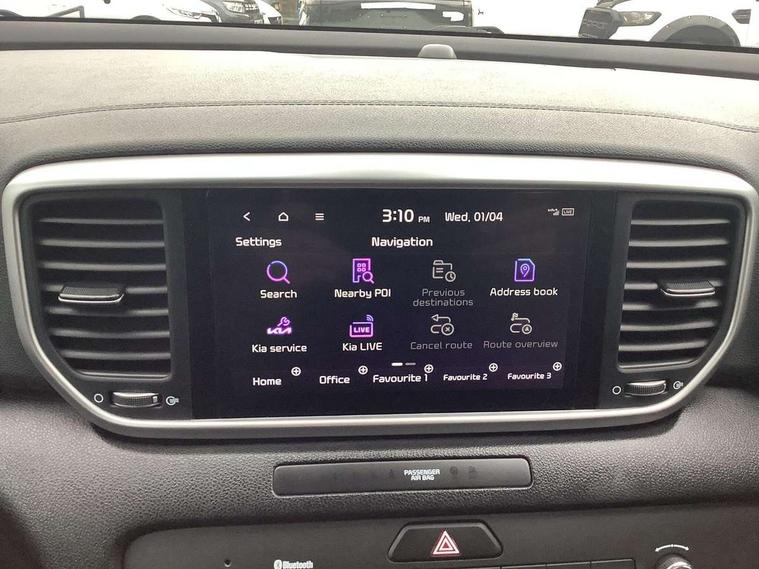 3.5" supervision cluster display, 8" touchscreen satellite navigation with European mapping and traffic messaging channel, Android auto with voice control, Apple car play with voice control, Cruise control + speed limiter, Driver attention warning, Emergency stop signalling system, Kia connected services featuring TomTom live, Lane keep assist, Rear parking sensor, Reversing camera, Speed limit information, Speed sensitive power steering, Telematics system with UVO connect services, Trip computer, Windscreen washer level indicator, Intelligent Stop and Go, 6 speaker audio system, Bluetooth audio streaming, DAB Radio with MP3, Rear USB port, Steering wheel mounted audio controls, USB/iPod/auxiliary input connections, All round electric windows with drivers auto up/down function, Auto dimming rear view mirror, Automatic lighting control, Automatic window defogger, Bi-Function halogen headlights, Black side sill and wheel arch body mouldings, Body colour door handles with chrome inserts, Body colour door mirrors, Chrome front bumper insert, Chrome grille surround, Chrome window surround, Electrically adjustable/heated/folding door mirrors with LED indicators, High beam assist, High gloss black diamond mesh radiator grille, LED daytime running lights, Privacy glass - Rear windows and tailgate, Projection front fog lights with matt black surround, Rain sensing front wipers, Rear spoiler, Rear wiper, Roof rails, Shark fin antenna, Tinted glass, Trailer stability assist, Welcome and follow-me home light functionality, Wide view drivers door mirror, 12V power in front and rear centre console, 3 x passenger assist grips, 60/40 split folding rear seat, Air filter, All-round height adjustable headrests, Centre cabin light, Centre console storage box, Driver and front passenger side sunvisors with illuminated vanity mirrors, Driver's seat manual height adjust, Drivers seat power lumbar support, Dual zone automatic air conditioning, Front and rear door storage, Front cabin LED map light with sunglasses case, Front door courtesy reflectors, Front seat and rear pockets, Front/rear centre armrests, Gear shift indicator, Glovebox illumination, Heated front and outer rear seats, Ignition key lock illumination, Interior door lock/unlock function, ISOFIX Child seat top tethers and anchor fixings, Leather steering wheel, Leather trimmed door armrests, Leather trimmed gearshift, Light grey headlining, Luggage area light, Luggage area load cover, Luggage net with hooks, Premium cloth upholstery, Rear centre armrest with cupholder, Rear coat hooks, Satin chrome interior door handles, Tilt/telescopic adjustable steering wheel, Ventilation ducts to rear compartment, Active front headrests, All round 3-point seatbelts, Anti-lock braking system with electronic brakeforce distribution, Dual front side airbags, Electronic stability control with downhill brake control, Front passenger airbag cut-off switch, Front seatbelt pretensioners + load limiters, Height adjustable front seatbelts, Hill start assist control (HAC), Impact sensing auto door unlocking, Rear door child safety locks, Traction control, Twin curtain airbags with roll over sensor, Twin front airbags, Tyre pressure monitoring system, Advanced anti-theft system including immobiliser and alarm, Door deadlocks, Locking wheel nuts, Remote central door locking with fold away key, Speed sensitive auto door locking, Visible vehicle identification number, Metallic finish centre fascia, 17" Alloy wheels, Tyre mobility kit,