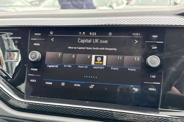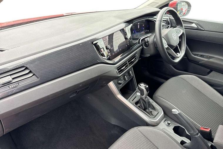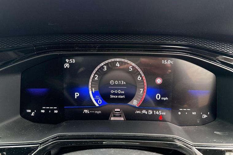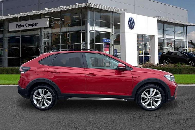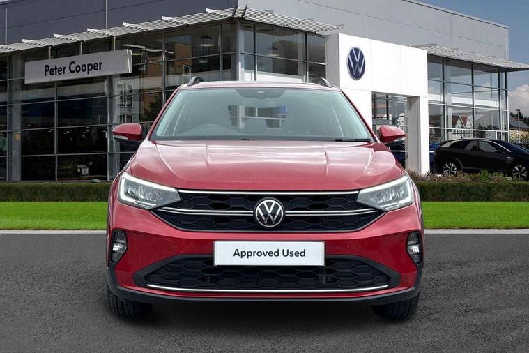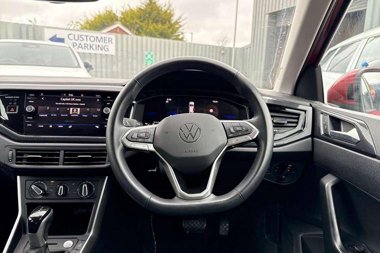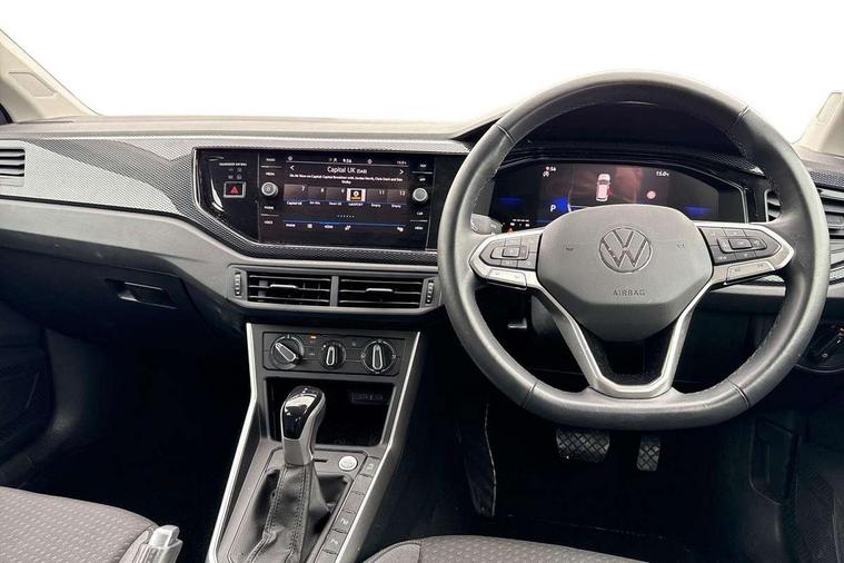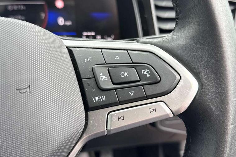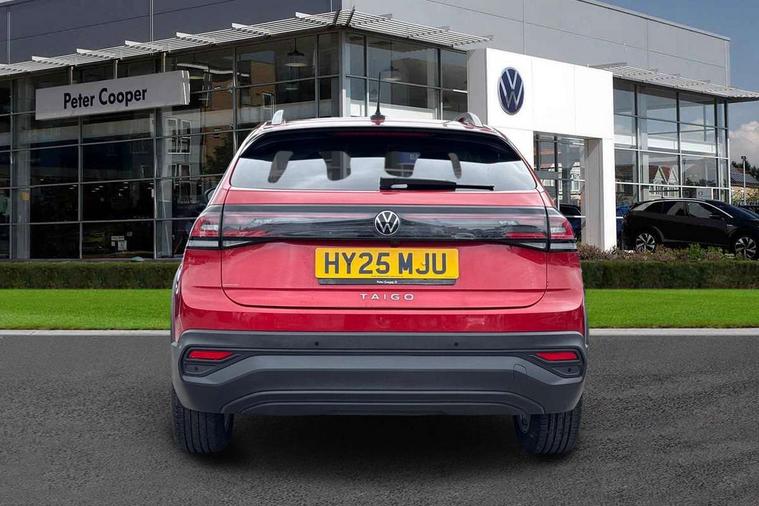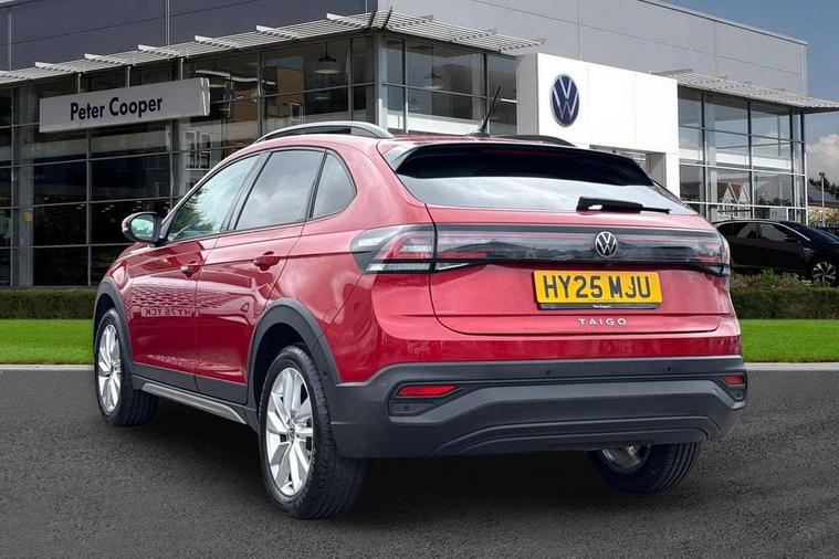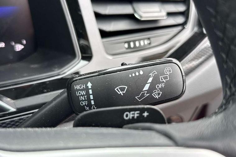 Adaptive cruise control, Advanced driver attention and drowsiness monitor, Dynamic road sign display, e-Call (emergency call), Power Steering, Rear view camera, Travel assist including emergency assist, Washer fluid level indicator, Wireless Charging including Bluetooth, Start-stop system with battery regeneration (recuperation - energy recovery during braking), WeConnect plus, Ambient lighting with logo projection, Aspherical driver's exterior mirror, Body coloured bumpers, Body coloured exterior mirror housings and door handles, Electric windows, External USB type C socket and charging sockets, Heat insulating glass windscreen, LED rear combination lamp, LED third brake light, Left convex exterior mirror, Power folding adjustable/heated exterior mirrors and front passenger exterior mirror lowering function, Rear fog light on one side, reversing light on both sides, Rear side wing doors, Rear wash/wipe with intermittent wipe setting, Side windows in heat-insulating glass, from B-pillar and rear window dark tinted, 'Slash/ Austin' Cloth upholstery, 12V socket in centre console, 2 front reading lights, 3 rear head restraints, 3 seat bench in 2nd row, Black carpets, Ceramique headliner, Child seat anchor for child seat system i-Size, 2x top tether and child seat anchor in front on front passenger side, Door and side trim panels in titan black, Driver and front passenger seat height adjustment, Front centre armrest, Handbrake lever handle in leather, Height and reach adjustable steering wheel, Leather trimmed gear knob, Leather wrapped multifunction steering wheel with paddle shift, Luggage compartment floor, Luggage compartment light, Lumbar support for driver's and front passengers seat, Seat covers in titanium black, Single front passenger seat, Split folding backrest with centre armrest and unsplit rear seat bench, Storage compartment under front seats, Sun visors with illuminated vanity mirrors, Titanium black instrument panel, Chrome Package - Taigo, Drivers assistance package - Taigo, Light and sight pack - Taigo, 2 x 3-point seatbelts/outer rear seats with ECE label, 3-point seat belts in front with pretensioner and height adjustment, 3-point seatbelt for centre rear seat, Driver and front passenger airbag with front passenger airbag deactivation, Driver and front passenger safety-optimised head restraints, Electronic stability control, Extended and predictive pedestrian/ cyclist protection, Front and rear disc brakes, Front curtain and side airbags with center airbag, Hill start assist, Manual rear child locks, Single tone horn, Tyre pressure loss indicator, Anti-theft alarm system with interior monitoring, backup horn, and towing protection, Keyless locking and starting system keyless access with safelock, Black (slush) Dashboard, Lava stone black gloss/matt decorative inserts in dash and front door panels, Low rolling resistance tyres,