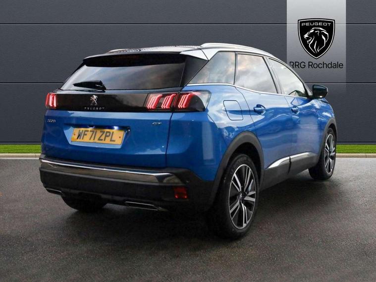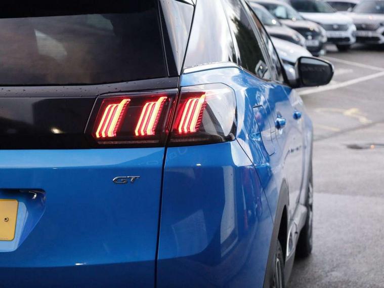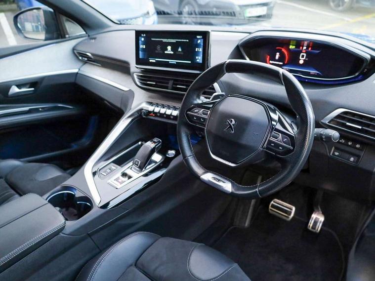 3D connected navigation with 10" HD touchscreen, Bluetooth telephone facility, Drive modes select (Eco, normal and sport), Driving Time Warning (DAA1), Extended traffic sign recognition, Exterior temperature indicator with ice warning, Front parking sensors, Hands free electric tailgate, Mirror screen with mirror link, apple carplay and android auto, Multi function trip computer, PEUGEOT i-Cockpit with 10" high definition capacitive touchscreen, Peugeot i-cockpit with compact multi-function sports steering wheel, PEUGEOT i-Cockpit with configurable 12.3" Head-up digital instrument panel, PEUGEOT SOS and assistance, Rear parking aid, Rear passenger USB charging sockets (x2) (type A), Speed limit recognition and recommendation, Visio park assist 360 with colour camera system + automatic parking assist, Voice recognition, Dynamic stability control and electronic anti-skid system, Stop/start function, DAB Digital radio, Focal premium HiFi sound system, USB socket, Auto self levelling headlights, Automatic hazard light activation upon heavy brake application, Automatic triggered rear windscreen wiper in reverse gear, Black with chrome detailed front wing trim, Body colour door handles, Body colour rear roof spoiler with stainless steel edging trim, Body protectors (bottom of front and rear bumpers + wheel arches + protection at bottom of doors) in black, Dark tinted rear side windows + tailgate window, Diamond Black door mirror shells, Door mirror mounted LED courtesy floor lighting, Electric folding door mirrors with exterior courtesy LED lighting, Electric operated/heated door mirrors, Fog Mode, Front windscreen wiper with magic wash cleaning system, Full LED headlights with LED fog lights with static cornering function, Gloss black B and C pillar and aerodynamic deflector trim, Gloss black front bumper air scoops, Gloss black rear cluster connecting strip, Gloss black windscreen trim, GT emblem in satin copper (front wings and tailgate), Headlights left on audible warning, Heated rear windscreen with integrated antenna, LED daytime running lights, LED front indicator, LED rear number plate lighting, LED side indicator lights integrated into door mirrors, LED third brake light, One touch electric front/rear windows with pinch protection, Rear LED Peugeot signature 'Claw Effect' lights, Rear side wing doors, Stainless steel roof arches, Twin exhaust tailpipe, 1/3 to 2/3 split folding rear seats, 12V Sockets in dashboard, rear cabin and load area, 2 cupholders in front centre console, 2 cupholders in rear armrest, 2 x Rear reading spotlights, 2x Rear coat hooks, 3x Isofix child seat fittings in the front passenger and outer rear seats, 4 Grab handles retractable and damped, Aikinite stitching in armrest, gear lever and dashboard facia, Aluminium pedals, Blue ambient lighting for connecting zone, Blue ambient lighting to front door panels, central storage and cupholders, Blue ambient lighting to headup instrument panel, Centre front armrest with butterfly wing opening and illuminated storage compartment, Dual zone automatic climate control, Electric power steering with reach and rake adjustable steering column, Flocked front door pocket interior with blue ambient lighting, Flocked glovebox interior, Focal tweeter speaker grilles in Belem bronze metal effect finish, Foldable front passenger seat with picnic table, Footwell illumination, Front interior light with 2 reading spotlights and rear interior light with timer, Front passenger seat manual adjustment (longitudinal and back rest angle), Front seat back map pockets, Gear shift indicator, Illuminated glovebox, Individual left and right controls in boot for seat folding, LED interior lighting in storage spaces and load area, LED roof interior lighting, Mistral floor mats with Aikinite contrast stitching, Mistral full grain perforated leather steering wheel with aikinite stitch detail and satin chrome 'GT' emblem, Rear bench seat with central armrest and ski hatch, Rear centre console ventilation system, Roof lining - Mistral black, Satin chrome dashboard trim, Satin chrome digital instrument panel and touchscreen trim, Satin chrome front door panel recess trim, Satin chrome interior door handles, Satin chrome scorpion's tail and toggle switch trim, Seatbelt not fastened audible and visual alert for front seats, Seatbelt unfastened on the move audible and visual alert for front and rear seats, Sunvisors with illuminated vanity mirrors, Two position boot floor, Drive assist plus pack - 3008, Driver sport pack - 3008 Auto, Safety plus pack with high beam assist - 3008, Visibility pack - 3008, 3x Rear three-point retractable seatbelts with force limiters in the outer rear seats, ABS (Anti-lock Braking System) with EBD (Electronic Brakeforce Distribution) and EBA (Emergency Braking Assistance), Adaptive driver and front passenger airbags with passenger airbag deactivation function, Driver and front passenger side airbags, Electric child locking functionality on rear windows and doors, Electric parking brake, Front and rear curtain airbags, Front optimised safety headrests and 3 x rear retractable headrests with height adjustable, Front three point retractable seatbelts with pre tensioners and force limiters, Front ventilated disc brakes and rear disc brakes, Hill start assist, Two tone horn, Automatic door locking when moving off, Electronic immobiliser, key operated exterior door lock from the left hand door, Perimetric and volumetric alarm with lift and tilt sensor, Peugeot Open and Go System, Remote control central locking with two plip keys, Puncture repair kit including compressor, sealant cartridge and towing eye,