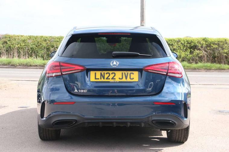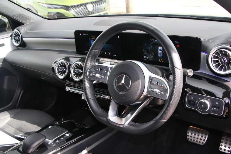 10.25" media display, 180 degree rear view camera with parking guidelines, 7" colour screen in instrument panel, Active parking assist with visual and audible warning of detected obstacles, Attention assist, Brake pad wear indicator warning light, Car wash mode, Cruise control + speed limiter, Direct steering, Dual bluetooth interfaces, DYNAMIC SELECT with a choice of driving modes (ECO, Comfort, Sport and Individual), ECO start/stop function, Fluid level warning indicator for fuel, oil, coolant and washer fluid, Hard-disk navigation, Hey Mercedes Voice activation, Lamp failure indicator, Lane keeping system, Mercedes me connect including emergency call system, accident recovery, breakdown management and maintenance, Mercedes me remote services, Outside temperature gauge, Owners manual in English, Pre-installation for car sharing, Preinstallation for Mercedes Benz link, Service indicator (ASSYST), Smartphone integration with Apple CarPlay and Android auto, Speed sensitive power steering, Trip computer, Ultrasonic sensors positioned in the front and rear bumpers, Lowered comfort suspension, Rear axle torsion beam, 2 USB ports (type C) in rear stowage compartment and one in front of center console, 6 speakers, DAB Digital radio, MBUX multimedia system with DAB digital radio and touchpad including satellite navigation, Mercedes-Benz sound system - 100W, 4 Electric Front and Rear windows, Adaptive brake lights, AMG bodystyling - Front apron with splitter in chrome, rear apron with chrome trim and chrome visible trim elements in tailpipe, Automatic headlights, Black weather strip, Body colour bumpers, Body colour door handles, Body colour side skirt, Body coloured door mirrors, Electric adjustable and heated door mirrors with integrated LED side indicators, Exclusive diamond radiator grille, Exhaust system - Twin visible tailpipes in polished stainless steel, Headlamp assist automatic headlamp activation, Heated glass rear windscreen + timer control, High gloss black beltline, LED High level third brake light, LED high performance headlamps with integrated LED daytime running lights, LED tail lamp, Privacy glass, Radio aerial, Rain sensing windscreen wipers with two sensitivity settings, Rear fog lights, Rear side wing doors, Rear wiper, Window line trim strip in high gloss black, 3 seat bench in 2nd row, 3 Spoke flat bottom leather multi function steering wheel with perforated leather in grip area, 40:20:40 split folding rear seats, Artico man-made leather/Microfibre Dinamica upholstery with contrast stitching in light grey, Auto Mercedes-Benz child seat recognition sensor, Black air vents with surround in silver chrome, Black roof lining, Brushed stainless steel sports pedals with rubber studs, Controller on centre console with chrome surround, Floor mats with black top stitching and embroidered edition logo and piping in light grey, Front centre armrest with storage compartment, Front door sills with Mercedes Benz lettering, Front seat backs luggage nets, Front seat cushion length adjustment, Galvanished gear shift paddles on steering wheel, Heated front seats, Height/reach adjustable steering column, Interior lighting - 64 colour Ambient lighting, Interior mirror with reading lamps in black and frameless, ISOFIX and top tether child seat fixing points in two outer rear seats, Manual height adjustable front seats, Rear head restraints, Seat occupancy sensor for front passenger seat, Single front passenger seat, Sports seats with integrated headrests, Stowage compartment in centre console with retractable cover, Sunvisors with illuminated vanity mirrors, Touchpad on center console, Twin front cupholders, Two zone thermotronic luxury automatic climate control, Light and sight pack - A Class, Mirror package - A Class, Night pack - A Class Saloon/Hatchback, Seat comfort pack - A Class, 3 rear 3 point seatbelts, ABS with Brake Assist, Active bonnet, Active brake assist includes forward collision warning system with autonomous braking, Adaptive brake assist with hold function and hill start assist, Black seatbelts, Childproof locks manually operated for rear doors and electrically operated for rear power windows, Crash responsive emergency lighting, Driver and passenger head and side airbags, Drivers knee airbag, Dual stage driver/passenger airbags, Electronic parking brake, ESP curve dynamic assist, ESP with ASR, Front and rear seatbelt reminder, Front brake callipers with Mercedes Benz lettering, Tyre pressure monitoring system, Warning triangle and first aid kit, Window airbags, Alarm system/interior protection/immobiliser, Keyless Go, Remote central locking and crash sensor with emergency opening function, Urban guard vehicle protection system with immobiliser and interior protection, Matrix look light longitudinal grain aluminium trim element, 18" AMG 5 twin spoke light alloy wheels aerodynamically optimised painted in black with highsheen finish, Summer tyres, Tirefit sealant kit,