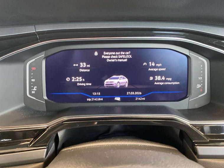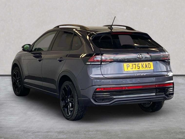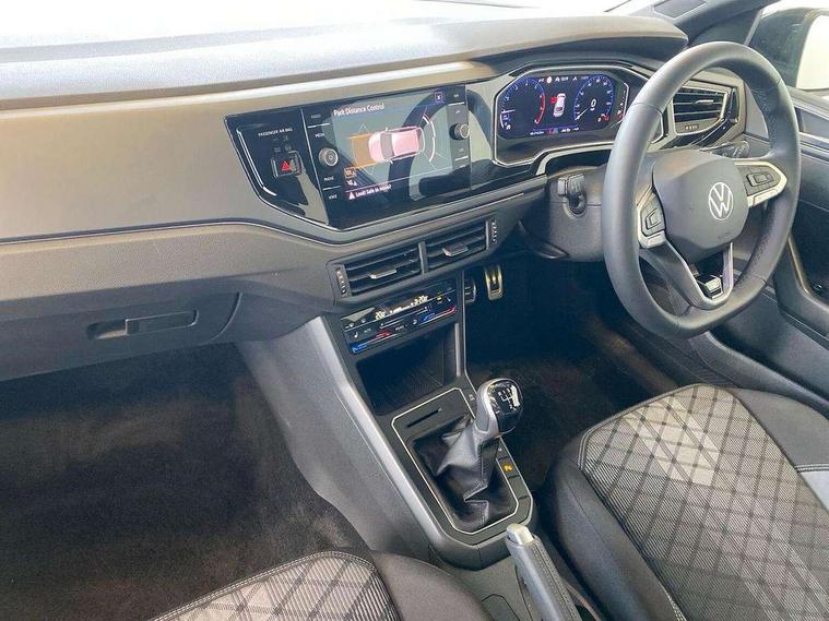 Advanced driver attention and drowsiness monitor, Digital cockpit pro - 10.25" high resolution TFT dash display screen with customizable menus and information, Driving profile selection, e-Call (emergency call), Power Steering, Predictive adaptive cruise control, Travel assist including emergency assist, Washer fluid level indicator, Wireless Charging including Bluetooth, Start-stop system with battery regeneration (recuperation - energy recovery during braking), XDS electronic differential lock for improved traction and handling, Digital radio reception (DAB+), WeConnect plus, Ambient lighting with logo projection, Aspherical driver's exterior mirror, Auto headlights, Body coloured bumpers, Body coloured door handles, Cornering headlights, Electric windows, External USB type C socket and charging sockets, LED rear combination lamp, LED third brake light, Left convex exterior mirror, Power folding adjustable/heated exterior mirrors and front passenger exterior mirror lowering function, Rear fog light on one side, reversing light on both sides, Rear side wing doors, Rear wash/wipe with intermittent wipe setting, 12V socket in centre console, 2 front reading lights, 3 rear head restraints, 3 seat bench in 2nd row, Air care climatronic air conditoning system with active combination filter and 2-zone temperature control, Black carpets, Black roof lining, Child seat anchor for child seat system i-Size, 2x top tether and child seat anchor in front on front passenger side, Chrome bezel for instrument cluster, vents, door handles + gear shift, Driver and front passenger seat height adjustment, Front + rear carpet mats, Front centre armrest, Front footwell illumination, Front sports comfort seats, Heated front seats, Height and reach adjustable steering wheel, Interior ambient lighting and surround lighting, Karoso artvelours cloth upholstery, Leather trimmed gear knob, Leather wrapped multifunction steering wheel, Luggage compartment floor, Luggage compartment light, Lumbar support for driver's and front passengers seat, Seat covers in grey + titanium black, Single front passenger seat, Split folding backrest with centre armrest and unsplit rear seat bench, Stainless steel pedals, Storage compartment under front seats, Sun visors with illuminated vanity mirrors, Black design pack - Taigo Black Edition, Black roof pack with mirror housing - Taigo, IQ.LIGHT - LED matrix headlights pack - Taigo, Light and Sight pack including High beam assist - Taigo, 2 x 3-point seatbelts/outer rear seats with ECE label, 3-point seat belts in front with pretensioner and height adjustment, 3-point seatbelt for centre rear seat, Adaptive driver and front passenger airbags with passenger airbag deactivation function, Driver and front passenger safety-optimised head restraints, Electronic stability control, Extended and predictive pedestrian/ cyclist protection, Front and rear disc brakes, Front curtain and side airbags with center airbag, Hill start assist, Manual rear child locks, Single tone horn, Tyre pressure loss indicator, Anti-theft alarm system with interior monitoring, backup horn, and towing protection, Grey anodised matte decorative inserts in dash and front door panels, 18" Misano black alloy wheels with diamond-turned surface, Breakdown kit, Low rolling resistance tyres,