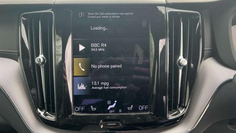 Metal mesh inlays, Tailored instrument panel with contrast stitching, Anti-theft alarm including immobiliser/volume sensor + level sensor, Care key with user defined top speed, Key integrated remote control central locking + fuel flap with deadlocking system and auto open/close power windows, Keyless Drive (includes Keyless Entry and Keyless Start) with Handsfree Tailgate Opening/Closing, Locking wheel nuts, Private locking for tailgate, DAB Digital radio, 5 three point seatbelts, City safety with steering support with Pedestrian + cyclist + large animal detection + front collision warning with full auto brake, Drivers knee airbag, Dual stage driver/passenger airbags, Electronic parking brake with auto hold, First aid kit, Hill descent control, Hill start assist, IC (Inflatable Curtains) - Full Length, Passenger airbag cut-off device, Road sign information display, Run off Road Mitigation, Run off Road Protection, Seatbelt reminder and pretensioners, SIPS (Side Impact Protection System), SIPS airbags, Slippery road and hazard light alert, Stability and Traction Control with Spin control, Engine Drag Control and Corner Traction Control, Tyre pressure monitoring system, Vehicle deceleration control with Anti-lock Brake System, Electronic Brake Distribution and Emergency Brake Assist, Warning triangle, WHIPS whiplash protection system - front, Active bending headlights with adaptive shadow technology, Adaptive brake lights with high level LED brake lights, Auto dimming interior + exterior mirrors, Automatic headlight levelling system, Body colour bumpers, Colour coordinated auto folding and heated power door mirrors, Dark tinted windows for rear side windows and cargo area, Dual integrated exhaust pipes with high gloss black surround, Electric front+rear windows, Front aluminium tread plates, Headlamp cleaning system, Heated aqua blades, High gloss black door mirrors, High gloss black mesh front grille with high gloss black surround, High gloss black window frame surround, Home safe and approach lighting, Illuminated side steps, Integrated roof rails in high gloss black, LED front fog lights with static cornering light function, LED Headlights + Active high beam incorporating daytime running lights, Rain sensor with automatic windscreen wiper activation, Rear wiper, Roof antenna, Roof spoiler, Tinted windscreen, Visible VIN plate, 12V socket in front tunnel console and cargo compartment, 3 spoke sport leather steering wheel, B Pillar ventilation, Black headlining, Bright metal luggage threshold, Centre armrest storage illumination, Centre console cupholders and storage, Contour sports seats with nappa leather/textile upholstery, Extended front seat cushions, Floor mats, Front and rear door pocket and front cupholder illumination, Front footwell illumination, Front reading lights, Head restraints for all seats, Heated front seats, Heated steering wheel, Height/reach adjustable steering column, High gloss black steering wheel remote infotainment controls, Illuminated glovebox, Illuminated luggage compartment, Illuminated vanity mirrors + ticket holder, Load cover, Load protection net, Multicolour theatre lights, Rear armrest / integral cup holders / storage tray, Rear footwell illumination, Rear seat concealed storage, Sport leather gear knob, Sport pedals, Tailgate illumination and ambient door lighting, Underfloor stowage compartment, Versatile split folding rear seat - 60/40, 12.3" Active TFT crystal driver's instrument display, 9" Touch screen, Adjustable steering wheel force, Bluetooth handsfree system, Drive mode selector, Driver alert control with lane keeping aid, Oncoming Lane Mitigation, Sensus navigation with European mapping and traffic information, Service interval indicator, Speed limiter, Speed sensitive steering, Trip computer, Voice control system, Volvo on call, 8 speed automatic transmission with start/stop + manual change functions, Active four-C chassis + four corner adaptive damper with electronic rear air suspension,