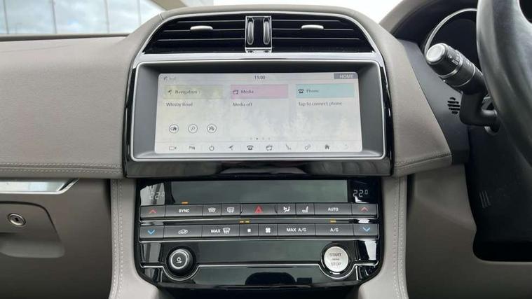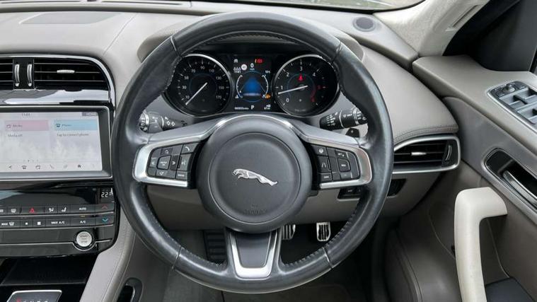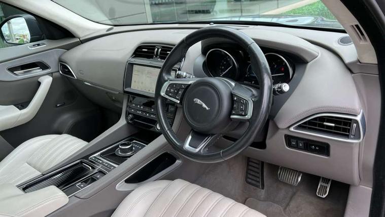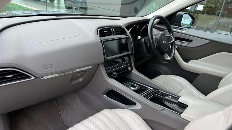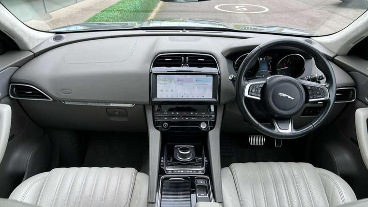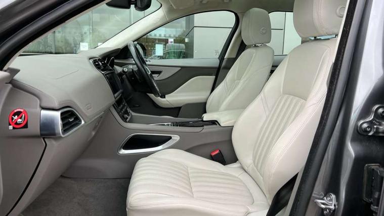 Analogue dials with 7" central TFT display, Auto speed limiter, Driver condition monitor, Eco driving style assistant, Front parking aid, Lane departure warning system, Lane keep assist with driver alert control, Outside temperature gauge, Pro services and wifi hotspot, Push button starter, Rear parking aid, Satin chrome surround on touch screen, Service interval indicator, Servotronic speed sensitive power steering, Start up sequence with movement in dials and lighting, Traffic sign recognition, Trip computer, Voice control system, All terrain progress control, AM/FM radio, Bluetooth connectivity including audio streaming, DAB Digital radio, Dynamic volume control, InControl protect, USB/iPod connection, 3 flash lane change indicators, Approach Illumination, Auto dimming rear view mirror, Automatic headlights, Black rear bumper valance, Body colour bumpers, Body colour door mirrors, Dual tailpipe, Electric front/rear windows with one touch/auto up/down, F-Pace badge, Front fog lights, Grained black door claddings, Green tinted heat insulating glass, Headlight washers, Heated rear window with timer, Heated washer jets, Illuminated metal tread plates with Jaguar script, LED tail lights, Rain sensor windscreen wipers, Rear fog lights, Rear metal tread plates, Rear wiper, Trailer stability assist, Variable front intermittent wipers, 12V power point front, 12V power point in luggage area, 2nd row air vents, 3 rear headrests, 40:20:40 split folding rear bench seat, Bright metal foot pedals, Centre armrest console, Door sill tread plates, Fold flat front seats, Front centre armrest with storage compartment, Illuminated glovebox, Illuminated luggage compartment, Interior front door handles with separate locking switches, ISOFIX on outer rear seats, Jaguar sense, JaguarDrive selector, Luxury seats, Multifunction steering wheel, Overhead lighting console, Perforated Windsor leather upholstery, Premium carpet mats, Rear armrest with 2 cupholders, Reversible boot floor, Shopping hook in boot, Sport leather steering wheel, Steering wheel gearshift paddles, Sunvisors with illuminated vanity mirrors, Tie down hooks in luggage area, Twin front covered cupholders, Connect pro pack - F-Pace, 350mm front brakes, 3x3 point rear seatbelts, ABS, Anti-whiplash front headrests, Autonomous emergency braking (AEB) with forward facing camera, Brake pad warning light, Driver/Front Passenger airbags, DSC - Dynamic Stability Control, Electronic parking brake, Front and rear curtain airbags, Front and rear seatbelt reminder, Front passenger seat occupancy sensor, Front side airbags, Grey brake calipers, Hill start assist, Power child locks, Torque vectoring brake, Traction control, Tyre pressure monitoring system, Immobiliser, Keyless start, Perimeter alarm, Remote central locking, Valet mode, Luxtec door trim, Luxtec wrapped instrument panel, Satin chrome centre console surround,