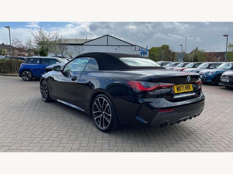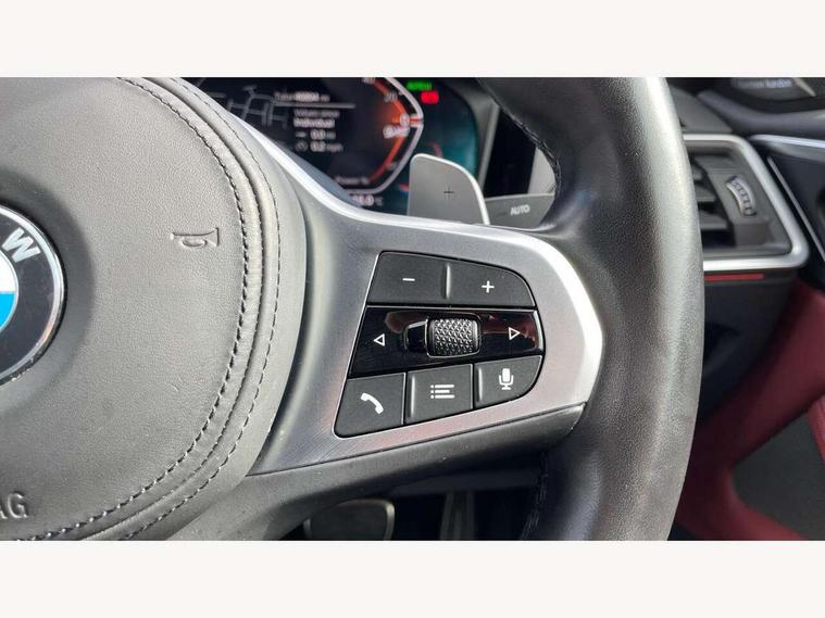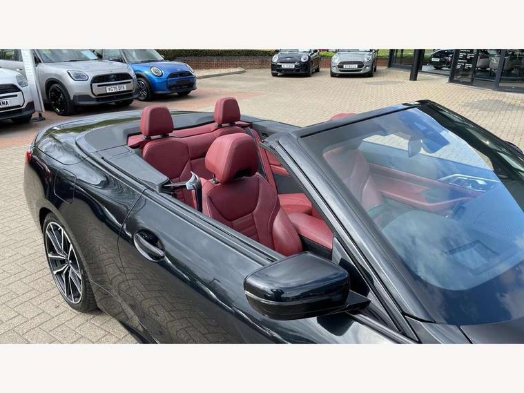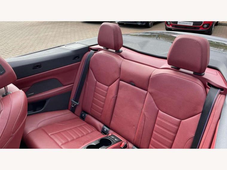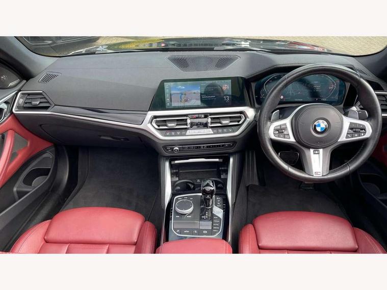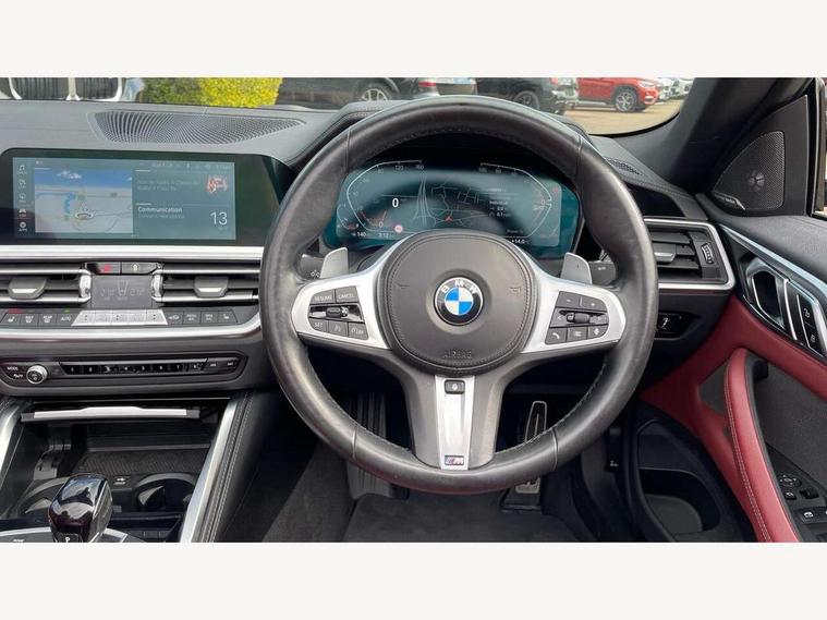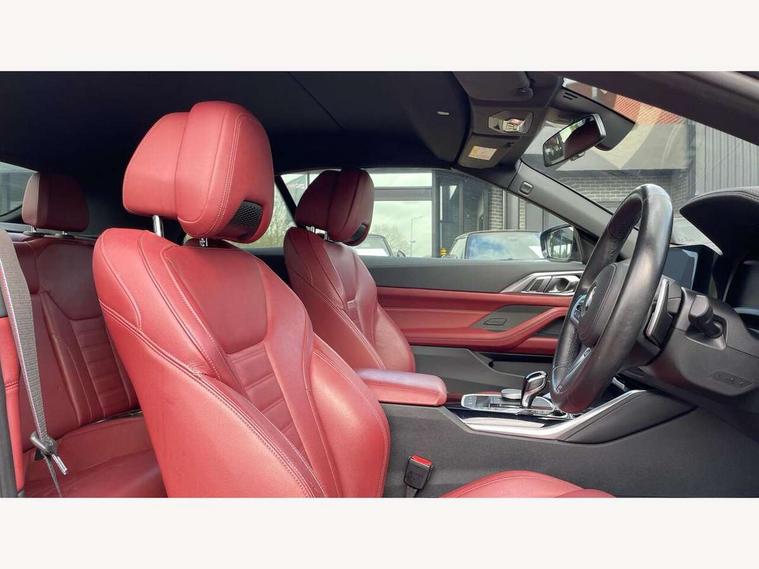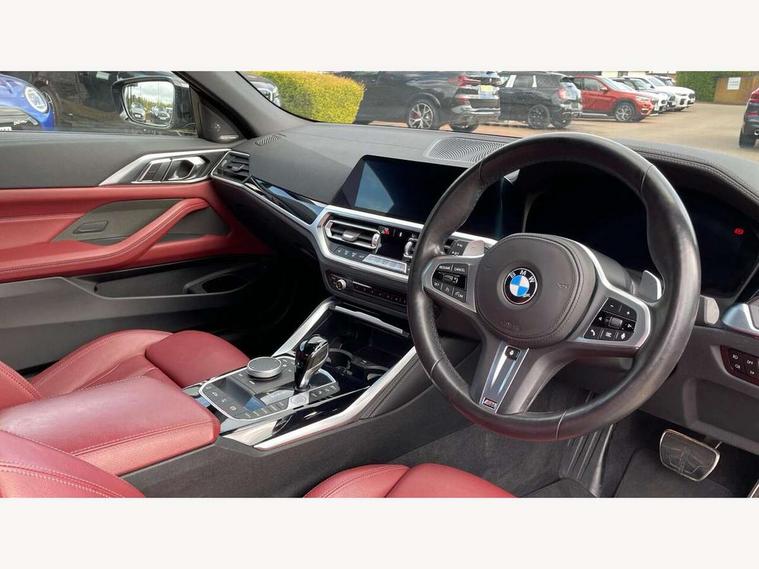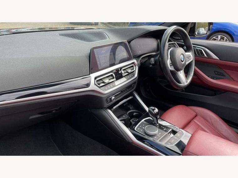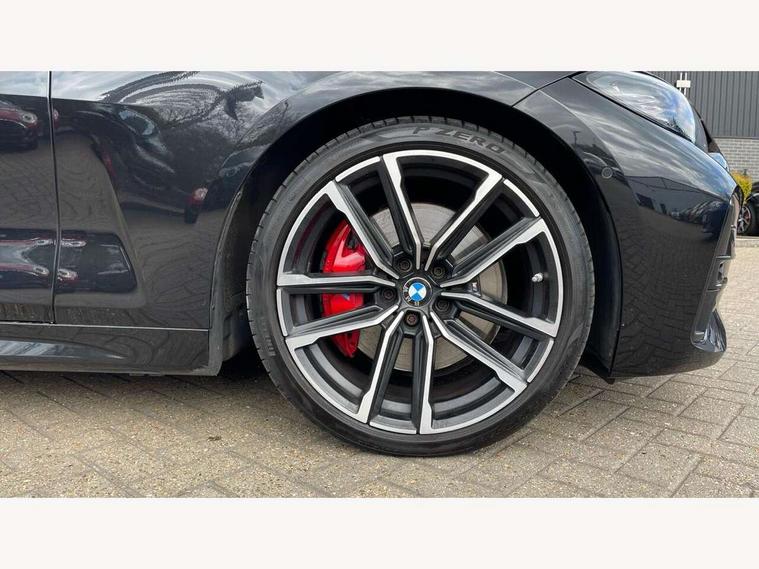 Active guard plus, Attentiveness assist, Auto start-stop, Bluetooth hands free facility with USB audio interface with audio streaming, BMW ConnectedDrive online services, BMW iDrive controller on centre console, BMW Live Cockpit Professional Nav with 12.3" instrument display + 10.25" display, Intelligent Voice Assist, BMW OS 7, HDD, 2USB, 4G LTE connect, BMW service history, BMW Teleservices, Brake pad wear indicator in front and rear, Check Control warning system for monitoring of lights and door/luggage compartment open warning, Condition based service, Cruise control with brake assist, Electric power steering, Electric power steering with Servotronic steering optimised at all speed ranges, Gearshift time display in manual mode, Instrument cluster with speedometer with mph readout, tachometer, fuel gauge and oil temperature gauge, Integrated owners handbook, Oil sensor for level and grade, warning by check control system, On board computer - average speed, fuel consumption, outside temp display with acoustic warning, clock/date, service interval, odometer/trip meter, Optimum shift indicator, Variable sport steering, 8 speed automatic steptronic transmission with gearshift paddles, Balanced 50/50 weight distribution, Double VANOS, Driving experience modes - Comfort, ECO PRO, Sport and Sport+ mode, Electronic differential lock control (EDLC), High precision injection, Low centre of gravity, M sport suspension, Petrol Particulate Filter, Stroke dependent dampers, VALVETRONIC engine management, DAB tuner, Electronic service booklet, Acoustic glazing, Adaptive LED Headlights, Automatic headlight beam throw control with load dependent regulating reaction, dynamic compensation of braking dive and acceleration squat, Automatically dimming electrochromatic rear view mirror, BMW emblem on engine compartment lid and tailgate, BMW kidney grille with mesh grille front side of the nuggets in matt aluminium and frame in chrome high gloss, Body colour fuel filler flap, Body colour roof fin, Brushed aluminium inserts in the front door sill finishers with BMW designation, Dynamic brake lights, Electric windows - front and rear, with open/close fingertip control, anti trap facility and comfort closing function all round, Exhaust tailpipe - split left and right, Exterior mirrors - electrically folding with anti-dazzle, Fading support, Front and rear bumper system, Front apron plastic in body colour, Green tinted heat protection glazing, High gloss shadow line exterior trim, Illuminated bow type door handles in body colour drivers side with door lock, Interior rear view electrochromatic mirror with automatic anti dazzle function, LED front fog lights, Licence plate panel integrated into front bumper and tailgate, Lightweight engineering, M designation on front side panels, left and right, Model designation on right side of tailgate, One piece front bumper cover including towing eye cover in body colour, Preparation for high beam assistant, Rain sensor, Side frame decorative moulding black matt, Two part LED tailights in L-shape with components in smoked glass, brake light, LED turn indicator and rear fog light, Visible VIN plate, Welcome lights in interior and door handle area, Widened track and increased camber values for max transverse dynamics, agility and steering precision, Window recess cover black high gloss, Windscreen wipers with integrated washing jets, 12V power socket in front centre console, 2 front cupholder in centre console with clamping elements and matt black inlay, 2 Rear seat headrests, 3 spoke M sport leather multifunction steering wheel, 3 zone automatic air conditioning, 4 pieces lashing eyelets in luggage compartment, 40:20:40 split folding rear seat and rear centre armrest with two cupholders, Ambient lighting with welcome carpet light, Armrest integrated in front and rear door trim + front centre console armrest, Electric seat adjustment with memory, Four grab handles integrated in roof lining, Front and rear door exit lighting (left / right), Front and rear door pockets, Front and rear footwell lights, Front and rear reading lights, Front headrests, Front seat backrest width adjustment, Front sport seats, Heated driver and front passenger seats, Height adjustable mechanically and infinitely variable steering column, Illuminated armrest storage compartment, Illuminated glove compartment with separate small compartment, Luggage compartment light, Make-up mirror lights, Storage compartment in rear centre console, Sunvisors with vanity mirrors and ticket pocket, Toolkit located in luggage compartment, Velour front floor mats, Vernasca leather upholstery, Connected professional package - 4 Series, M sport exterior styling pack - 4 Series, Park assist pack - 4 Series, 2 x 3-point rear seatbelts, Battery safety cut-off, BMW emergency call, Brake energy regeneration, Braking pre-tensioning, Child proof locking system in rear door, Child seat ISOFIX attachment for the two outer rear seats, Coasting in idle in ECO PRO mode, Cornering brake control (CBC), Crash sensor activating of airbags, Unlocking doors, hazard warning lights, interior light, safety battery terminal, Driver and front passenger side airbags, integrated in the door side seat backrest bolsters for all seat variants, Driver/Front Passenger airbags, Dry braking, Dynamic brake control, Dynamic stability control + (DSC+) - Anti-lock Braking System (ABS) with brake assist and cornering brake control + Automatic Stability Control (ASC), Dynamic Traction Control - DTC, Electric parking brake including automatic hold function and automatic release of the parking brake when driving off, Front and rear ventilated brake disc, Front passenger manual airbag deactivation, Head airbags for all 4 outer seats, Hill start assistant, Seat belt security check for driver and front passenger, Seat belt with belt stopper, pyrotechnic belt tensioners and belt force limiters, Side impact protection, Tyre pressure monitoring with three level warning