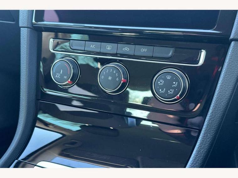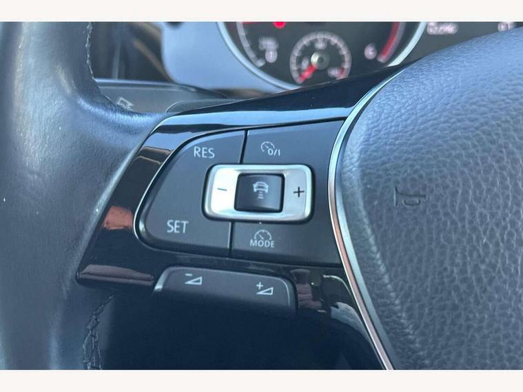 'Lights On' Reminder warning buzzer, 8" touch screen, Adaptive Cruise Control with pedestrian detection and speed limiter, App-Connect, Bluetooth hands free telephone connection, Brake pad wear indicator warning light, Driver alert system, Driver profile selection, Exterior temperature gauge, Front assistant collision mitigation, Instrument cluster in white, Multifunction computer, PAS - speed related, Rev counter, Trip and service interval display, Ultrasonic front and rear optical and audible parking sensors, Warning buzzer and light for front seatbelts unfastened, Diesel particulate filter, Lowered sports suspension, XDS electronic differential lock, CD/MP3/WMA, USB and SD card reader, aux-in, Composition media system, DAB Digital radio, Auto dimming rear view mirror, Automatic coming/leaving home lighting function, Automatic headlights, Black front air intake and radiator grille with chrome insert, Black rear diffuser, Body colour bumpers, Body colour door handles, Body colour door mirrors, Chrome grille surround, Electric front windows, Electric rear windows, Electrically adjustable and heated door mirrors, Heat insulated tinted glass 65% light absorbing from B pillar back, Heated rear windscreen, LED daytime running lights, LED front fog lights with static cornering light function, LED rear lights, Rain sensor, Rear roof spoiler, Rear windscreen washer and wiper with interval delay, 12V socket in luggage compartment, 3 rear headrests, 3 spoke steering wheel, 60/40 split folding rear seat, Bag hook in luggage compartment, Boot lashing points, Cooled glovebox, Courtesy light delay, Cover for storage compartment in centre, Dust/pollen filter, Front + rear carpet mats, Front centre armrest with storage box and rear air vents, Front passenger seat height adjust, Front seat back storage pockets, Gearshift paddles, Grab handles, Height adjustable driver's seat, Height/reach adjust steering wheel, Illuminated vanity mirrors, Isofix preparation for 2 rear child seats, Load through provision with rear centre armrest and cupholders x2, Luggage compartment cover, Luggage compartment lighting, Multifunction leather steering wheel with leather gear knob/handbrake grip, Overhead storage box, Pearl grey headlining, Storage box in luggage compartment, Storage compartments in doors, Sun visors, Variable boot floor, height adjustable and removable, Ambient lighting pack - Golf, Mirror pack - Golf, 3 point height adj front seatbelts + pretensioners, 3 rear 3 point seatbelts, ABS, Automatic post collision braking, Child locks on rear doors, Driver/Front Passenger airbags, Driver/Passenger whiplash optimised head restraints, Drivers knee airbag, Electronic parking brake with auto hold, ESP with EDL + ASR, Front and rear curtain airbags, Front passenger airbag deactivation, Front side airbags, Pre crash system, Tyre pressure monitor, Alarm with interior protection, Electronic engine immobiliser, Remote central locking with 2 remote folding keys, Chrome-plated light switch surround, Piano black centre console, Tumbler decorative inserts, Steel space saver spare wheel,