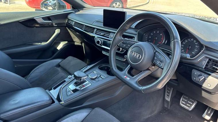 7" Colour driver information system, Audi connect, Audi drive select, Audi parking system plus with front and rear sensors, Audi smartphone interface, Automatic start-stop system with coasting functionality and efficiency programme, Bluetooth interface, Electro-mechanical power steering, MMI Navigation, Power tailgate, Service interval indicator, Voice control system, CD player, DAB Digital radio, Two SDXC card slots, Air inlets in titanium black with matt aluminium inlay, Auto dimming rear view mirror, Body colour bumpers, Chrome plated exhaust pipe, Electric adjustable heated door mirrors, Electric front windows, Front fog lights, High beam assistant, High gloss black door mirrors, Rain and light sensors, Rear diffuser in Twilight grey matt with honeycomb grille, S Line body styling, S line sill plates, S style high gloss black rear spoiler, Side and rear windows privacy glass, Titanium black frame and radiator grille, Titanium black front and rear air intakes, Titanium black window surround, Windscreen with acoustic glazing, 2 x USB charging port with aux input socket, 3 spoke flat bottom high multi-function leather steering wheel, 40/20/40 split folding 3 seater rear bench seat, Adjustable steering column, Black headlining, Black perforated leather gearknob, Centre console with cupholders, Contrast stitching on seats, steering wheel and gear lever gaiter, Deluxe 3 zone electronic climate control, Front centre armrest, Front head restraints, Front/rear floor mats, Gearshift paddles, Illuminated door sills, ISOFIX child seat mounting and top tether, Jack and tool kit, Luggage compartment mat, Rear headrests, S embossed logo on front sport seats, Stainless steel pedals and foot rest, Non Smokers pack, 3x3 point rear seatbelts, 6 airbags - Driver, front passenger, curtain and side airbags, Electromechanical parking brake, Electronic Stabilisation Control (ESC) including ABS, ASR and EDL, Front passenger airbag deactivation, Height adjustable front seatbelts, Hill hold function, Multi-Collision braking, Pop-up bonnet for pedestrian protection, Pre sense city, Seatbelt monitoring, Tyre pressure warning, Variable restraint system, Warning triangle and first aid kit, Anti theft alarm system, Anti theft wheel bolts, Immobiliser, Keyless Go, Remote central locking, Piano black finish inlay, 20" 5 arm rotor alloy design wheels with matt titanium finish, Tyre repair kit,