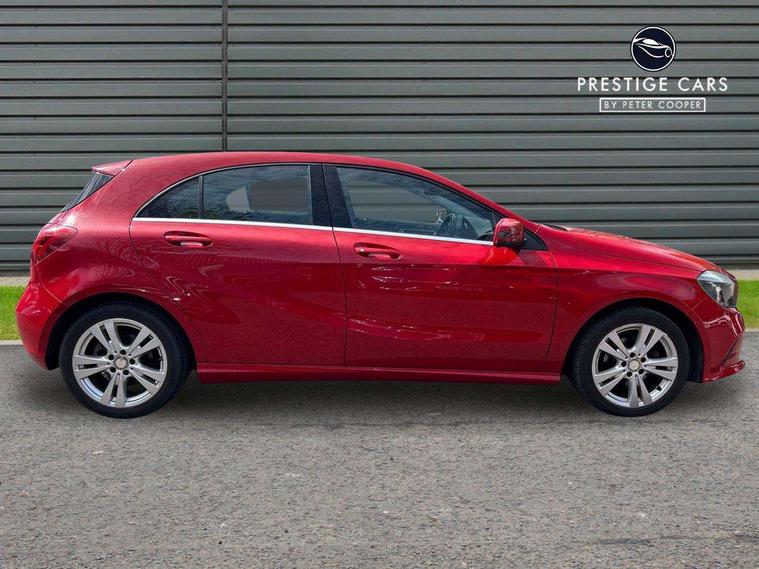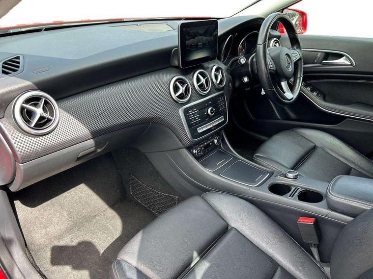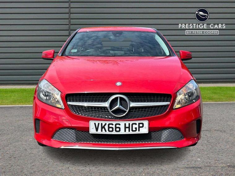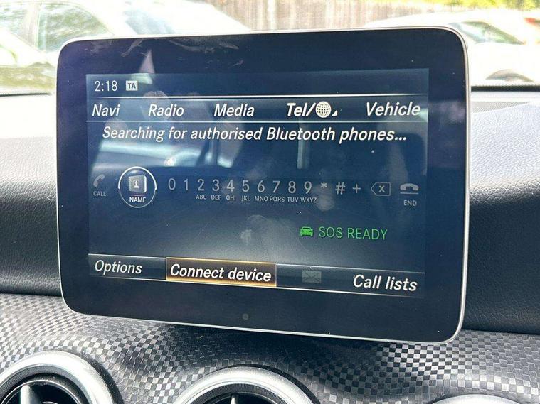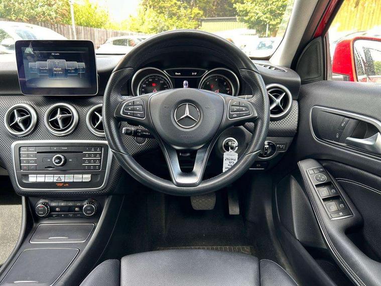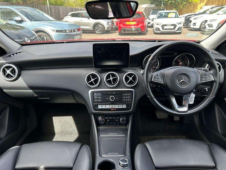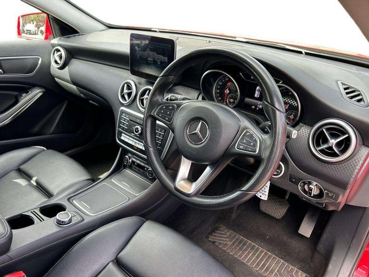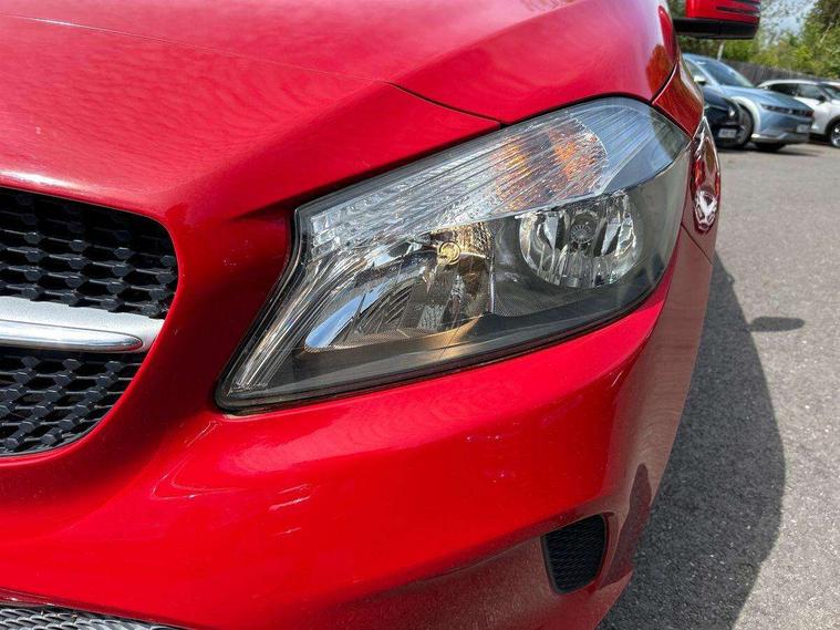 8" colour display screen, Attention assist, Bluetooth interface for hands free telephone, Bulb failure indicator, Collision prevention assist plus, DYNAMIC SELECT with a choice of driving modes (ECO, Comfort, Sport, Sport+ and Individual), External temperature gauge, Low fluid warning light, Reversing camera, Service indicator (ASSYST PLUS), Smartphone integration with Apple CarPlay, Speed sensitive parameter assisted steering, Trip computer, Comfort suspension, 6 speakers, Media interface, Mercedes Audio 20 radio/single CD + telephone keypad, SD card slot, USB port, Adaptive brake lights, Body colour bumpers, Body colour door handles, Body colour side skirt, Body coloured door mirrors, Chrome beltline trim, Daytime running lights, Diamond radiator grille with black pins with one louvre in silver + chrome insert, Electric adjustable heated door mirrors, Electric front windows, Electric rear windows, Headlamp assist, Heated rear window with timer, Rain sensor windscreen wipers, Rear wiper, Twin Trapezoidal tailpipes, 1/3 to 2/3 split folding rear seats, 12V socket, 3 spoke perforated leather multifunction sports steering wheel, Adjustable head restraints, Artico man-made leather upholstery, Auto Mercedes-Benz child seat recognition sensor, Dual zone automatic climate control, Footwell lights, Front and rear reading lights, Front centre armrest with storage compartment, Front head restraints, Gearshift paddles on steering wheel, Height adjustable front seats, Height/reach adjustable steering column, Illuminated door sills, Illuminated glovebox, Illuminated storage compartment, Isofix rear child seat preparation, Load securing rings in luggage compartment, Luggage compartment cover, Luggage net under rear parcel shelf, Parcel net in front passenger footwell, Rear head restraints, Storage compartment under load area floor, Sunvisors with illuminated vanity mirrors, Twin front cupholders, Seat comfort pack - A Class, Stowage Pack - A Class, 3 rear 3 point seatbelts, ABS with Brake Assist, Active bonnet, Adaptive brake system, Child proof door locks, Crash responsive emergency lighting, Drivers knee airbag, Dual stage driver/passenger airbags, Electronic parking brake, ESP with ASR, Front and rear seatbelt reminder, Front head airbags, Front passenger seat occupancy sensor, Front side airbags, Hill start assist, Tyre pressure monitoring system, Warning triangle and first aid kit, Window airbags, Alarm system/interior protection/immobiliser, Keyless ignition, Remote central locking, Checked pattern trim, Chrome air vent surrounds, 17" 5 twin spoke alloy wheels, Tirefit sealant with electric air pump,