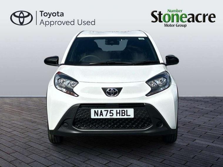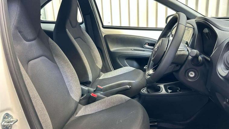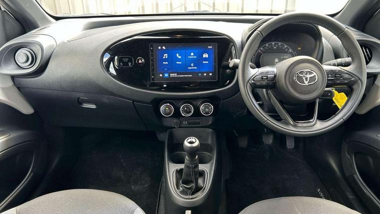 4.2" TFT colour screen, Adjustable speed limiter, Analogue speedometer, Bluetooth connectivity, Digital tachograph, Driver attention alert system, eCall emergency call system, Electric power steering, Intersection turn assist, Key reminder warning, Noise reduction kit, Pre collision system with emergency steering assist, Reversing camera with static guide lines, Smart phone integration with Apple car play/Android Auto, Speed limit display, Start and stop, Vehicle Stability Control (VSC), 4 speakers, 9" HD multimedia display touch screen with Toyota smart connect, DAB digital audio broadcast, USB connector, Auto headlights, Automatic headlights cut-off, Bicycle towing hook, Black lower front grille, Black rear bumper, Black side protection mouldings, Black upper front grille, Black wheel arch mouldings, Body colour door handles, Body coloured front bumper, Boot door scuff plate, Electric heated door mirrors, Follow me home headlights, Front power windows, Gloss black door mirrors, Headlight cut-off reminder, LED daytime running lights, LED front light guide, LED High mounted stop lamp, Manual day/night rear view mirror, Manual headlight levelling, Pagoda roof, Power adjustable door mirrors, Power back door, Projector halogen headlights, Rain sensor, Rear combination lights LED bulb type, Rear side wing doors, Rear windscreen defogger, Rear windscreen wiper, Short antenna, Variable intermittent windscreen wipers, 12v power outlet - front, 2 seat bench in 2nd row, 3 spoke leather steering wheel, 50/50 split folding rear seat, Adhesive roof headlining, Adjustable speed limiter switch on steering wheel, Audio and telephone switches on steering wheel, Black insert on steering wheel, Boot light, Centre room light, Chrome interior door handles, Chrome surround on air conditioning buttons, Clean air filter, Fabric upholstery, Floor mats, Front and rear cup holders, Front head rest deco art, Front head restraints, Height adjustable driver seat, Intelligent adaptive cruise control switch on steering wheel, ISOFIX child restraint system on rear seats, Lane departure alert switch on steering wheel, Leather gearshift knob, Light grey roof lining, Manual air conditioning, Manual tilt steering wheel, Manually reclining and sliding driver seat, Manually reclining and sliding front passenger seat, Multimedia switches on steering wheel, Pollen filter, Rear door pockets, Rear head restraints, Resin console box storage, Satin silver insert on gear shift knob, Silver stitching on gear shift knob, Single compartment glovebox with lights, Single front passenger seat, Soft tonneau cover, Sun visors with mirror on driver and passenger side, Voice recognition switch on steering wheel, Toyota safety sense pack - Aygo X, Anti lock braking system + Electronic brake force distribution, Child safety door lock, Emergency brake light signal (EBS), Hill start assist control (HAC), Passenger airbag on/off switch, Seat belt reminder for front and rear seats, Supplement restraints system (SRS) - 6 airbags, Traction control, Tyre pressure warning system, Immobiliser, Remote power door locks, Black air vent surround, Black wheel centre caps, Tyre repair kit,