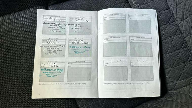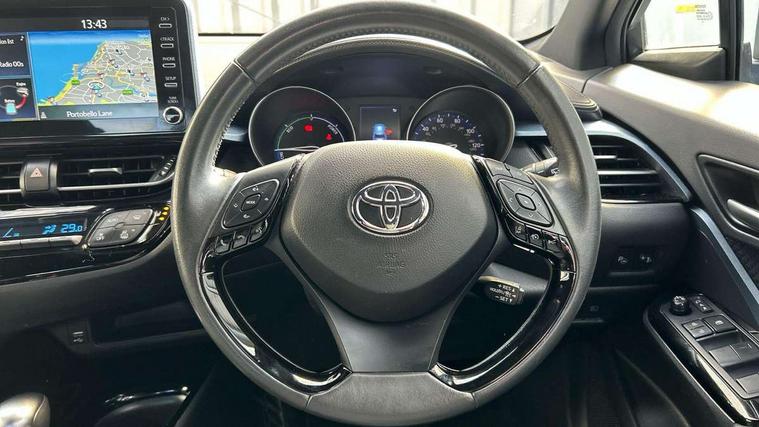 4.2" coloured TFT screen for multi-information display, Adaptive cruise control, Bluetooth connectivity, Electric power steering, Front parking sensors with ICS and auto braking, Hybrid system indicator, Lane departure alert with steering control, Rear parking sensors with ICS, Remote boot door release in cabin, Remote boot door release in key, Reversing camera, Road sign assist - RSA, Simple Intelligent parking assist, Smart entry and push button start, Touch 2 Go navigation system, Trip computer, Voice recognition, Vehicle Stability Control (VSC), 6 speakers, AM/FM radio, DAB Radio (Digital Audio Broadcasting), Toyota touch 2 multimedia system with 8" display, USB connector, Wi-fi connectivity, Anti-jam protection on power windows, Auto dimming rear view mirror, Auto high beam, Auto up and down function on all power windows, Auto wipers, Automatic headlights, Automatic headlights cut-off, Automatically retractable door mirrors, Black and body coloured rear bumper, Black upper front grille, Body colour door handles, Body colour door mirrors, Body colour front spoiler lip, Body coloured front bumper, Boot door release with push button, Electric heated door mirrors, Follow me home headlights, Front and rear power windows, Front fog lights, Honeycomb lower front grille, LED daytime running lights, LED front light guide, LED High mounted stop light, LED rear brake lights, LED rear combination lights, Manual headlight levelling, Noise reduction layer on front windows and windscreen, Power adjustable door mirrors, Privacy glass, Rear spoiler, Rear tailgate, Rear window defogger, Rear window wiper, Reflective LED headlights, Shark fin antenna, UV-filter on driver and passenger windows, UV-filter on rear windows, 12v power outlet - front, 3 rear headrests, 3 spoke leather steering wheel, 60/40 split folding rear seat, Adjustable rear headrests, Adjustable speed limiter switch on steering wheel, Assist grips front and centre pillar, Audio and telephone switches on steering wheel, Black front door assist grips, Blue ambient lighting on front cup holders, Blue ambient lighting on front doors, Boot light, Chrome interior door handles, Cloth upholstery, Driver and front passenger personal light, Driver and front passenger Whiplash Injury Lessening seats, Driver and passenger seatback pockets, Dual zone automatic air conditioning, Front cupholders, Front head restraints, Front sports seats, Glovebox with internal light, Hard tonneau cover, Heated driver and front passenger seats, Hooks for luggage holding net, Humidifying Nanoe air purifier, Illuminated entry system, Isofix attachments on outer rear seats, Leather gearshift, Light on driver sun visor, Light on passenger sun visor, Manual telescopic steering wheel, Manual tilt steering wheel, Manually height adjustable driver seat, Manually height adjustable front passenger seat, Manually reclining driver seat, Manually reclining front passenger seat, Manually sliding driver seat, Manually sliding front passenger seat, Microphone on front personal light, Mirror on driver sun visor, Mirror on passenger sun visor, Multimedia switches on steering wheel, Pollen filter, Power adjustable lumbar support on driver seat, Shopping bag hooks, Slow opening on lower glovebox, Voice recognition switch on steering wheel, 16 Disk front wheel brake, 3x3 point rear seatbelts, ABS+EBD+Brake assist, Electronic parking brake, Front and rear seatbelt reminder, Front passenger airbag on/off switch, Hill start assist control (HAC), Pre collision system with pedestrian detection, Pre-tensioners and force limiters, Rear door child safety locks, SRS Airbags - Driver + Front passenger, front side, front and rear curtain and driver's knee airbags, Toyota safety sense, Tyre pressure monitoring system, Acoustic vehicle alert system (AVAS), Glass-breaking alarm sensors, Immobiliser, Intrusion alarm, Intrusion sensor, Motion sensor alarm, Power door locks, Power passenger window lock, Remote central locking, Black lower dashboard, Black upper dashboard, Piano black console, Satin grey deco line on upper dashboard, Tyre repair kit,