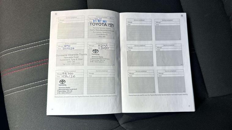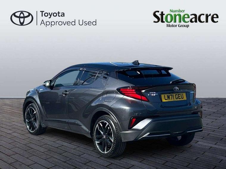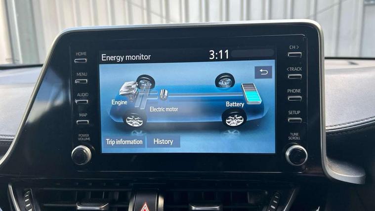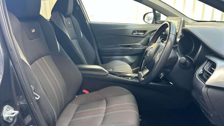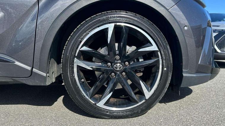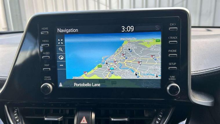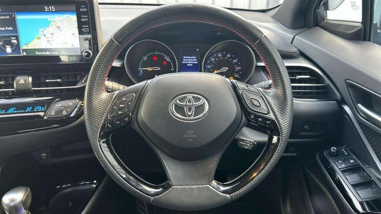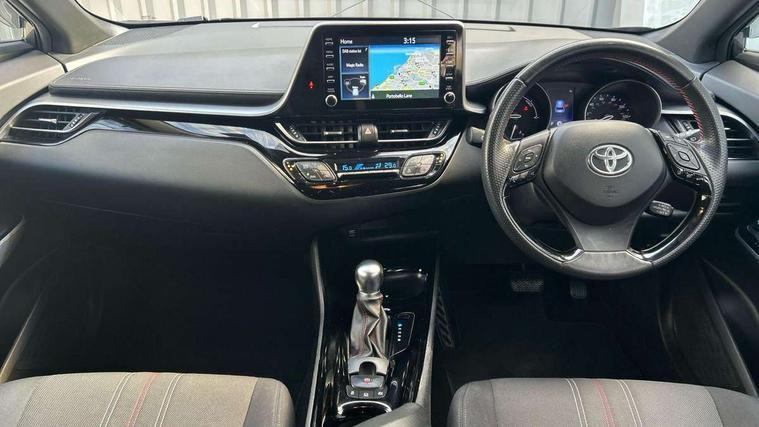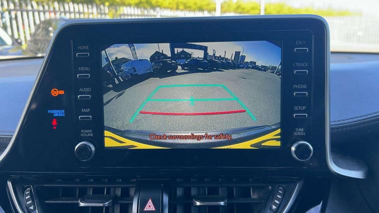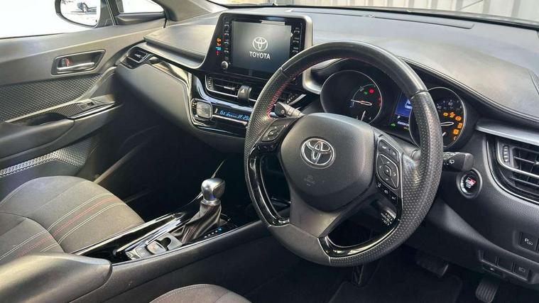 4.2" coloured TFT screen for multi-information display, Adaptive cruise control, Bluetooth connectivity, Electric power steering, Hybrid system indicator, Lane departure alert with steering control, Remote boot door release in cabin, Remote boot door release in key, Reversing camera, Road sign assist - RSA, Simple Intelligent parking assist, Touch 2 Go navigation system, Trip computer, Voice recognition, Vehicle Stability Control (VSC), 6 speakers, AM/FM radio, DAB Radio (Digital Audio Broadcasting), Toyota touch 2 multimedia system with 8" display, USB connector, Wi-fi connectivity, Adaptive front light system, Adaptive LED Headlights, Anti-jam protection on power windows, Auto high beam, Auto up and down function on all power windows, Automatic headlight levelling, Automatic headlights, Automatic headlights cut-off, Black and body coloured rear bumper, Black upper front grille, Body colour door handles, Body colour door mirrors, Body coloured front bumper, Boot door release with push button, Chrome front lower bumper, Electric heated door mirrors, Follow me home headlights, Front and rear power windows, Front spoiler lip in black, Honeycomb lower front grille, LED daytime running lights, LED fog lights, LED front light guide, LED High mounted stop light, LED rear brake lights, LED rear combination lights, Noise reduction layer on front windows and windscreen, Power adjustable door mirrors, Privacy glass, Rear sequential indicators, Rear spoiler, Rear tailgate, Rear window defogger, Rear window wiper, Shark fin antenna, UV-filter on driver and passenger windows, UV-filter on rear windows, 12v power outlet - front, 3 rear headrests, 3 spoke perforated leather steering wheel, 60/40 split folding rear seat, Adjustable rear headrests, Adjustable speed limiter switch on steering wheel, Assist grips front and centre pillar, Audio and telephone switches on steering wheel, Black front door assist grips, Blue ambient lighting on front cup holders, Blue ambient lighting on front doors, Boot light, Chrome interior door handles, Driver and front passenger personal light, Driver and front passenger Whiplash Injury Lessening seats, Driver and passenger seatback pockets, Dual zone automatic air conditioning, Fabric upholstery, Floor mats, Front cupholders, Front head restraints, Front sports seats, Glovebox with internal light, Hard tonneau cover, Heated driver and front passenger seats, Hooks for luggage holding net, Humidifying Nanoe air purifier, Illuminated entry system, Isofix attachments on rear seats, Leather gearshift, Light on driver sun visor, Light on passenger sun visor, Manual telescopic steering wheel, Manual tilt steering wheel, Manually height adjustable driver seat, Manually height adjustable front passenger seat, Manually reclining driver seat, Manually reclining front passenger seat, Manually sliding driver seat, Manually sliding front passenger seat, Microphone on front personal light, Mirror on driver sun visor, Mirror on passenger sun visor, Multimedia switches on steering wheel, Pollen filter, Power adjustable lumbar support on driver seat, Shopping bag hooks, Slow opening on lower glovebox, Voice recognition switch on steering wheel, Tech with parking sensor pack - C-HR, 16 Disk front wheel brake, 3x3 point rear seatbelts, ABS+EBD+Brake assist, Electronic parking brake, Front and rear seatbelt reminder, Front passenger airbag on/off switch, Hill start assist control (HAC), Pre collision system with pedestrian detection, Pre-tensioners and force limiters, Rear door child safety locks, SRS Airbags - Driver + Front passenger, front side, front and rear curtain and driver's knee airbags, Toyota safety sense, Tyre pressure monitoring system, Acoustic vehicle alert system (AVAS), Glass-breaking alarm sensors, Immobiliser, Intrusion alarm, Intrusion sensor, Motion sensor alarm, Power door locks, Power passenger window lock, Remote central locking, Black lower dashboard, Black upper dashboard, Piano black console, Silver deco line on upper dashboard, 19" Black machined alloy wheels, Tyre repair kit,