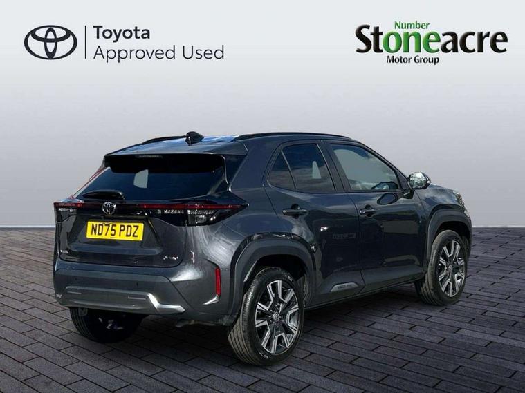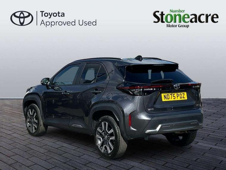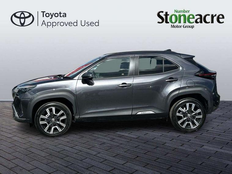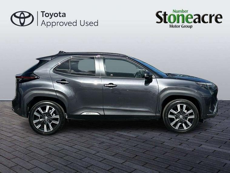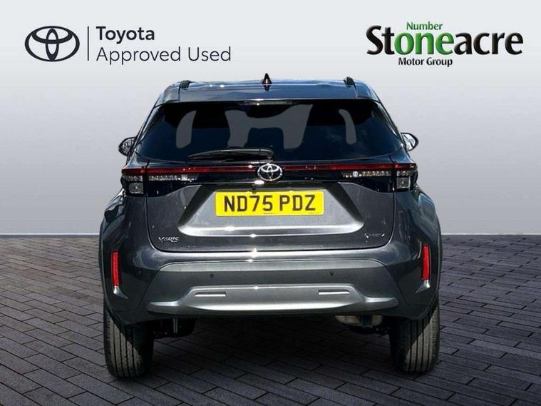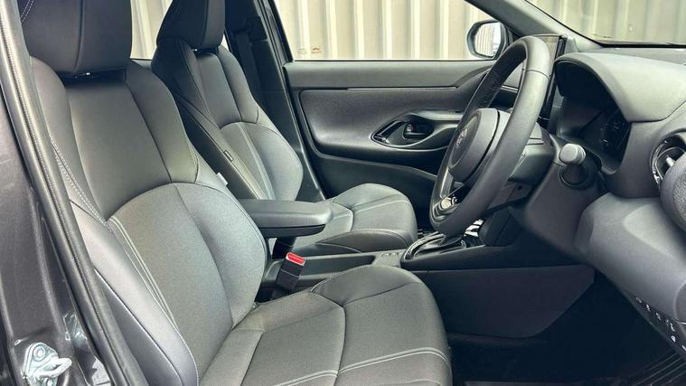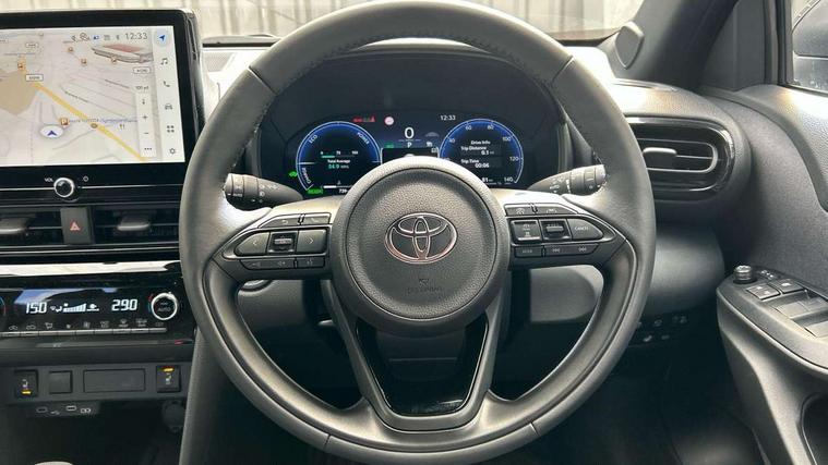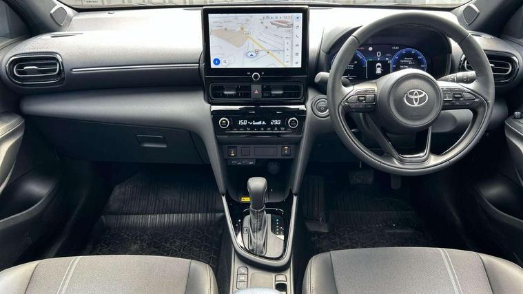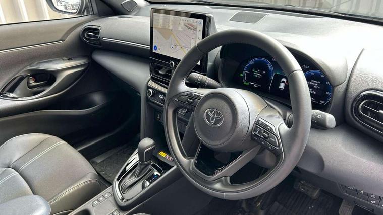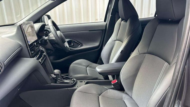 10.5" Multimedia display screen, 10.5" Toyota smart connect+ with navi multimedia system with wireless Smartphone integration incl Apple CarPlay, 360 degree panoramic view monitor, 7" Multi information display screen, Adaptive cruise control, multi info switches on steering wheel, Adjustable speed limiter, Advanced parking assist, Blind spot monitoring, Bluetooth connectivity, Color multi-information display, Digital speedometer, Digital tachometer, Drive mode selector, Driver attention alert system, Dynamic guide lines on reversing camera, eCall emergency system, Electric power steering, Emergency driving stop system, Full range intelligent adaptive cruise control, Hybrid system indicator, Intelligent front and rear parking sensors with clearance sonar and automatic braking, Intersection turn assist, Key reminder warning, Lane change assist, Lane trace assist, My T Connected services, Power tailgate, Pre-collision system enhanced with emergency steering assist, Rear cross traffic alert, Remote boot door release in cabin, Road sign assist - RSA, Safe exit assist, Tailgate, Telephone switch on steering wheel, Wireless Mobile Phone Charger, Steering assisted vehicle stability control, 6 speakers, DAB Digital radio, Front USB Type-C connector, Front USB-C device charger, Acoustic windscreen glass, Anti-jam protection on power windows, Auto dimming rear view mirror, Auto high beam [AHB] with on/off switch, Auto intermittent windscreen wipers, Automatic headlights, Automatic headlights cut-off, Automatically retractable door mirrors, Black door moulding, Black lower front grille, Black protection moulding on side doors, Black roof rails, Black wheel arch mouldings, Body colour door handles, Body colour front bumper, Body colour rear bumper, Electric adjustable heated door mirrors, Follow me home headlights, Front and rear electric windows with auto up/down function, Gloss black upper front grille, Headlight cut off reminder, Indicators integrated on door mirrors, Intermittent rear wiper, Kick activated power back door, LED 3rd brake light, LED daytime running lights guide, LED front fog lights, LED front light guide, LED Indicators, LED projector headlights, LED rear lights with sequential indicators, Manual headlight levelling, Meshed shape upper front grille, Noise reduction layer on windscreen, Pre wiring for towing hook, Privacy glass, Rain sensor, Rear roof spoiler, Rear side wing doors, Rear window defogger, Shark fin antenna, 12v power outlet - front, 12V power point in boot, 2x Rear coat hooks, 3 seat bench in 2nd row, 3 spoke leather steering wheel, 40/60 split deckboard, 40:20:40 split folding rear bench seat, Adjustable rear headrests, Adjustable speed limiter switch on steering wheel, Boot light, Central armrest, Driver and front passenger personal lights, Driver and front passenger Whiplash injury Lesseing seats, Driver and passenger seatback pockets, Dual zone automatic air conditioning, Fabric door trim, Front console box, Front cup holders, Front door pockets, Front head restraints, Front sport seats, Front/rear assist grips, Gear shift indicator, Grey roof lining, Heated driver and passenger seats, Heated steering wheel, Height adjustable driver's seat, Height adjustable front passenger seat, Hooks for luggage holding belts, ISOFIX child restraint system, Lane departure alert switch on steering control, Leather gearshift, LED centre room light, Light on driver and passenger sun visor, Manual telescopic and tilting steering wheel, Mirror on driver and passenger sun visor, Nanoe-X air purifier, Partial synthetic leather upholstery, Pollen air filter, Power adjustable lumbar support on driver seat, Rear cup holders, Rear door pockets, Rear head restraints, Remote air-conditioning system, Single compartment glovebox, Single front passenger seat, Soft tonneau cover, Storage box under boot floor, Voice recognition switch on steering wheel, White ambient lighting in centre console, White ambient lighting in footwell, White ambient lighting on front doors, Yaris cross floor mats, 3x3 point rear seat belts, ABS+EBD+Brake assist, Downhill Assist Control (DAC), Driver and passenger central airbags, Driver and passenger front airbags, Driver and passenger side airbags, Electronic parking brake, Emergency brake light system (EBS), Front seat belt reminder, Hill start assist control (HAC), Passenger airbag on/off switch, Pre-collision system with pedestrian and cyclist detection, Rear door child safety locks, Rear passenger side airbags, Rear seat belt reminder, Traction control, Tyre pressure warning system, Immobiliser, Intrusion alarm, Keyless smart entry with push button start, Power door locks, Power passenger window lock, Remote door lock, Gloss black side air vent surrounds, Tyre repair kit,