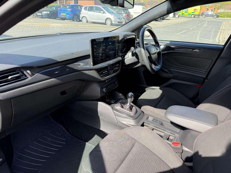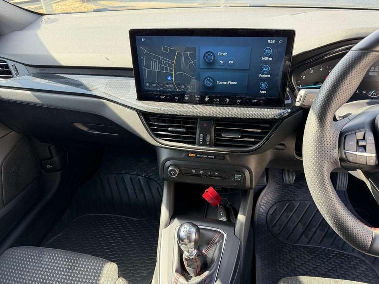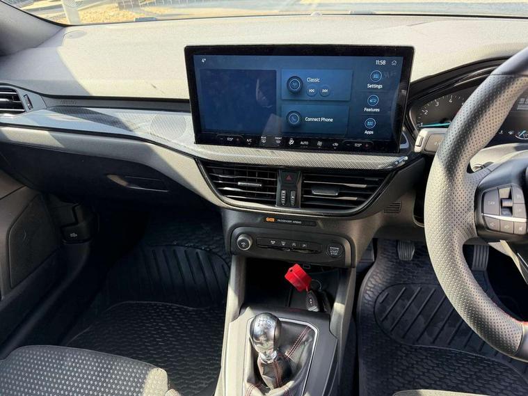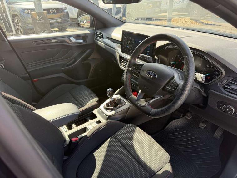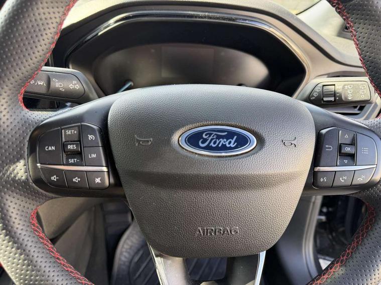 4.2" Colour TFT Ice blue illumination analogue cluster with trip computer, Bluetooth system, Digital clock, Easy fuel capless refuelling system, Eco mode, Ford SYNC 4 Navigation with 13.2'' touchscreen, DAB radio, Emergency Assistance, Apple Carplay & Android Auto, 6 speakers & FordPass Connect, Lane keeping system - lane keeping alert and lane keeping aid, PAS, Rev counter, Selectable drive mode, Service interval indicator, Sports tuned suspension, 2 USB ports, Auto headlamps (on/off), Body coloured door handles, Electrically operated front and rear windows with one touch opening and closing, Electrically operated heated power fold door mirrors with puddle lamp with side indicators, Front variable intermittent wipers with electric wash, Full fixed LED headlamps, Heated rear window, LED daytime running lamp, LED rear lamps, LED third brake light, Polished twin tailpipe, Privacy glass, Quickclear heated windscreen, Rain sensor, Rear side wing doors, Tailgate wash/wipe, Unique ST-Line grille, full bodystyling kit, and large body coloured rear spoiler, 3 rear headrests, 3 seat bench in 2nd row, Cloth upholstery, Dual zone electronic air temperature control, Height adjustable front headrests, Isofix child seat preparation, Reach + rake adjustable steering column, Single front passenger seat, 3x3 point rear seatbelts, ABS+Electronic Brake force Distribution, Auto hold function, Driver airbag, EDL traction control, Electronic parking brake, Electronic stability control, Front and rear seatbelt reminder, Front inertia reel height adjustable seatbelts with pre-tensioners, Front passenger airbag, Front side airbags, Passenger airbag deactivate switch, Post collision braking, Pre collision assist with autonomous emergency braking and pedestrian/cyclist detection, Remote/power child rear door locks, Side curtain airbags, Three rear inertia reel lap/diagonal seatbelts, Tyre pressure monitoring system, Keyless entry and keyless start, MyKey system, Remote central locking & engine immobiliser, Thatcham alarm with power door dead locks, 17" 5 spoke Rock mettalic finish alloy wheels with mini spare wheel,