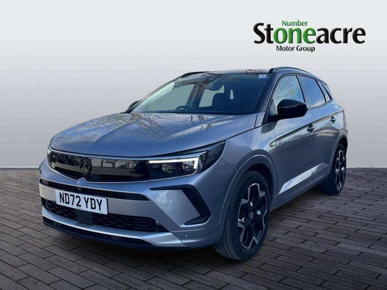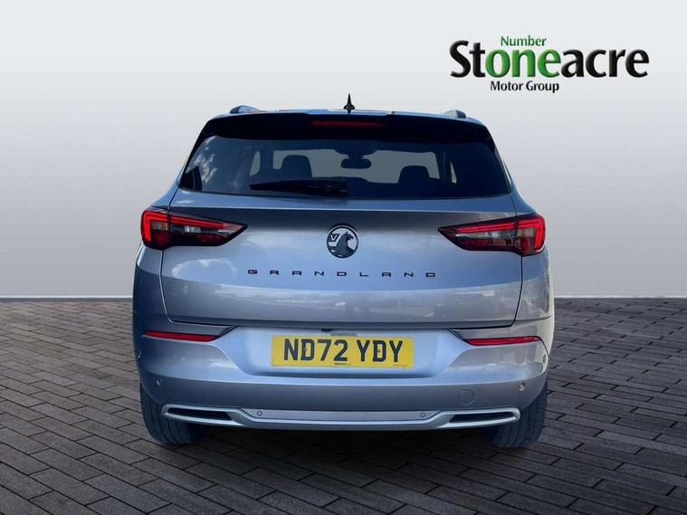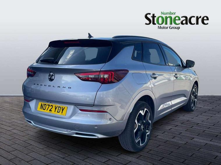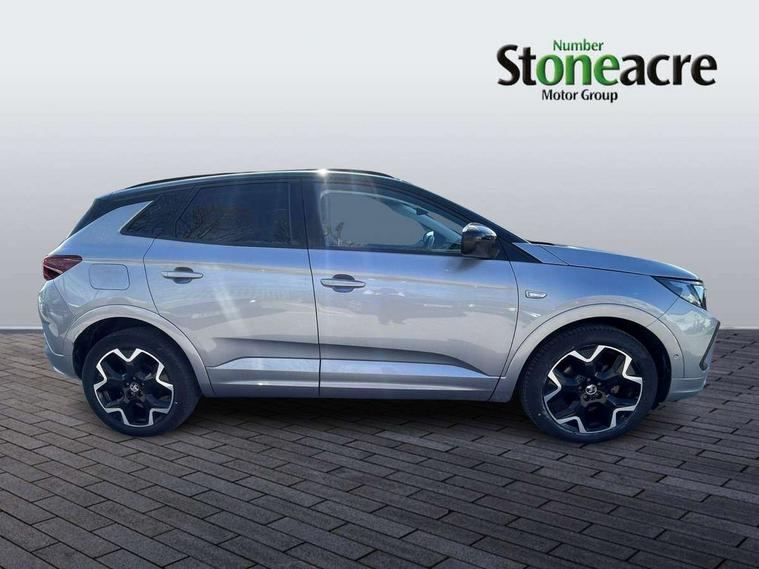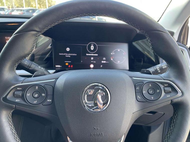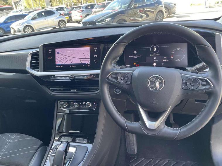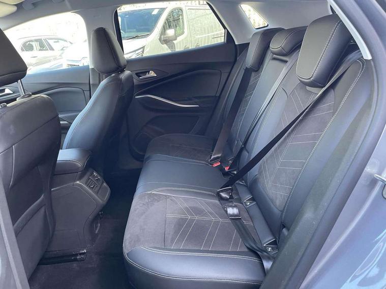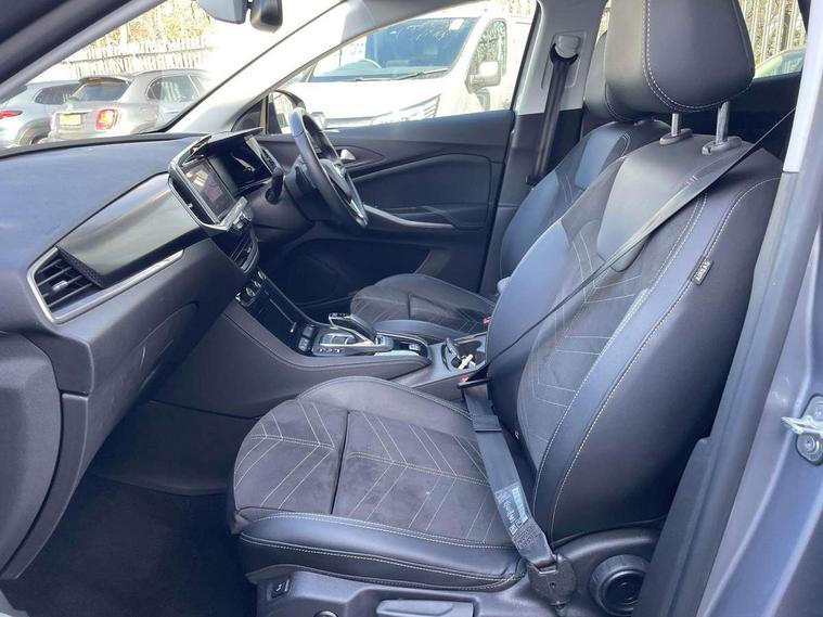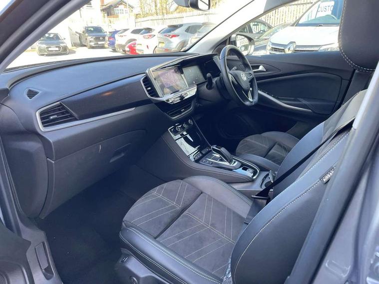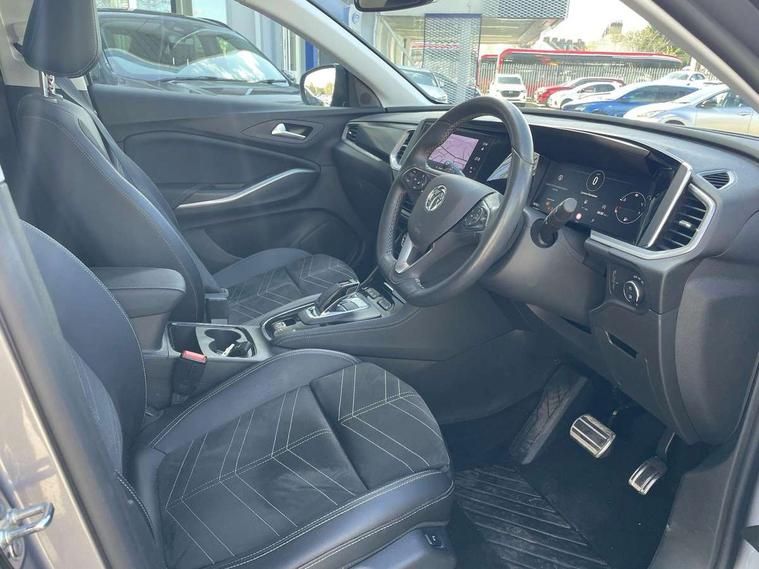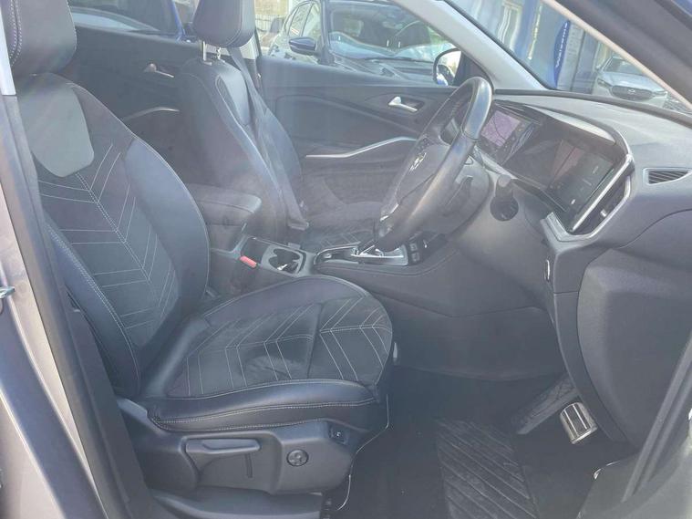 12" colour digital cluster, Central facia display with digital clock, outside air temperature and audio information, Digital fuel gauge with low fuel level warning light, Digital rev counter, Digital speedometer, Digital water temperature gauge with warning light, Driver drowsiness alert system, Driver information - Total mileage, service indicator, oil life, Front and rear parking distance sensors with 360 degree rear view camera and advanced park assist, Gearshift up/down indication light, Highway integration assist (Lane positioning assistant and Adaptive cruise control), Lane departure warning system, Lane keep assist, Lights on audible warning, Multi function trip computer - Trip odometer, vehicle range, average speed and fuel economy, instantaneous fuel economy and driving time, Multimedia navi pro with 10" colour touch+ sat nav+AM/FM/DAB radio, bluetooth audio streaming/mobile phone portal, Apple carplay/Android auto, USB, Power operated tailgate with foot sensor, Side blind spot alert, Speed sensitive electric power assisted steering, Speed sign recognition, Vauxhall connect including Emergency call (SOS e-call) and Breakdown call (b-call), Wireless charger for mobile devices, Anti-roll bars, Compound crank rear suspension with coil springs and gas pressure dampers, Independent decoupled MacPherson strut front suspension with gas pressure dampers and coil springs, anti-roll bar, Six speaker - four front + two rear, Steering wheel mounted audio/phone/cruise controls, Alloy effect front and rear skid plates, Automatic lighting control, Automatically dimming anti dazzle rear view mirror, Black door mirrors, Black roof, Black side window trim, Body colour door handles, Body colour lower front and rear bumpers, protective wheel arches and lower door cladding, Body colour upper front bumper, Collapsible windscreen wipers, Dark tinted rear side and tailgate windows, Door to door illumination, Electrically operated front and rear windows with safety auto reverse and one touch up/down facility, Front wiper system spraying directly from wipers, Hazard warning lights, Heated rear screen with timed cut off, Heated windscreen, High beam assist, High gloss black Griffin for Vizor and tailgate with high gloss black Grandland tailgate lettering, High gloss black roof rails, High level centre rear brake light, IntelliLux adaptive LED pixel headlights and LED tail lights, Intermittent rear window wash/wipe, LED daytime running lights, LED front fog lights, Magic wash, Manual headlight beam levelling, Rain sensor windscreen wipers, Rear side wing doors, Rear spoiler, Reversing light, Shark fin aerial, Silver effect protective front and rear skid plate, Soundproof insulated windscreen, Tinted windows, Twin electrically adjustable and heated power door mirrors (wide-angle on drivers side) with automatic timed cut-off, Two speed windscreen wipers with variable intermittent wipe, Upper and lower bumper design, Vizor front grille, Welcome lighting, 12v plug in front console and 12v plug in boot, 3 bench rear seats in 2nd row, 3 spoke flat bottom leather steering wheel with satin chrome effect bezel, 4 way electric driver lumbar support, 4 way passenger electric lumbar support, 60/40 split folding rear seat with centre rear seat armrest and load though facility, Advanced predictive logic control system using a sun sensor, Alcantara upholstery, Alloy sports pedals, Ambient centre console downlighter, Automatic air direction and fan speed with manual override, Charcoal filter, Chrome effect interior door handles, Covered storage compartment in centre console and in driver armrest, Driver's centre armrest, Drivers and front passengers seat with height, reach, tilt, backrest adjustment and seat cushion extension, Dual zone electronic climate control, Ergonomic active drivers sports style seat, Ergonomic active front passenger sports style seat, Front door pockets with 2.6 litre capacity, Front seat back storage pockets, Fully carpeted luggage area, Height adjustable headrests, Illuminated driver/passenger sunvisors with vanity mirror, Illuminated luggage area, ISOFIX on front passenger and rear outer seats, Luggage compartment cover, Reach + rake adjustable steering column, Rear centre seat head restraint, Rear door pockets with 1.8 litre capacity, Rear passenger compartment heating ducts, Rear reading lights, Two drinks holders in centre console, Winter pack - Grandland, Anti-lock braking system (ABS), Automatic emergency braking with pedestrian detection, Child proof locks on rear doors, CSC - Cornering stability control, Deactivation switch for front passenger front and side impact airbags, Deflation detection system, Driver airbag, Dual seatbelt pretensioners on front seats, EBD - Electronic brakeforce distribution, Electronic parking brake, Electronic stability program (ESP) including traction control, Forward collision alert, Front brake ventilated disc 304mm diameter, Front passenger airbag, Front seat side impact airbags, Full size curtain airbags for driver, front seat passenger and outer rear seat passengers, Hill start assist, Hydraulic Brake Assist (HBA), Inertia reel lap and diagonal seatbelts for all seats, Load limiters on outer rear seatbelt retractors, Pretensioners on outer rear seatbelt retractors, Rear brake ventilated disc 268mm diameter, Smart seatbelt reminder for front and rear seats, Tyre pressure monitoring system, Deadlocking system, Electronically protected audio equipment, Engine deadlock immobiliser, Keyless entry and start, Locking wheel nuts, Remote control central locking activation switch on driver door, Remote security alarm system, Black door panels with black premium leather effect inserts, Dax decor facia panel with palladium medium finish, 19" diamond cut bi-colour alloy wheel, Tyre inflation kit,