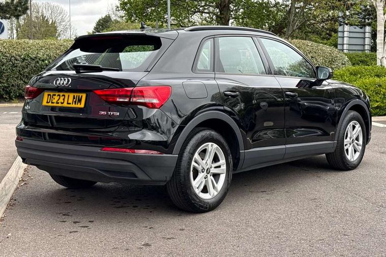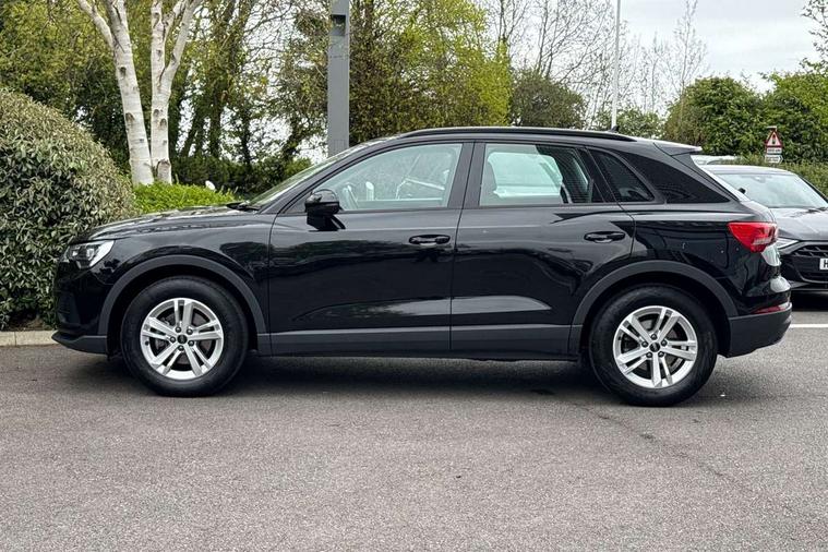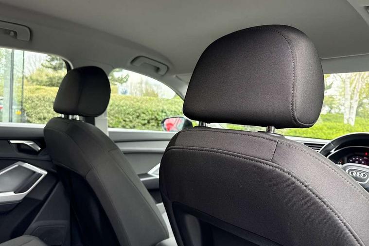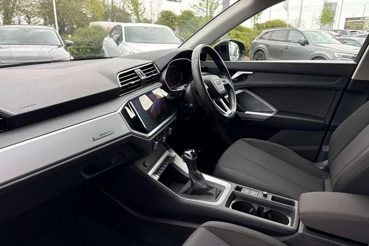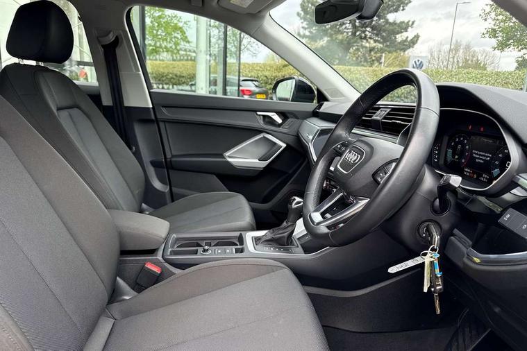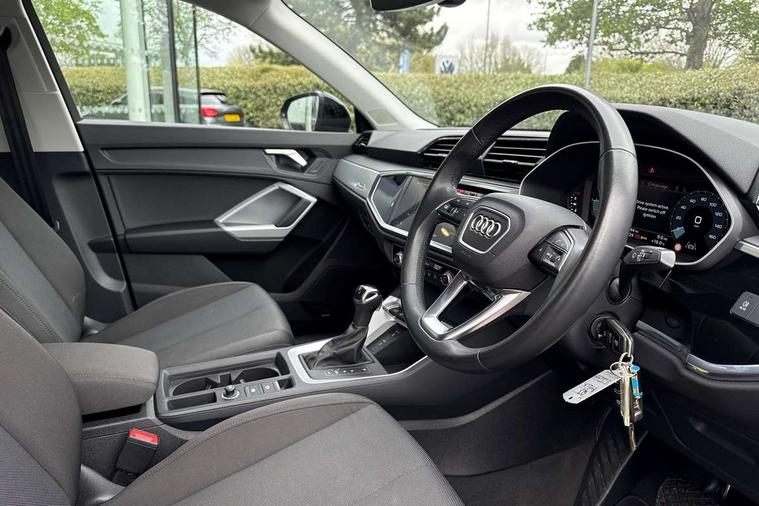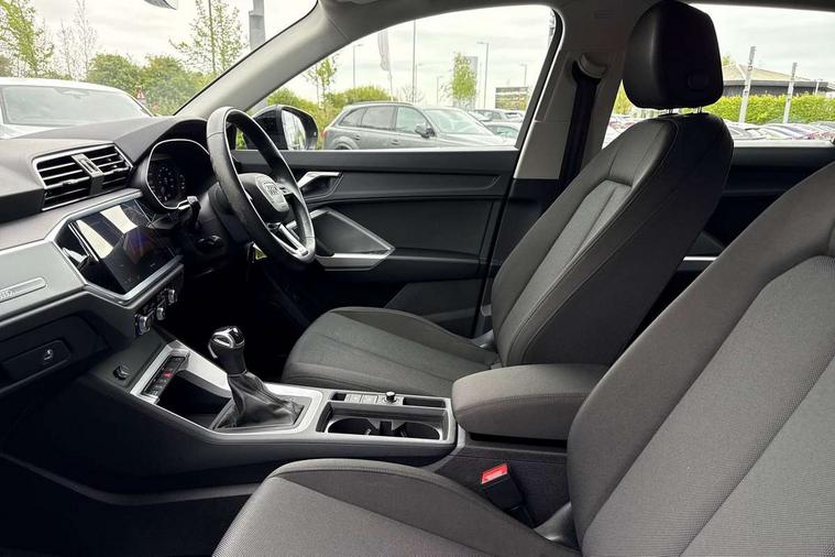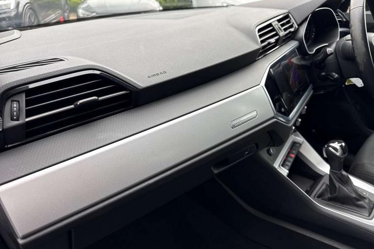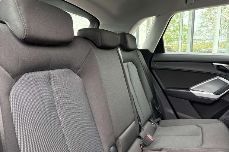 Amazon alexa Integration, Audi drive select, Audi lane departure warning, Audi Virtual Cockpit - 10.25" display, Bluetooth interface, Camera based traffic sign recognition, Legal emergency call, MMI Navigation Plus with high resolution 10.1 inch touchscreen colour display, Power operated tailgate, Progressive steering, Service interval indicator, Smartphone interface includes wireless Apple carplay/Android Auto, Start stop system with recuperation, Voice control system with natural language interaction, Standard suspension, 2 USB-C ports with charge and data functions, 6 passive loudspeakers, DAB digital radio module, Acoustic windscreen, Auto dimming frameless rear view mirror, Black roof rails, Body colour door mirrors, Diffuser in grained anthracite, Electrically folding, adjustable and heated door mirrors with integrated LED side indicators and kerb view function for passenger side, Exterior bumper with wheel arch trims and side sill trims in grained black matt, Front and rear electric windows, Grained radiator protective grille, Halogen rear lights, LED headlights with LED daytime running lights, Rain and light sensors, Rear side wing doors, Rear wiper, Third brake light, Variable front intermittent wipers, 12V socket in rear centre console, 3 seat bench in 2nd row, 3 spoke multi-function leather steering wheel, 40:20:40 folding with manual adjustment for 60:40 forwards/backwards position and backrest angle, Dual zone electronic climate control, Front and rear floor mats, Front and rear headrests, Front and rear roof module including reading lights, Front centre armrest, Glove compartment lighting, Height and reach adjustable steering wheel, ISOFIX child seat mounting for front passenger with airbag deactivation and outer rear seat including top tether attachment point for outer rear seats, Luggage compartment light, Lunar silver cloth headlining, Manual front seats with height adjustment, Single front passenger seat, Stainless steel luggage compartment sill finisher, Non smoking pack - Q3, 3x3 point rear seatbelts, 6 airbags - Driver, front passenger, curtain and side windows, Audi pre-sense front with pedestrain and cyclist recognition, Electrically operated child locks on rear doors, Electromechanical parking brake, Electronic stabilisation control including ABS, ASR and EDL, Front seatbelt reminder, Hill descent control, Hill hold assist, Pre sense basic, Seatbelt monitoring, Tyre pressure warning, Warning triangle and first aid kit, Anti theft alarm, Anti theft wheel bolts, Immobiliser, Remote central locking, Detail dashboard around MMI touch colour display in glass look, black with surround in aluminium look, Micrometallic silver inlay, 17" 5 twin spoke design alloy wheels,