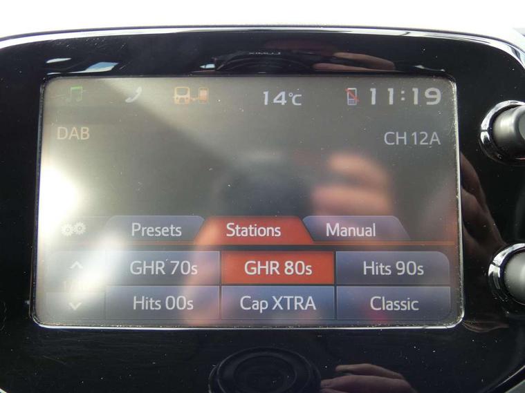 7" touch screen, Bluetooth system, Digital clock, Electric power steering, Fuel indicator with low level warning, Lights on warning, Rear view camera, Speed limiter, Tachometer, Vehicle Stability Control (VSC), Auxiliary input socket, DAB Digital radio, iPod connection, MP3 connection, Multimedia System, Stereo radio, USB connection, 2 speed wipers/variable intermittent/mist function, Body colour bumpers, Body colour door handles, Body colour door mirrors, Carbon rear diffuser, Electric adjustable door mirrors, Electric front windows, Green tinted glass, Headlamp levelling, Heated door mirrors, Heated rear windscreen, LED daytime running lights, LED rear lights, Projector headlamps, Rear spoiler, Rear window demister, Rear wiper, Roof mounted aerial, 12V Accessory socket, 3 spoke leather steering wheel, 50/50 split folding rear seat, Air conditioning, Air recirculation system, Centre console storage, Chrome insert to gearknob, Chrome interior door handles, Cloth upholstery, Driver and passenger sunvisors, Driver's seat height adjuster, Driver/passenger seat recline/slide adjust, Driver/passenger vanity mirrors with covers, Front and rear door pockets, Front cupholder, Front map reading lights, Glovebox, Graphite cloth upholstery, Height adjustable front head restraints, Isofix system on outer rear seats, Leather gear knob, Pollen filter, Rear cupholders, Rear headrests, Steering wheel mounted radio/phone controls, Stepless tilt adjustable steering column, Storage bins on all doors, Storage pockets in centre console, Tonneau cover, ABS, Driver and passenger airbags, Emergency brake assist, ESP, Fasten seatbelt reminder, Front side airbags, Height adjustable front seatbelts with pre-tensioners and load limiters, Hill start assist, Passenger airbag deactivate switch, Rear child proof door locks, Side curtain airbags, Tyre pressure warning, Engine immobiliser, Lockable fuel cap, Remote central locking, Tyre repair kit,