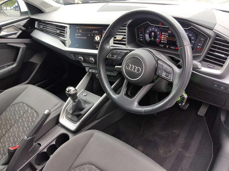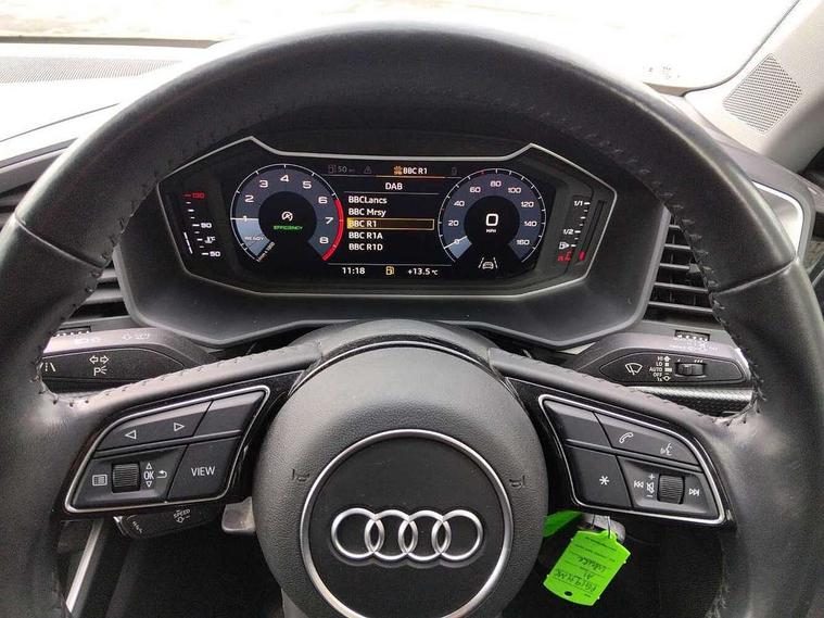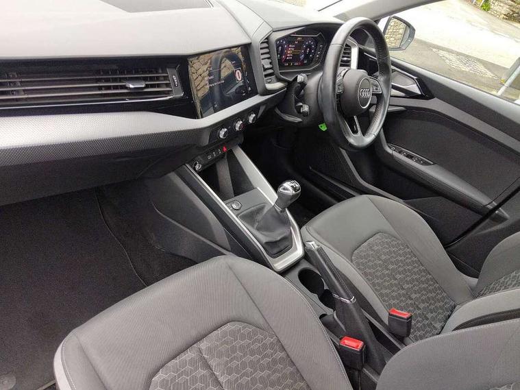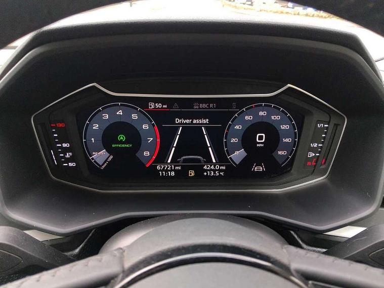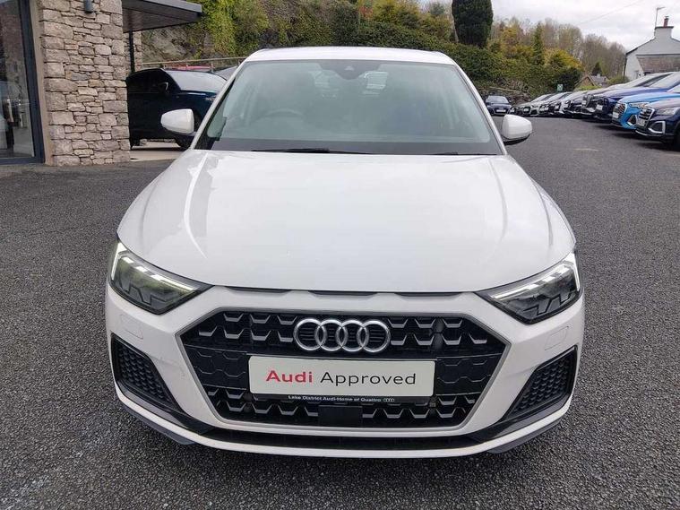Aluminium trim for control switches, air vents and digital instrument cluster, Silver grey accent areas including air vents, door handle recesses and centre console in diamond paint finish, Slate grey inlays polygon structure in fine paint finish, Anti theft alarm, Anti theft wheel bolts and loose wheel warning, Audi pre-sense front with pedestrain and cyclist recognition, Immobiliser, Remote central locking with 2 remote folding keys, 1 x SDXC card reader, 1 x USB type C and 1 USB type A charging points, Audi music interface, Bluetooth audio streaming, DAB Digital radio, MMI radio plus with 8.8" colour MMI display screen and MMI touch, 3x3 point rear seatbelts, Brake assist function, Driver and front passenger airbag with front side and head airbags, Electronic Stability Control including ABS, EBD, ASR and EDL, Front and rear seatbelt reminder, Front passenger airbag deactivation switch, Hill hold assist, Seatbelt height adjustment for front seats, Seatbelt monitoring, Tyre pressure warning light, Warning triangle and first aid kit, Auto dimming rear view mirror, Body coloured bumpers, Body coloured door mirrors, Electric front and rear windows, Front side air inlets in grained matt black and C frame in titanium black, Heat insulating glass windscreen and side windows, Heated rear windscreen, LED headlights with LED rear lights + dynamic rear indicators, Radiator grille in matt titanium black, Radiator protective grille frame in matt aluminium silver, Rain and light sensors, Rear fog lights, Rear wiper, Scandium grey tailpipe trim, Side front spoiler lips in grained matt black, Titanium black matt diffuser, 12V socket in centre console with two cup holders, 3 rear seats, Door sills trims with aluminium inlays, Driver and passenger seat with manual height adjust with forward and backwards adjustment, Front head restraints, Front/rear floor mats, Height and reach adjustable steering wheel, Illuminated glovebox, ISOFIX child seat mounting in front passenger and rear outer seats, Leather gear knob with aluminium trim, Leatherette handbrake grip, Luggage compartment light with front and rear reading lights, Lumbar adjustment for front seats, Novum cloth upholstery with front sport seats, Rear head restraints, Split folding rear seats, Titanium grey cloth headlining, 10.25" Digital instrument cluster display screen, Audi connect safety emergency and service including E-call, Audi drive select, Audi smartphone interface, Automatic start/stop system, Bluetooth interface, Driver's information system, Electromechanical power steering, Lane departure warning system, Service interval indicator, Speed limiter, Voice control system, Washer fluid level indicator, Dynamic suspension,