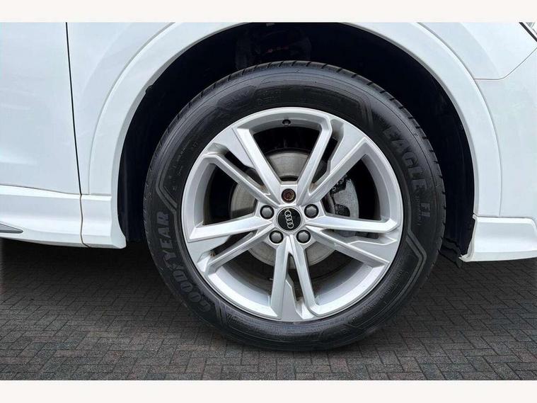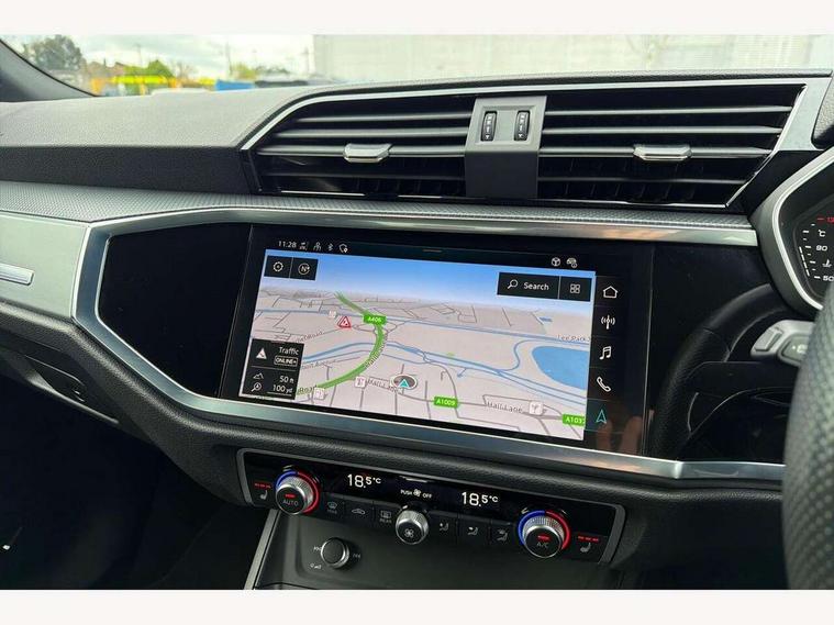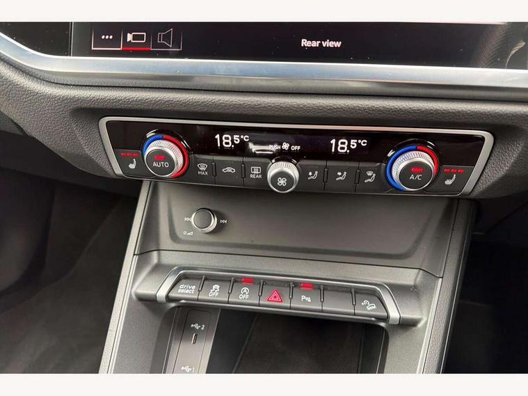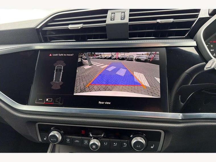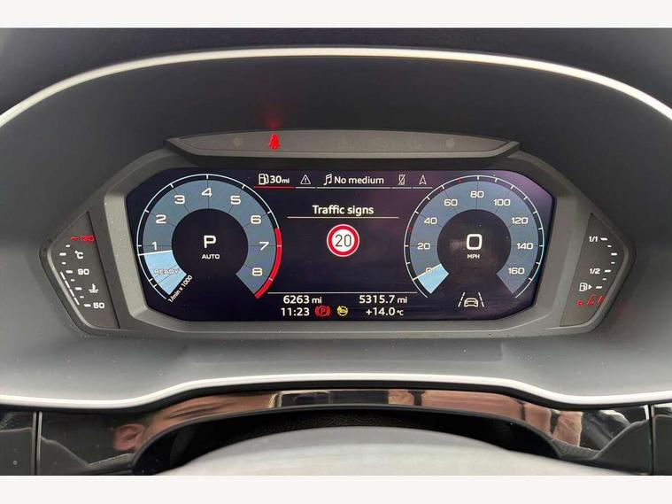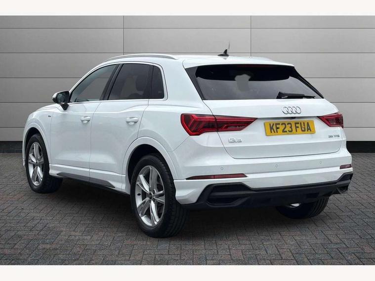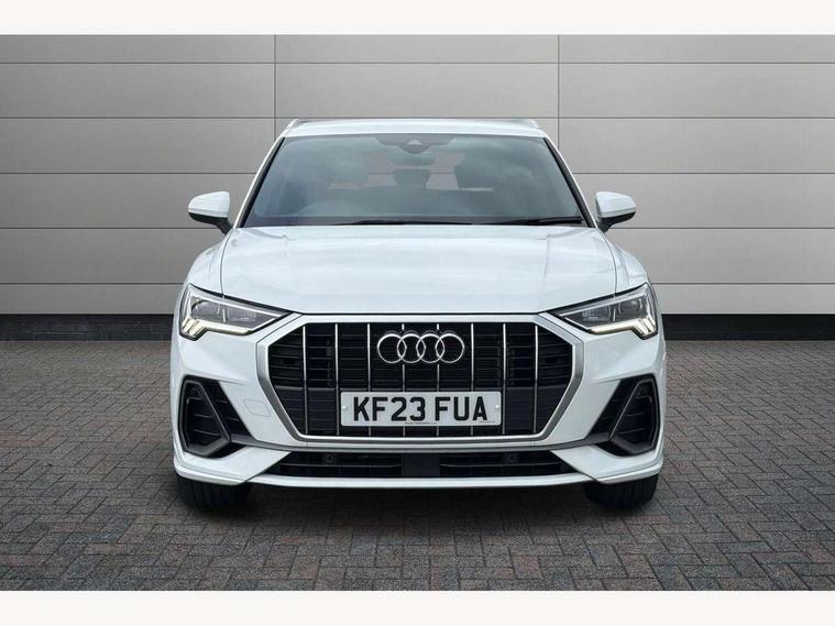 Amazon alexa Integration, Audi drive select, Audi lane departure warning, Audi smartphone interface includes wireless Apple carplay/Android Auto, Audi Virtual Cockpit - 10.25" display, Bluetooth interface, Camera based traffic sign recognition, Legal emergency call, MMI Navigation Plus with high resolution 10.1 inch touchscreen colour display, Power operated tailgate, Progressive steering, Service interval indicator, Start stop system with recuperation, Voice control system with natural language interaction, Sports suspension, 2 USB-C ports with charge and data functions, 6 passive loudspeakers, DAB digital radio module, Acoustic windscreen, Aluminium roof rails, Aluminium window trim, Anthracite black radiator grille, Auto dimming frameless rear view mirror, Body colour front spoiler blade, Body coloured bumpers, Electrically folding, adjustable and heated door mirrors with integrated LED side indicators and kerb view function for passenger side, Front and rear electric windows, Front fog lights, Front side air inlets in matt platinum grey, Grille vertical bars in aluminium silver/Matt, High gloss black finish B and C pillars, LED Dynamic rear indicators, LED headlights with LED daytime running lights, LED rear lights, LED third brake light, Privacy glass dark tinted rear and rear-side windows (from B-pillar backwards), Rain and light sensors, Rear diffuser grille in grained matt black, Rear diffuser strip in matt anthracite black, Rear side wing doors, Rear wiper, S line badges on front wings, S Line front and rear bumpers, Side skirt insert in matt Platinium grey, Variable front intermittent wipers, 12V socket in rear centre console, 3 seat bench in 2nd row, 3 spoke leather multifunction steering wheel features S badging and grips in perforated leather with contrast stitching, 40:20:40 folding with manual adjustment for 60:40 forwards/backwards position and backrest angle, Adjustable rear seat bench/backrest with centre armrest and cupholder, Black cloth headlining, Dual zone electronic climate control, Front and rear black floor mats with contrast stitching in rock grey, Front and rear headrests, Front and rear roof module including reading lights, Front centre armrest, Glove compartment lighting, Height and reach adjustable steering wheel, Illuminated door sill trims with S logo, ISOFIX child seat mounting for front passenger with airbag deactivation and outer rear seat including top tether attachment point for outer rear seats, Luggage compartment light, Manual front seats with height adjustment, Perforated leather gearknob, Single front passenger seat, Stainless steel luggage compartment sill finisher, Stainless steel pedals, Ambient lighting pack - Q3, Non smoking pack - Q3, 3x3 point rear seatbelts, 6 airbags - Driver, front passenger, curtain and side windows, Audi pre-sense front with pedestrain and cyclist recognition, Electrically operated child locks on rear doors, Electromechanical parking brake, Electronic stabilisation control including ABS, ASR and EDL, Front seatbelt reminder, Hill descent control, Hill hold assist, Pre sense basic, Seatbelt monitoring, Tyre pressure warning, Warning triangle and first aid kit, Anti theft alarm, Anti theft wheel bolts, Immobiliser, Remote central locking, Aluminium look interior elements, Dark matt brushed aluminium inlay, Detail dashboard around MMI touch colour display in glass look, black with surround in aluminium look, Leatherette door armrest,