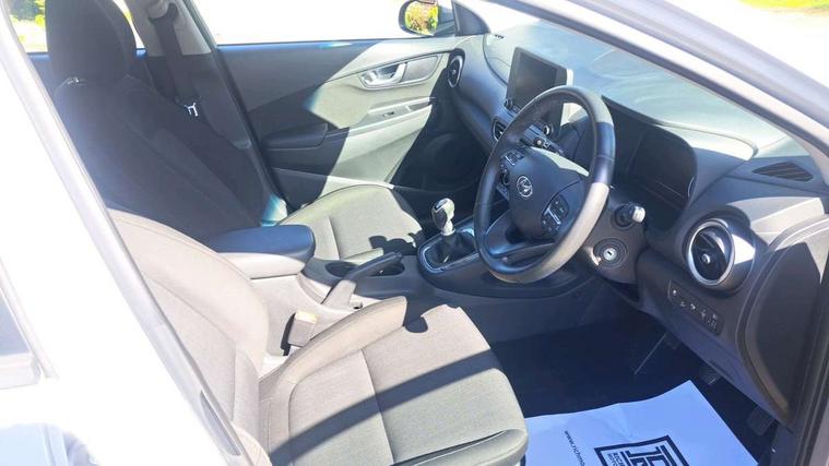 8" Touchscreen display audio + smart device integration, Bluetooth connectivity, Cruise control + speed limiter, Digital clock, Driver attention warning, Driver supervision instrument cluster with 10.25" LCD display, eCall emergency call system, Forward collision avoidance assist with pedestrian detection, Lane follow assist, Lane keep assist, Leading vehicle departure alert (LVDA), Parking system with rear camera and guidance system, PAS, Phone connection with apple carPlay and android auto, Rear parking sensor, Roadside assistance, Tailgate, Windscreen washer fluid sensor and warning indicator, 6 speed intelligent manual transmission, 6 speakers (2 front, 2 tweeters, 2 rear), Front USB ports, RDS and Digital DAB, Steering wheel mounted audio/phone controls, Automatic headlights with dusk sensor, Body colour door mirrors and handles, Door mirror integrated indicators, Electric front/rear windows with drivers one touch/anti-trap, Electrically adjustable and heated door mirrors, Halogen headlights, Halogen rear lights, LED daytime running lights, Positioning Lights - LED, Rain sensor, Rear roof spoiler with integrated LED brake light, Rear side wing doors, Rear wiper, Roof rails, Tinted glass with front door glass and windscreen with shade band, Variable front intermittent wipers, 12V power outlet in front console, 3 seat bench in 2nd row, 60/40 split folding rear seat, Adjustable head restraints, Air conditioning, Centre interior light, Cloth upholstery, Door scuff plate, Driver's seat height adjustment, Driver/passenger sunvisors and illuminated vanity mirrors, Front interior light, Front passenger seat manual adjustments, Height/reach adjustable steering column, Isofix rear child seat fastenings, Leather wrapped steering wheel and gear knob, Luggage compartment lighting, Luggage hooks, Metal paint effect interior door handles, Parcel shelf, Rear centre console with air vents, Single front passenger seat, Sunglasses holder, Vertical adjustment rear head restraints, Trailer wiring package - Kona, Airbags - front, front side and curtain airbags, Anti-lock brake system (ABS), Childproof rear door locks, Downhill brake control, EBD + Brake Assist, Electronic stability control, Fasten seatbelt reminder, Fixed 3 point for second row centre passenger seatbelt, Front seatbelt pretensioners, Height adjustable front seatbelts, Hill start assist control (HAC), Manual parking brake, Passenger airbag deactivate switch, Rear seat alert, Traction control, Tyre pressure monitoring system, Alarm/immobiliser, Deadlocks, Folding key, Locking wheel nuts, Remote central locking, 17" Alloy wheels,