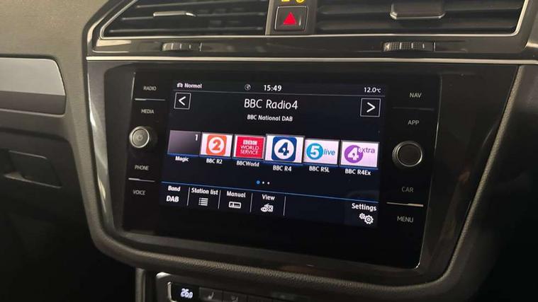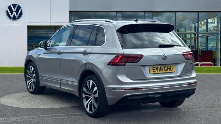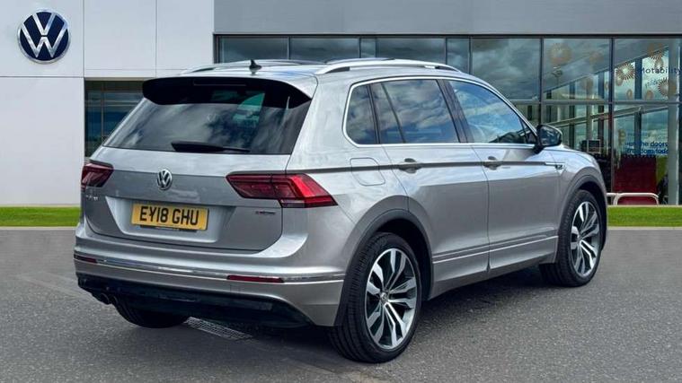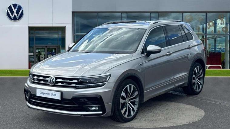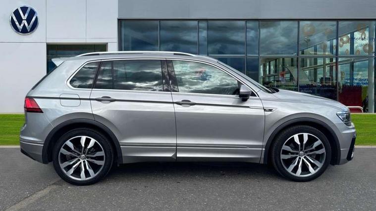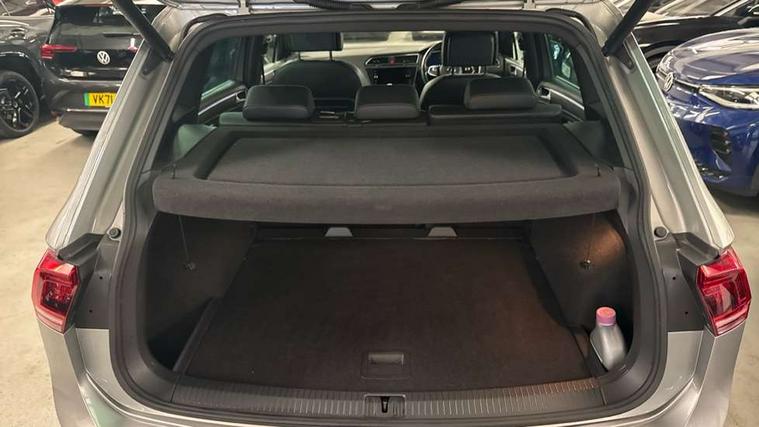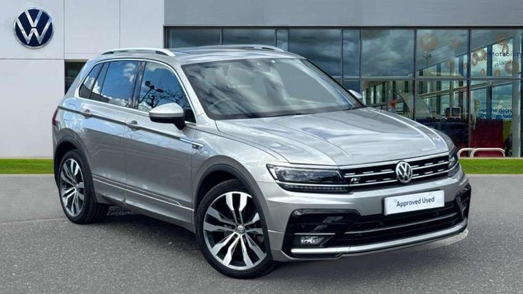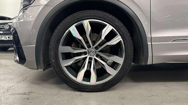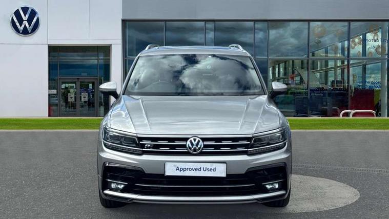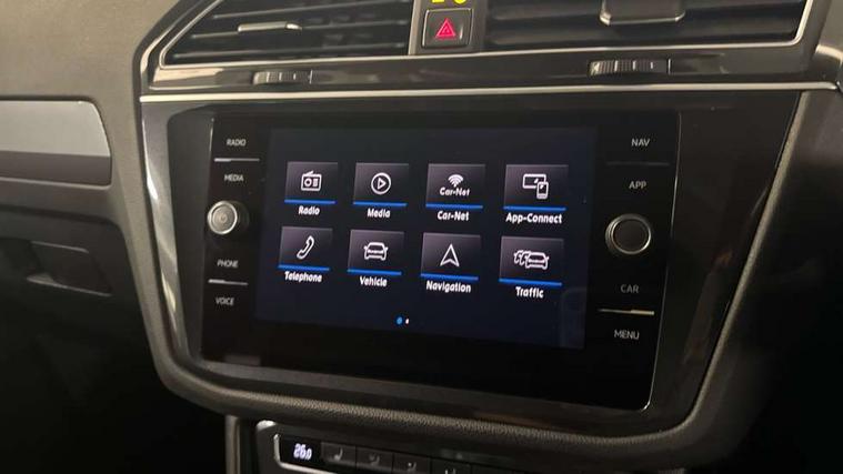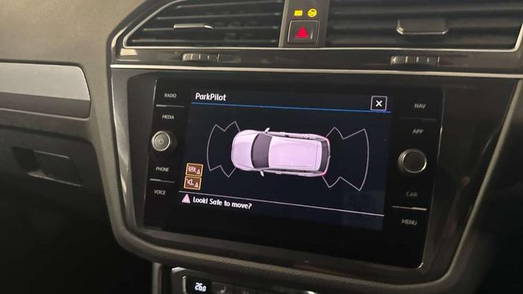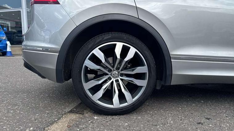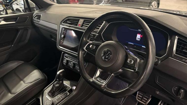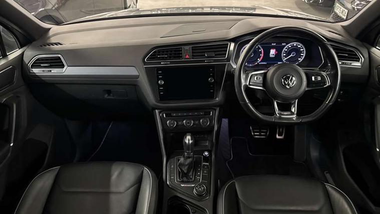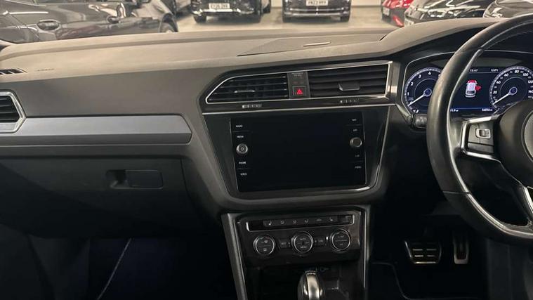 Active information display, Adaptive cruise control, App-Connect, Bluetooth phone integration system, Distance control assist, Drive mode selector, Driver profile selection, Fatigue detection system, Instrument cluster, Lane assist, Low washer fluid warning light, Outside temperature display, Progressive power assisted steering, Service interval indicator, Speed limiter, Warning lights, XDS electronic differential lock, 2x USB sockets in front, Aux-in socket, DAB Digital radio, MP3 compatible single CD player, SD card slot, Auto dimming interior mirror, Automatic activation of hazard warning lights, Body colour door handles, Body colour door mirrors, Body colour rear spoiler, Body colour side skirt, Body coloured bumpers, Chrome side window surrounds, Chrome trimmed radiator grille, Coming/leaving home lighting function, Dusk sensor + auto driving lights, Electric folding door mirrors, Electric heated + adjustable door mirrors, Electric panoramic sunroof with sunblind, Front and rear electric windows, Heated rear window, LED headlights with dynamic light assist daytime running lights and cornering front fog lights, LED rear lights, Piano black rear diffuser, R Line body kit, Rain sensor windscreen wipers, Rear windscreen washer and wiper with interval delay, Silver roof rails, Silver under body guard, Tinted windows (B pillar backwards), Twin trapezoid chrome exhaust pipes, Windscreen wipers/ intermittent wipe + 4 position delay, 12V Accessory socket in centre console, 3 rear headrests, 3 zone climate control, 4 load lashing points, 40:20:40 split folding rear seats, Bag hook in luggage compartment, Black headlining, Driver + front passenger lumbar support, Foldable passenger seatback, Front + rear carpet mats, Front centre armrest with 12v socket, Front centre armrest with storage + rear 2 air vents + cupholders, Front seatback folding tables, Height/reach adjust steering wheel, Illuminated driver/passenger vanity mirrors, Illuminated scuff plates, Interior light with delay, Isofix Preparation 2 Rear child seats, Leather gear knob, Leather multifunction steering wheel with paddle shift, Load through provision with 2 cupholders when folded, Lockable cooled glovebox, Luggage compartment lighting, Luggage compartment side storage, Map pockets on front seats, Passenger seat height adjuster, Rear cupholders, Removable luggage cover, Sliding/reclining rear seats, Stainless steel pedals, Storage compartment in driver's door, Storage compartment in passenger's door, Storage compartment in rear doors, Storage tray on dashboard, Sunglasses storage, Variable boot floor, Ambient lighting pack - Tiguan, 3 rear 3 point seatbelts, ABS+EBD+Brake assist, Active bonnet, Active pedestrian safety system, Curtain airbags, Driver/Front Passenger airbags, Driver/Passenger whiplash optimised head restraints, Drivers knee airbag, DTC - Drag torque control, Electronic parking brake with auto hold, ESP with EDL + ASR, First aid kit, Front assist including city emergency braking, Front side airbags, Head airbag system, Height adjustable front 3 point seatbelts + pretensioners, Hill hold control, Passenger airbag deactivate switch, Passenger knee airbag, Pre crash system, Rear side airbags, Seatbelt warning lamp and buzzer, Two tone horn, Warning triangle, Alarm with interior protection, Electronic engine immobiliser, Remote central locking with 2 remote folding keys, Aluminium decorative inserts, Chrome door trim inserts, 20" Suzuka alloy wheels + anti theft wheel bolts, Steel space saver spare wheel,
