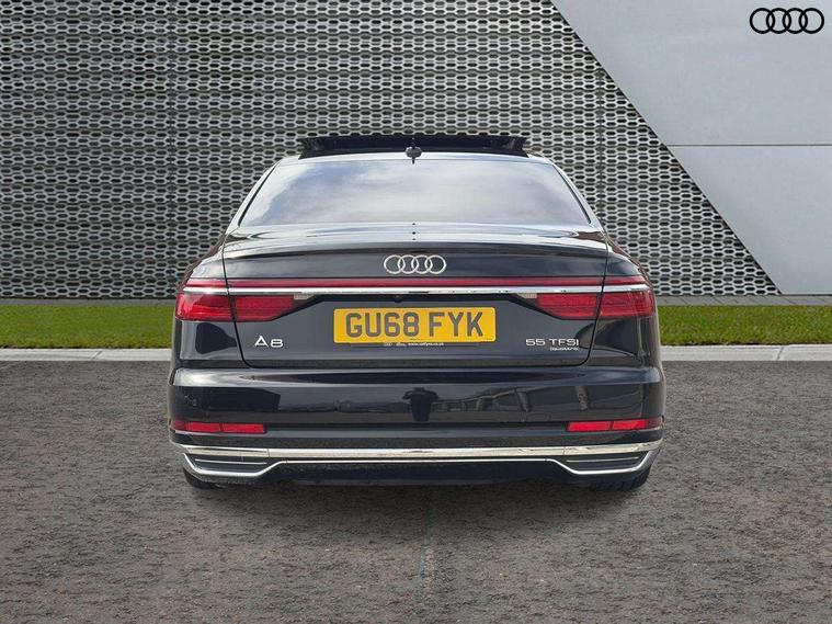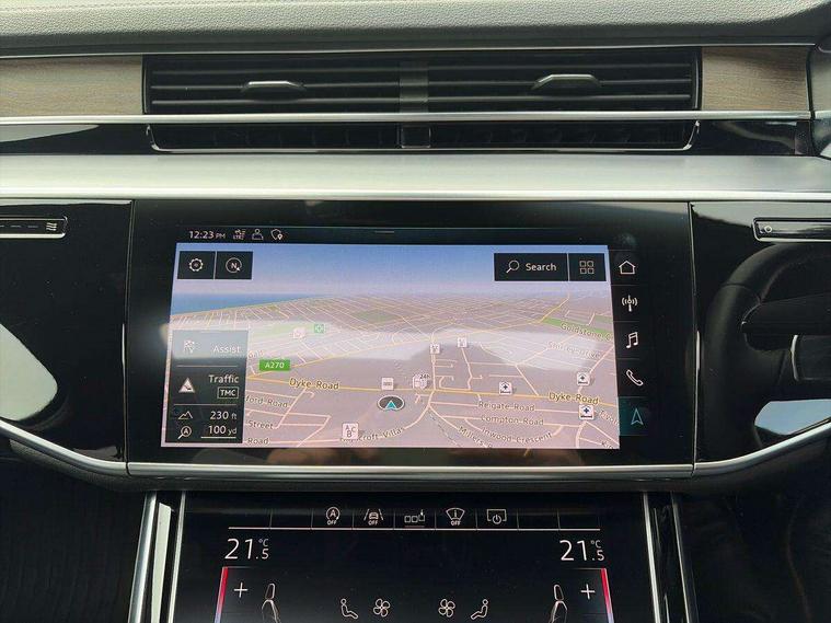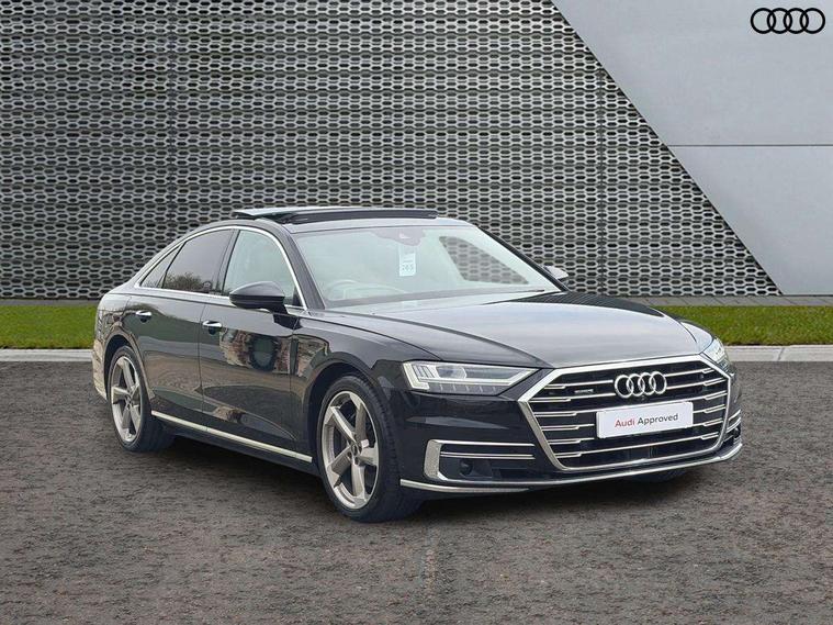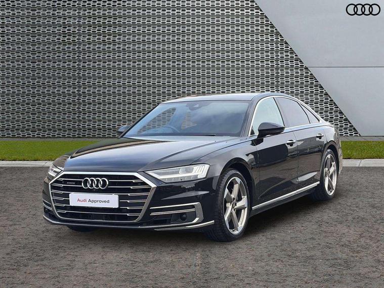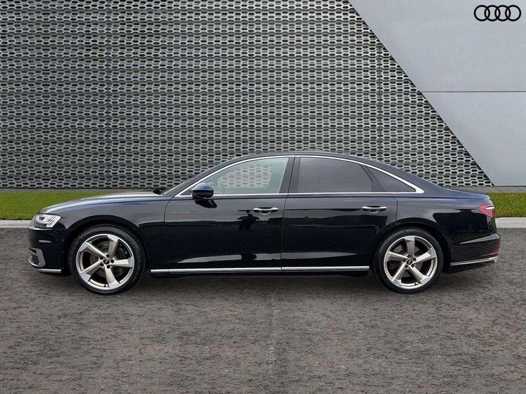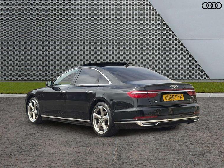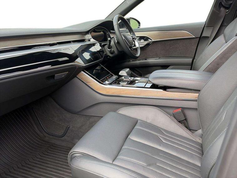 'Lights On' Reminder warning buzzer, Adaptive cruise control with Stop and Go + pre sense front, Audi connect, Audi drive select, Audi phone box with wireless charging, Audi smartphone interface, Camera based traffic sign recognition, Colour driver's information system display, Head up Display, Lane departure warning system, MMI navigation plus with MMI touch, Power tailgate, Rear view camera, Remote fuel filler release, Service interval indicator, Virtual cockpit, Adaptive air suspension, DAB digital radio module, DVD System, MMI radio plus, USB connection, Acoustic windscreen, Auto dimming rear view mirror, Automatic headlight control system, Body colour bumpers, Body colour door handles, Body colour door mirrors, Body colour side protection with aluminium trim strips, Electric front windows, Electric heated, adjustable, folding and dimming door mirrors with memory, Electric rear windows with isolation switch, Heat insulating glass windscreen and side windows, Heated rear window, Heated windscreen washer jets, LED brake lights, LED daytime running lights, Reverse activated kerb-view adjustment on passenger's door mirror, 230V socket, 3 rear seats, Centre console with cupholders, Climate controlled seats, Comfort front centre armrest, Cooled glovebox, Door armrest with storage, Door pockets with bottle holder, Dust/pollen filters, Electric 4-way lumbar support for front seats, Electric adj front seatbelt height + memory, Electric front seats with memory function, Front/rear floor mats, Height/reach electric steering column with easy exit function, ISOFIX child seat mounting in front passenger and rear outer seats, Jack and tool kit, Leather gear lever, Multifunction steering wheel, Passenger footwell storage net, Rear centre armrest, Rear head restraints, Roof mounted sunglasses holder, Sunvisors with illuminated vanity mirrors, LED ambient interior lighting pack - A8, Light and rain sensor pack - A8, Luggage compartment pack - A8, 3 point seatbelts on all rear seats, ABS/EBD, Active front headrest system, ASR traction control, Driver and front passenger airbag with front side and head airbags, EDL traction control, Electromechanical parking brake, Emergency brake assist, ESP, Front passenger airbag deactivation, Hill hold assist, Hill start assist, Pre sense basic, Predictive pedestrian protection, Rear child proof door locks, Seatbelt warning, Tyre pressure warning light, Warning triangle and first aid kit, Advanced key, Anti theft alarm tow away protection, Anti theft wheel bolts and loose wheel warning, Locking wheel bolts, Remote central locking, Brushed aluminium lower inlay, Space saver spare wheel,