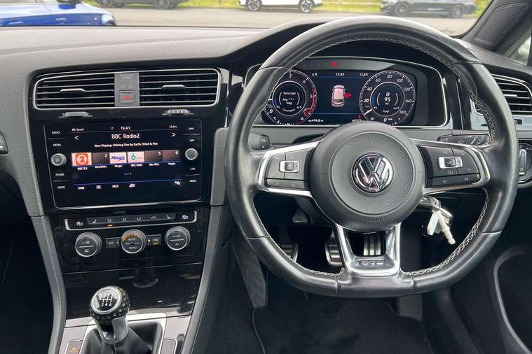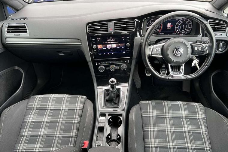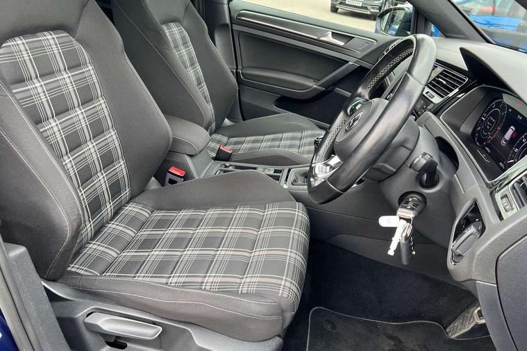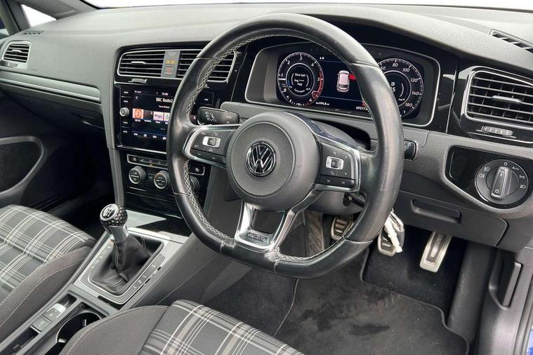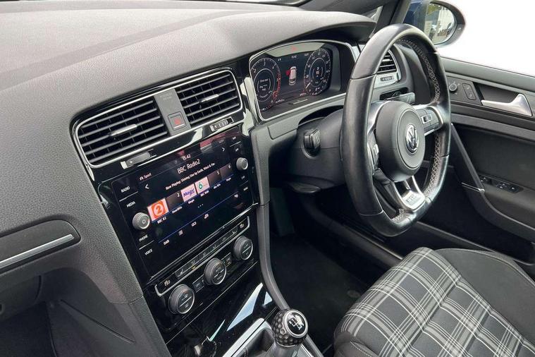 'Lights On' Reminder warning buzzer, 8" touch screen, Adaptive Cruise Control with pedestrian detection and speed limiter, App-Connect, Bluetooth hands free telephone connection, Brake pad wear indicator warning light, Drive mode selector, Driver alert system, Driver profile selection, Exterior temperature gauge, Instrument cluster in white, Multifunction computer, Progressive power assisted steering, Rev counter, Trip and service interval display, Ultrasonic front and rear optical and audible parking sensors, Warning buzzer and light for front seatbelts unfastened, Anti-tramp function, Diesel particulate filter, Lowered sports suspension, XDS plus electronic differential lock, CD/MP3/WMA, USB and SD card reader, aux-in, Composition media system, DAB Digital radio, 3D-LED-SBBR with sweeping indicator, Auto dimming rear view mirror, Automatic coming/leaving home lighting function, Automatic headlights, Black rear diffuser, Body colour door handles, Body colour door mirrors, Body colour rear roof spoiler, Body colour sports bumpers, Electric front windows, Electric rear windows, Electrically adjustable and heated door mirrors, Heated rear windscreen, Honeycomb radiator grille - black, LED daytime running lights, LED front fog lights, LED rear lights, Rain sensor, Rear windscreen washer and wiper with interval delay, Twin exhaust tailpipe, 12V socket in luggage compartment, 3 rear headrests, 3 spoke steering wheel, 60/40 split folding rear seat, Air conditioning - 2 zone electronic climate control, Bag hook in luggage compartment, Black headlining, Boot lashing points, Cooled glovebox, Courtesy light delay, Cover for storage compartment in centre, Dust/pollen filter, Front + rear carpet mats, Front centre armrest with storage box and rear air vents, Front passenger drawer stowage, Front passenger seat height adjust, Front seat back storage pockets, Grab handles, Height/reach adjust steering wheel, Illuminated door sills, Illuminated vanity mirrors, Isofix preparation for 2 rear child seats, Leather gear knob and handbrake grip, Load through provision with rear centre armrest and cupholders x2, Luggage compartment cover, Luggage compartment lighting, Multifunction leather steering wheel with grey stitching leather trimmed gear knob including paddle shift, Overhead storage box, Stainless steel pedals, Storage box in luggage compartment, Storage compartments in doors, Sun visors, Variable boot floor, height adjustable and removable, Ambient lighting pack - Golf, Mirror pack - Golf, 3 point height adj front seatbelts + pretensioners, 3 rear 3 point seatbelts, ABS, Automatic post collision braking, Child locks on rear doors, Driver/Front Passenger airbags, Driver/Passenger whiplash optimised head restraints, Drivers knee airbag, Electronic parking brake with auto hold, ESP with EDL + ASR, Front and rear curtain airbags, Front passenger airbag deactivation, Front side airbags, Pre crash system, Tyre pressure monitor, Alarm with interior protection, Electronic engine immobiliser, Remote central locking with 2 remote folding keys, Chrome-plated light switch surround, Honeycomb black decorative inserts, Piano black centre console, Space saver spare wheel,