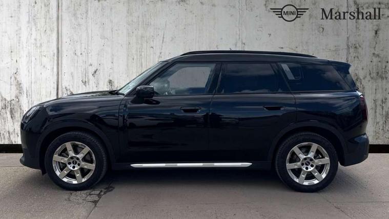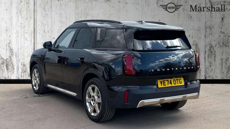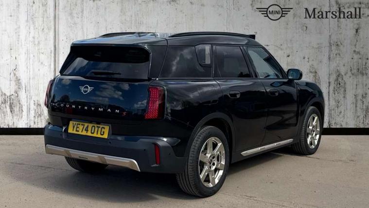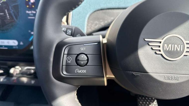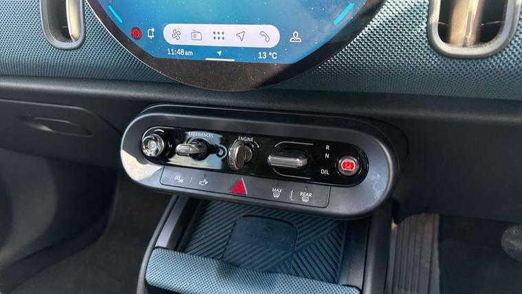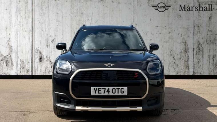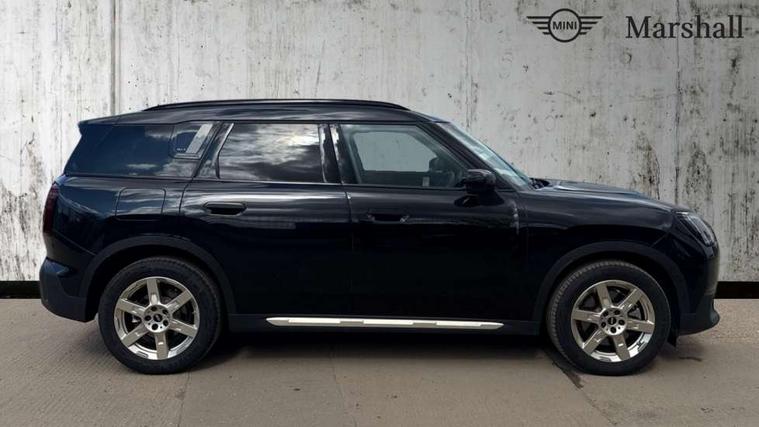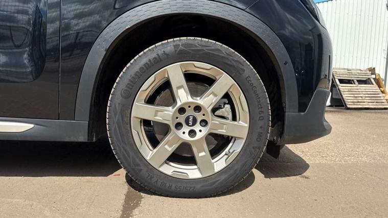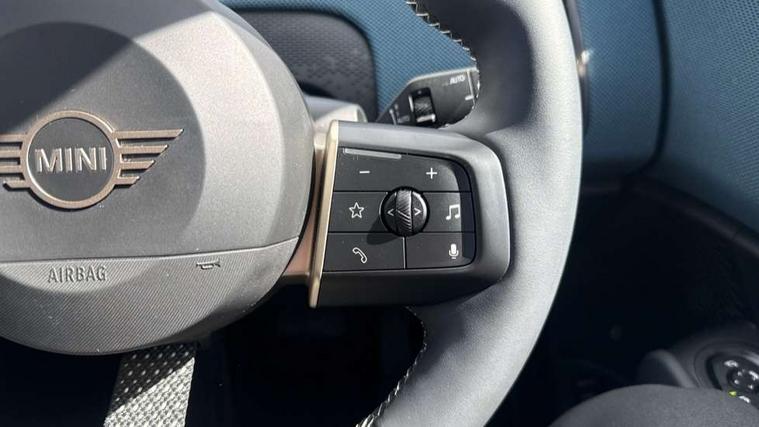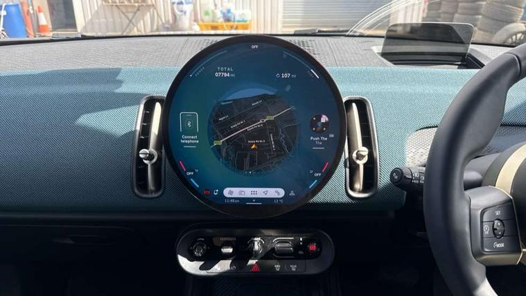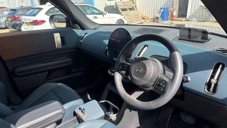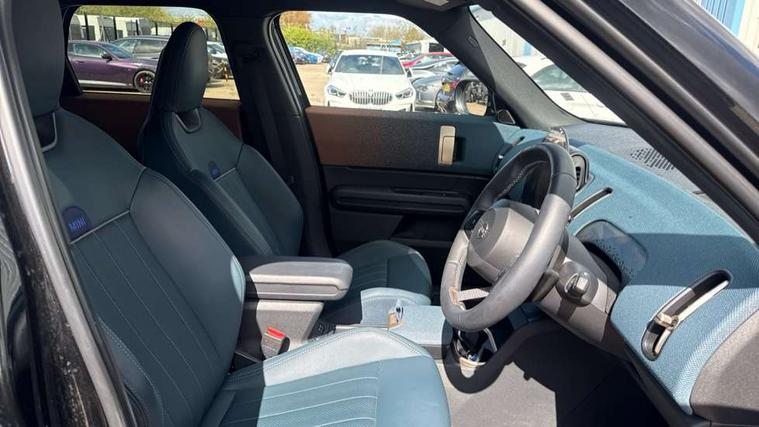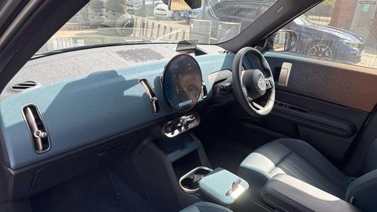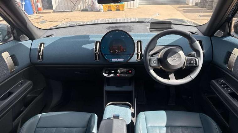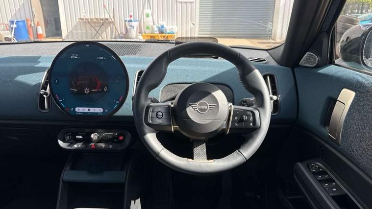 Bluetooth connection, Circular OLED Screen, Compatible mobile phone bluetooth with audio streaming, Cruise Control (DCC), Digital dashboard display, Driving assistant, Driving Assistant Plus Preparation, E-call, Electro-mechanical speed dependant steering assistance, MINI Experience Modes, MINI Head up display, Mini navigation system, MINI TeleServices, Parking assistant in camera and ultrasound based assistance system, rear view camera, parking aid and distance control, Auto transmission with Paddles, Larger capacity fuel tank, 6 speakers, DAB Digital radio, Personal eSim, Auto tailgate, Electric adjustable heated door mirrors, Front and rear electric windows, Heated rear window, High beam assistant, Interior rear-view mirror with automatic anti-dazzle function, LED daytime running lights, LED headlights with extended contents including Adaptable light signatures, LED rear lights, LED third brake light, Logos in Vibrant Silver, Rain sensor with auto headlights, Rear side wing doors, Rear window wiper, Roof rails, Vibrant silver grille surround, 3 Seat sliding rear bench in 2nd row, 60/40 split rear bench seat, Anthracite headliner, Auto air conditioning, Driver and front passenger seat heating, Floor mats, Front armrest, Front headrests, Front sport seats, Heated steering wheel, Height and length steering column adjustment, Lidded storage box in Petrol knit, Luggage compartment separating net, Rear headrests, Seat adjustment for rear seats, Single front passenger seat, Sport Vescin Steering Wheel, Sunvisors with vanity mirrors, Vescin synthetic leather upholstery, Vibrant Silver sill inlay, Wireless charging tray, Interior and exterior mirror package - Mini Countryman, 3x3 point rear seat belts, 6 Airbags - front, side, head and seat belt tensioners, ABS, DSC - Dynamic Stability Control, Electronic handbrake, Electronic Stability Programme (ESP), Front ISOFIX (iSize), Hill descent control, Hill hold assist, Hill start assist, Manual rear child locks, Traction control, Tyre pressure monitoring system, Warning triangle, Alarm system with tilt sensor, monitoring doors, bonnet interior and tailgate, Auto drive away locking, Comfort access system, Deadlocking function, Electronic vehicle immobiliser, Locking wheel bolts, Remote control locking, Start/stop toggle with keyless go, Petrol/Brown dashboard knit, MINI Mobility Kit,