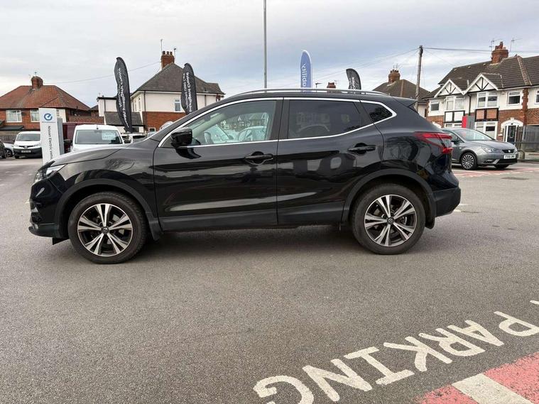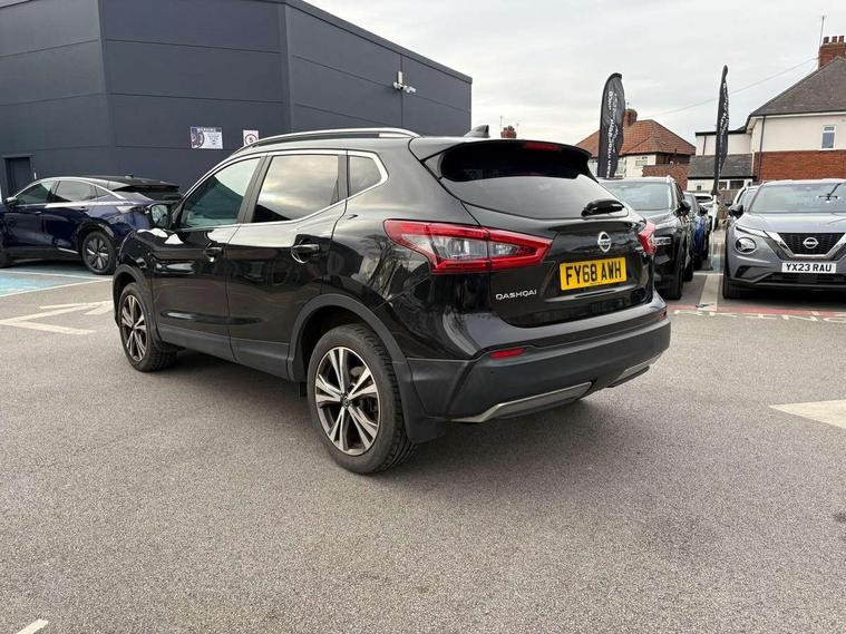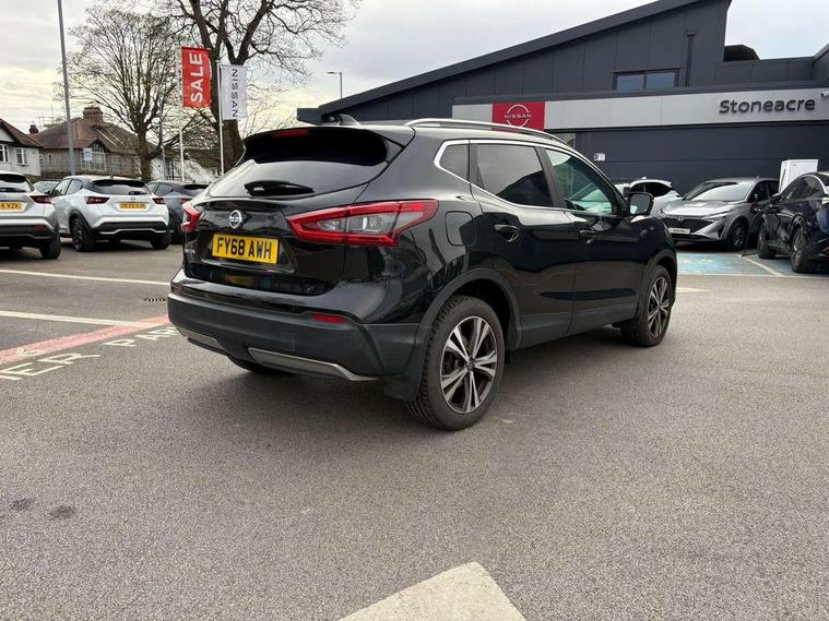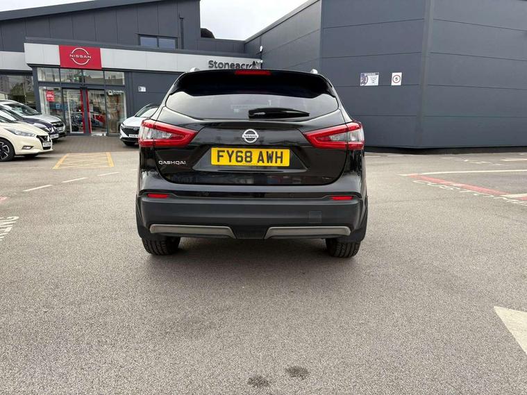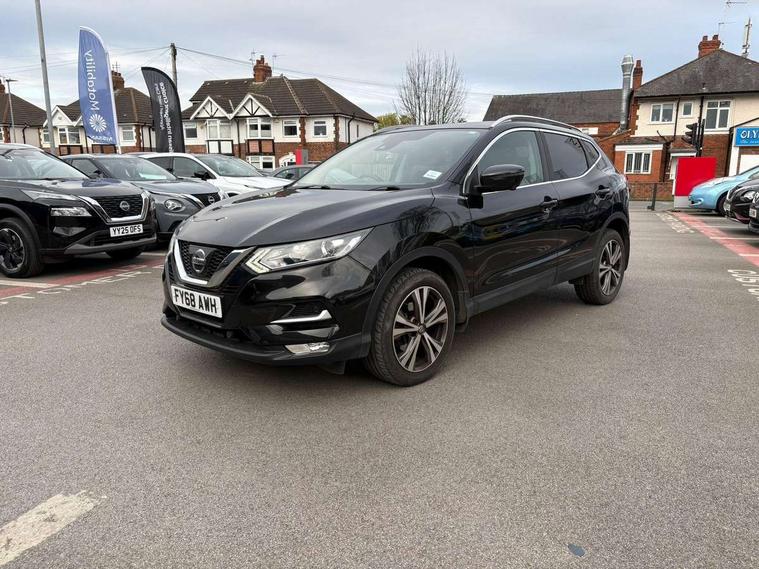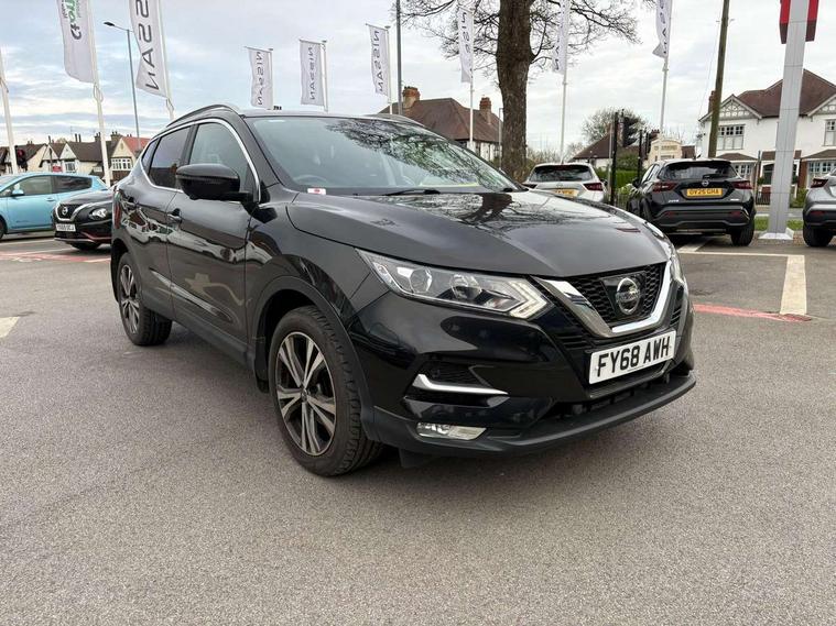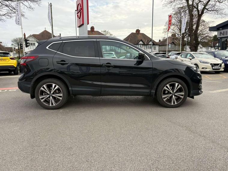 5" TFT driver information centre, Around View Monitor, Bluetooth phone integration system, Cruise control, Electric speed sensitive power steering, Front and rear parking sensors, Lane departure warning system, Nissan connect sat nav system, Outside temperature display, Push button starter, Rear view camera, Service interval indicator, Speed limiter, Traffic sign recognition, Trip computer, 'Shark fin' mobile antenna, 6 speakers, DAB Digital radio, Radio/CD, Smartphone apps, Steering wheel mounted audio controls, USB/aux input socket, Automatic headlamp activation, Body colour bumpers, Body colour door handles, Body colour door mirrors, Chrome window surround, Electric folding and heated door mirrors, Front fog lights, High beam assist, Interior mirror with auto anti dazzle, LED indicators in door mirrors, Matt silver roof rails, One touch electric front/rear windows, Privacy glass, Rain sensor windscreen wipers, Rear roof spoiler, Rear wiper, 2 X front 12v power sockets, 60/40 split folding rear seat, Ambient interior lighting, Centre console with armrest, Chrome interior door handles, Cloth upholstery, Configurable luggage board system, Driver + front passenger lumbar support, Dual zone climate control, Front and rear door pockets with bottle holders, Front headrests, Front seat belt pre-tensioners with load limiters, Height adjustable driver's seat, Height adjustable passenger seat, Illuminated electric window switch, Isofix child seat preparation, Leather gearknob, Leather interior door handles, Leather knee rest, Leather steering wheel, Luggage compartment lighting, Parcel shelf, Pollen filter, Rake/reach adjustable steering wheel, Rear armrest with 2 cupholders, Rear headrests, ABS, brake assist and EBD, Child locks on rear doors, Curtain airbags, Driver/front passenger airbag, Electronic parking brake, ESP + traction control, Forward emergency braking, Front passenger airbag deactivation, Height adjustable front seatbelts, Hill start assist, Seatbelt warning, Side airbags, Three 3 point rear seatbelts, Tyre pressure monitoring system, Alarm, Immobiliser, Intelligent Key, Remote central locking, Piano black interior trim, 18" Bi-colour alloy wheels, Tyre puncture repair kit,
