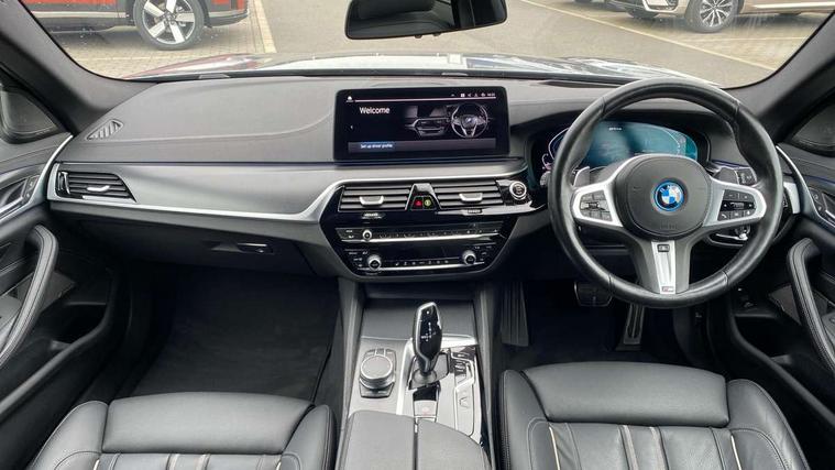 32GB hard disc drive (HDD) memory, Active Guard, Bluetooth connection, BMW Live Cockpit Professional sat nav system with 12.3" instrument display and high resolution control display, BMW Teleservices, Brake pad wear indicator, Connected eDrive Services, Cruise control with brake assist, Digital Instrument display with hybrid specific functions, Driving experience switch specific to 530e/530e xDrive, eCall emergency call system, Electric boot lid - electrically opening/closing rear tailgate, Electric Power Steering (EPS) with Servotronic, Electronic display of drivetrain information and battery range and temperature, iDrive controller with shortcut buttons, Intelligent emergency call, Multifunctional instrument panel, Oil sensor for level and grade, On board computer inc. average speed, fuel consumption, liquid crystal Info display, journey computer, outside temperature display, personal profile, On-board diagnosis - OBD, Powered by Operating System 7.0, Service interval indicator, Speed limiting function, Stop/start button, XtraBoost driving mode, 5 metre standard charge cable, AC Fast charge cable, Charging flap in front side panel - left, Drive performance control with ECO PRO comfort + sport mode, eDrive exterior sound, Electric motor, Engine cover with twin turbo designation, Standard Charging cable (Mode 2) for home socket, Steptronic transmission with gearshift paddles on steering wheel, DAB Digital radio, Favourite buttons, "Electrified by i" exterior badging on charging flap, Acoustic glazing, All round anti-corrosion system, Aluminium radiator, Automatic windscreen wipers and automatic headlight, Automatically dimming rear view mirror, BMW Individual high gloss shadow line includes exterior mirror frame, window frame surround, B pillar finish, air breather in high gloss black, BMW roundel with BMW i blue surround on steering wheel, wheel centre caps, tailgate and bonnet, Body colour door handles, Body coloured bumpers, Door handle illumination, Dynamic brake lights with LED technology, Electric front and rear windows with fingertip open/close + anti-trap facility and comfort closing function, Electrically adjustable and heated exterior mirrors includes integrated direction indicators and automatic parking function, Folding exterior side mirror with auto- dimming, Follow me home headlight function, Heated windscreen washer jets, High gloss black active air stream kidney grille, High gloss shadow line roof rails, Independent opening for tailgate window, LED daytime running lights, LED Headlights, LED third brake light, M designation on front side panels, left and right in chrome, M Sport exterior styling, Preparation for high beam assistant, Rear side wing doors, Rear wiper, Trapezoidal visible exhaust tailpipes, 12V power socket in front and rear, 3 seat bench in 2nd row, 40/20/40 split folding rear seats with additional mechanism in luggage compartment, Anthracite headlining, Armrest - front and rear integrated door trim, centre console includes storage compartment, rear centre includes 2 cupholders, Child seat ISOFIX attachment with rear outer seats includes top tether, Cup holders (2 front and 2 rear), Front and rear footwell lights, Front reading lights, Height and length adjustable steering column and activation via lateral lever on the steering column, Illuminated charging socket with visual display of charge status, Lockable glove compartment with light, M door sill finishers, M specific pedals, M specific velour floor mats, Multifunction controls for leather steering wheel, Rear headrests, Retractable luggage compartment dividing net, Single front passenger seat, Stationary cooling, Three spoke sport M leather steering wheel, Ambient lighting pack - 5 Series, Connected package professional - 5 series 530e/545e, M Aerodynamic pack - 5 Series, Acoustic protection for pedestrians, Airbags - driver/front passenger, rear and side, first and second row seats head airbags, front passenger seat airbag deactivation, Anti-lock braking system (ABS), Automatic Stability Control (ASC), Brake assist function, Brake energy regeneration, Cornering brake control (CBC), Crash sensor activating central locking release, hazard warning lights, fuel cut off and interior lighting, Deformation zones - front and rear with door reinforcements and bumpers up to 2.5 mph, DSC - Dynamic Stability Control, Dynamic brake control, Dynamic Traction Control - DTC, Electromechanical parking brake with automatic drive away release and auto hold function, Electronic brake force distribution, Engine drag torque control, Front and rear brake discs with interior ventilation, Front head restraints with anti-whiplash, Hill start assist, M Sport brakes in high gloss blue painted brake callipers with M designation, Mechanical child proof lock on rear doors, Rear door child safety locks, Side impact protection, Three point seat belts for all four seats, Two tone horn, Tyre pressure indicator, Warning triangle and first aid kit, Alarm system (Thatcham 1) with remote control and electronic engine immobiliser, Locking wheel bolts, Tyre repair kit,