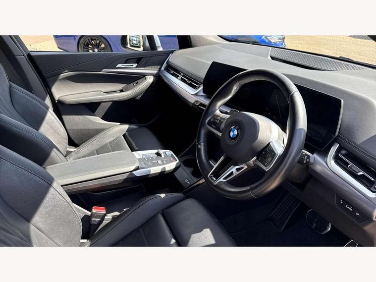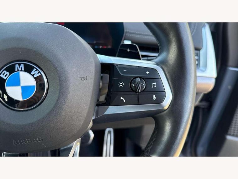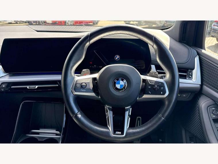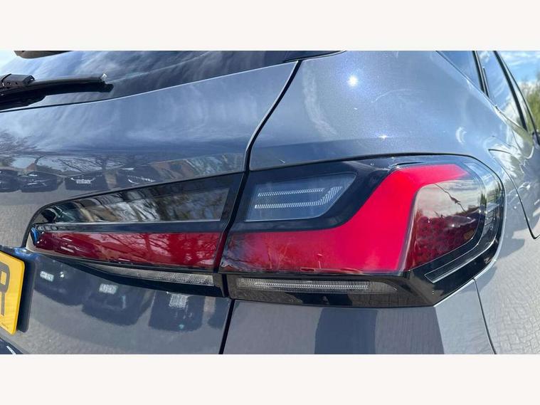 Active Guard, Attentiveness assist, Automatic powered tailgate, Automatic start/stop function, BMW Online services, BMW Operating system 9 with BMW Maps, real-time traffic information, in-car experiences, remote services and smartphone integration, BMW Teleservices, Brake pad wear indicator in front and rear, Condition based service, ConnectedDrive Services, Drive off assistant, Flat air vents on instrument panel in high gloss black, adjustable slats with elements in pearl chrome, iDrive controller, Instrument cluster with speedometer with miles per hour read out, tachometer and fuel gauge, Language version English, On board computer - average speed+fuel consumption, service interval, clock/date, odometer/trip meter, outside temperature display and ice warning, Parking assistant with active park distance control, reversing assistant, lateral parking aid and rear view camera, Servotronic variable electric power steering (EPS), Widescreen display, Wireless charging, Drive performance control with ECO PRO comfort + sport mode, Gear selector switch with toggle operation, M Adaptive suspension, Petrol Particulate Filter, Steptronic transmission with double clutch and gear shift paddles, 2x USB Type C ports in front centre console for charging and data transfer, 2x USB Type C ports in rear centre console for charging, DAB Digital radio, Welcome sound upon opening of the front driver or passenger door, Air inlet middle part on front apron in lines specific design with trim strip in satinised aluminium, Automatic headlights, Black rear bumper trim strip, BMW emblem, engine compartment lid and tailgate, Body colour roof mouldings, Body coloured door mirror caps, Contoured rear spoiler in vehicle colour with side aeroblades in black high-gloss, Driver side exterior mirror lighting with BMW logo projection, Dynamic brake lights, Electric adjustable heated door mirrors, Electric windows - front and rear, with open/close fingertip control, anti-trap facility and comfort closing, Folding door handles integrated flush with surface, Front and rear windscreen wipers with heated front washer nozzles, Front bumper cover with independent design in body colour with inserts in black high gloss, Front bumper design elements in satinised aluminium, Front door sill finishers aluminium inserts with M inscription, Front entry sills with aluminium inserts + BMW inscription, Front oramental grille with radiator grille bars in satinised aluminium, Heated rear window, Hidden exhaust pipe, High gloss shadow line, Home light, Key with M identification, LED Daytime running lights and parking lights with turn indicators, LED number plate light, LED third brake light in rear spoiler, M identification on sides, Manual headlight range control, Model inscription on right tailgate, Rain sensor, Rear bumper cover with independent design in body colour with inserts in black high gloss, Rear side wing doors, Shark fin antenna, Side sill covers with independent design in Body colour, Trailer stabilisation logic, Trims on front and rear bumper covers colour-coordinated with side window graphic, Visible VIN plate, Welcome lighting, Windscreen washer nozzle for rear view camera, 12V power socket in luggage compartment and front centre console, 12V socket in right side trim panel, 2 bag hooks in luggage compartment, 2 front reading lights, 2 open cup holders in front centre console, 3 seat bench in 2nd row, Ambient lighting front and rear, Automatic two zone climate control air conditioning, Bottle trays in all doors, Child seat ISOFIX attachment for two outer rear seats and front passenger seat with anchorage points, Driver and front passenger sports seats, Embellishers on steering wheel spokes in pearl chrome, Four grab handles integrated in roof lining, Front and rear door pockets, Front and rear footwell lighting, Front and rear side armrest integrated into door trim, Front centre console storage compartment, Front door exit lights, Front head restraints, Glovebox with light, Heated front seats, Height adjustable 3 rear head restraints, Interior door handle recess light on all doors, Luggage compartment lighting, M Anthracite headlining, M specific floor mats, M sport leather steering wheel, Manual adjustment of seat height, fore/aft position, seat depth, backrest tilt and head restraint height, Map pockets, Mechanical rear seats with fore/aft adjustment, Middle centre console storage compartment, Multi-function controls for steering wheel, One piece parcel shelf opens together with tailgate and removable, Rear cloth hooks, Single front passenger seat, Stainless steel pedals, Steering wheel column manual adjustment, Storage compartment lighting in centre console and storage tray in centre stack, Storage compartment net in left side trim panel, Storage compartment with folding cover under centre console armrest cushion, Sunvisors with illuminated vanity mirrors, 3 point seatbelts on all seats, front pyrotechnic belt tensioners, stopper and belt force limiters, rear coded belt buckles, Airbag - Front driver and passenger, front and rear head, front side, curtain head protection, manual deactivation of front passenger airbag possible, Anti lock braking system (ABS) with brake assist, Automatic hold function, BMW emergency call, Brake drying, Braking readiness, Child proof locking system in rear door, Cornering brake control, Crash Sensor - activates hazard/interior lighting + unlocks doors, DSC - Dynamic Stability Control, Dynamic brake control, Dynamic Traction Control - DTC, Electromechanical parking brake, Energy recovery system, Front disc brakes, Integrated braking system, PC iBrake PostCrash approach control warning with light braking function, Rear disc brakes, Tyre pressure monitoring system, Warning triangle and first aid kit, Anti theft alarm system, Closing system with central locking, Drive away door locking, Engine immobiliser, Locking wheel bolts, Front centre console trim in high gloss black with my mode expressive, BM