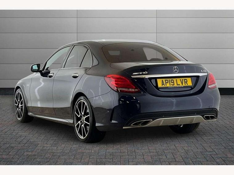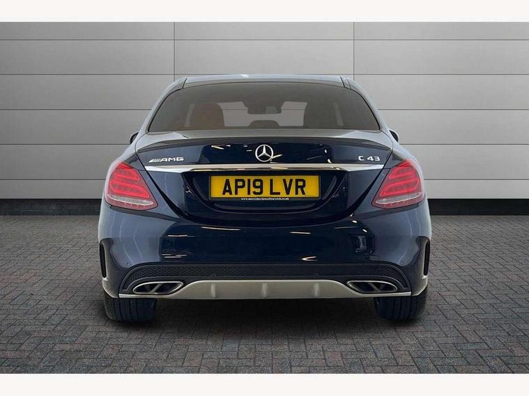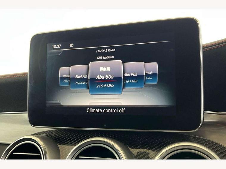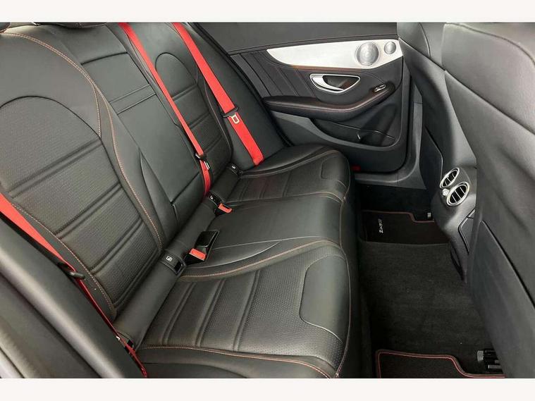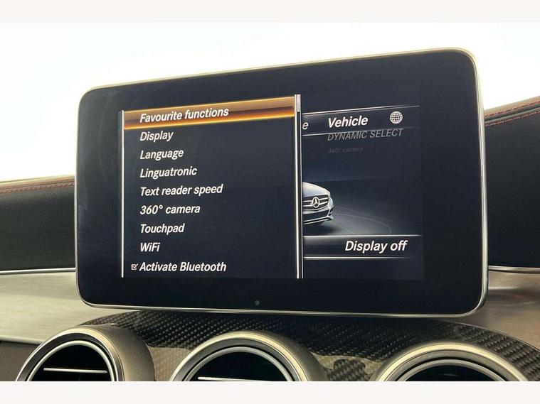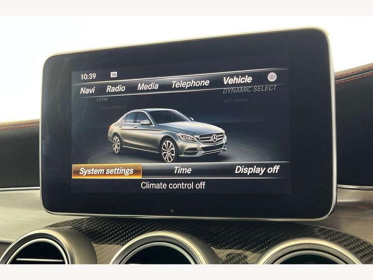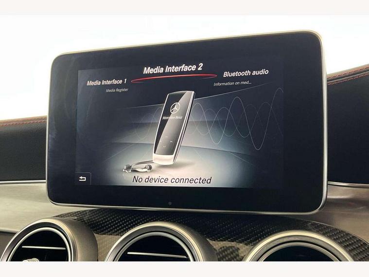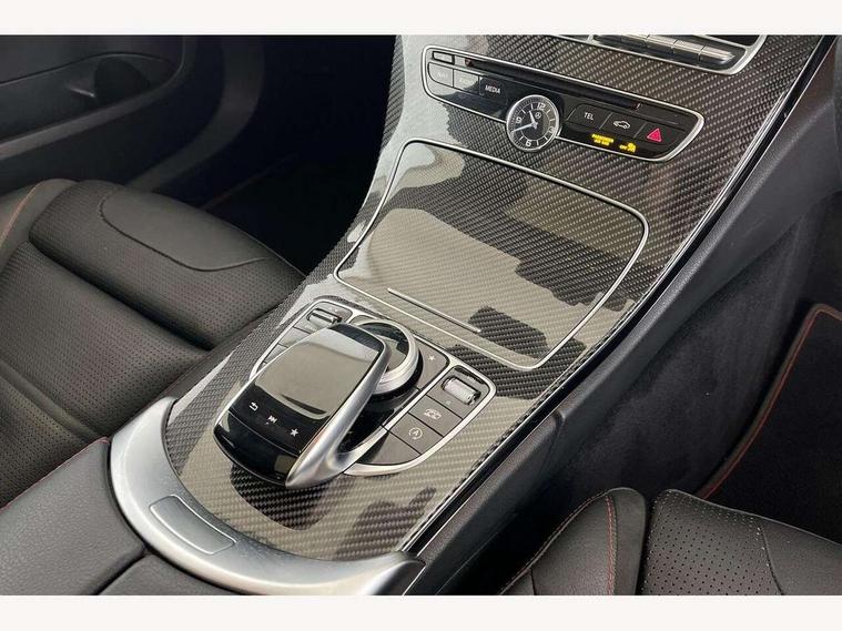 Active park assist with parktronic system, Analogue clock, Attention assist, Bluetooth system, Collision prevention assist, COMAND online nav with colour display, radio/CD/DVD/MP3, SD card, 10GB music, Emergency Call system, speed limit assist, linguatronic voice control, DYNAMIC SELECT with a choice of driving modes (ECO, Comfort, Sport, Sport+ and Individual), Multi function trip computer, Outside temperature gauge, Remote boot release, Service indicator (ASSYST PLUS), Speed sensitive steering, AMG Ride Control sports suspension, 2 USB ports in centre console, Burmester surround sound system, DAB Digital radio, SD card slot, Adaptive brake lights, AMG body styling, Body coloured bumpers, Chrome pins diamond radiator grille with integrated stars, Electric front sliding and fixed rear panoramic glass sunroof, Electric windows one touch open/close, Electrically adjustable and heated door mirrors, Green tinted glass, LED daytime running lights, LED tail lights, Rain sensor windscreen wipers, 2 cupholders in front centre console, 3 spoke flat bottomed nappa leather sport steering wheel, Advanced multicolour ambient light and LED interior light, AMG floor mats with red stitching, Auto Mercedes-Benz child seat recognition sensor, Dual zone automatic climate control, Front and rear head restraints, Front centre armrest with storage compartment, Gearshift paddles, Heated front seats, Illuminated glovebox, Lumbar support, Multifunction steering wheel, Rear top tether child seat ISOFIX attachment, Sports pedals with stainless steel surfaces and rubber studs, Sunvisors with illuminated vanity mirrors, Lighting pack - C class, Memory pack - C Class, Mirror pack - C Class, Seat comfort pack - C Class, Stowage space pack - C Class, 3 rear 3 point seatbelts, ABS with Brake Assist, Active bonnet, Adaptive brake system, Child proof door locks, Drivers knee airbag, Dual stage driver/passenger airbags, Electronic parking brake, ESP with ASR, Front passenger seat occupancy sensor, Front side airbags, Hill start assist, Rear seatbelt warning indicator, Red seat belts, Tyre pressure monitoring system, Warning triangle and first aid kit, Window airbags, Alarm system/interior protection/immobiliser, Chrome surround in electric key, Keyless entry and keyless start, Remote central locking, Artico upholstered dashboard with contrast stitching, Tyre inflation kit,