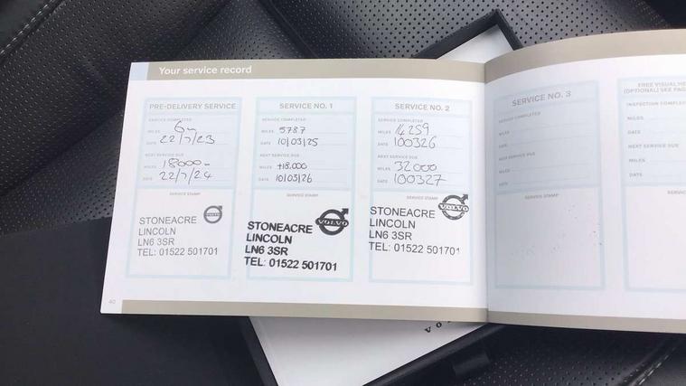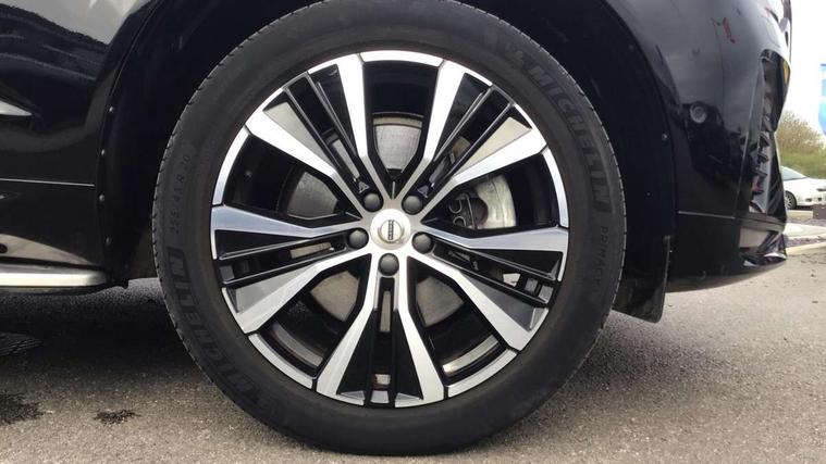12.3" Progressive Driver Display, 360 degree surround view parking camera with side proximity sensors, 9" centre console touch screen, Adjustable steering wheel force, Apple carplay (wired), Bluetooth handsfree system, Driver alert control with lane keeping aid, Driver assistance (pilot assist and adaptive cruise control), Driver awareness - Blind spot information system with steer assist, cross traffic alert with autobrake and rear collision warning and mitigation, Emergency services call system, Front and rear park assist, Google Automotive Services, Head up display in windscreen includes road sign information, distance alert, set speed and navigation, Oncoming Lane Mitigation, PAS, Service interval indicator, Speed limiter, Speed sensitive steering, Trip computer, Volvo on call with App, Wireless/Inductive Mobile Phone Charging, 8 speed automatic transmission with start/stop + manual change functions, Active four-C chassis + four corner adaptive damper with electronic rear air suspension, DAB Digital radio, Premium sound by Bowers and Wilkins, dirac live, dolby pro logic II surround sound, 14 speakers/1100W output and fresh air subwoofer, Steering wheel remote infotainment controls, Active bending headlights with adaptive shadow technology, Adaptive brake lights with high level LED brake lights, Auto dimming interior + exterior mirrors, Automatic headlight levelling system, Automatic LED Headlights + Active high beam incorporating daytime running lights, Dark tinted windows for rear side windows and cargo area, Electric adjustable/heated/auto power folding door mirrors, Electric front+rear windows, Front aluminium tread plates, Headlight cleaning system, Heated front windscreen, High gloss black door mirrors and window surround, High gloss black front and rear bumper decoratives, High gloss black mesh front grille with high gloss black surround, Home safe and approach lighting, Integrated roof rails in high gloss black, LED front fog lights with static cornering light function, Power glass tilt and slide panoramic sunroof with sun curtain, Puddle lights, Rain sensor with automatic windscreen wiper activation, Rear side wing doors, Rear wiper, Roof antenna, Roof spoiler, Tinted windscreen, Visible VIN plate, 12V socket in front tunnel console and luggage compartment, 3 seat bench in 2nd row, 4 Zone electronic climate control, A-pillar parking ticket holder, Air purifier particulate matter (PM) 2.5 filter, B Pillar ventilation, Bright metal luggage threshold, Centre console cupholders and storage, Charcoal floor mats, Front and rear courtesy lights, Front and rear door pocket illumination, Front cupholder illumination, Front footwell illumination, Front reading lights, Front seat cushion extensions, Glovebox compartment with illumination, Head restraints for all seats, Heated front seats, Heated steering wheel, Height/reach adjustable steering column, Illuminated luggage compartment, Illuminated vanity mirrors + ticket holder, ISOFIX attachment on outer rear seats, Load cover, Load protection net, Multi directional lumbar support, Power driver seat with memory + exterior mirrors memory, Power folding rear headrests, Power passenger seat with memory, Rear armrest with cupholder, Rear footwell and front and rear side step illumination, Rear seat concealed storage, Single front passenger seat, Tailgate illumination and ambient door lighting, Underfloor stowage compartment, Versatile split folding rear seat - 60/40, 5 three point seatbelts, City safety with steering support with Pedestrian + cyclist + front collision warning with full auto brake and rear auto brake, Drivers knee airbag, Dual stage driver/passenger airbags, Electronic parking brake with auto hold, First aid kit, Front seats SIPS airbags, Hill descent control - Off-road drive mode, Hill start assist, IC (Inflatable Curtains) - Full Length, Passenger airbag cut-off device, Power child locks on rear doors, Run off Road Mitigation, Run off Road Protection, Seatbelt reminder and pretensioners, SIPS (Side Impact Protection System), Slippery road and hazard light alert, Stability and Traction Control with Spin control, Engine Drag Control and Corner Traction Control, Tyre pressure monitoring system, Vehicle deceleration control with Anti-lock Brake System, Electronic Brake Distribution and Emergency Brake Assist, Warning triangle, WHIPS whiplash protection system - front, Anti-theft alarm including immobiliser/volume sensor + level sensor, Care key with user defined top speed, Key integrated remote control central locking + fuel flap with deadlocking system and auto open/close power windows, Keyless Drive (includes Keyless Entry and Keyless Start) with Handsfree Tailgate Opening/Closing, Locking wheel nuts, Private locking for tailgate, Tailored instrument panel with contrast stitching,
