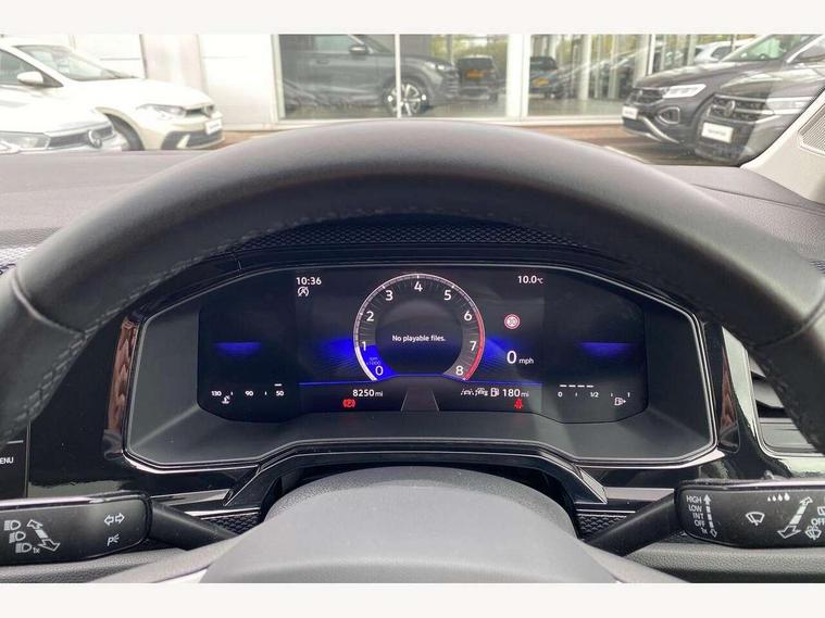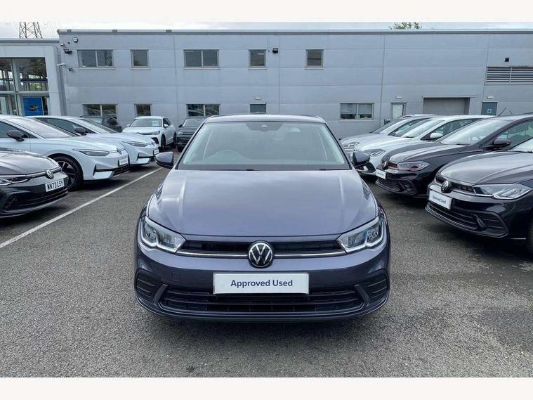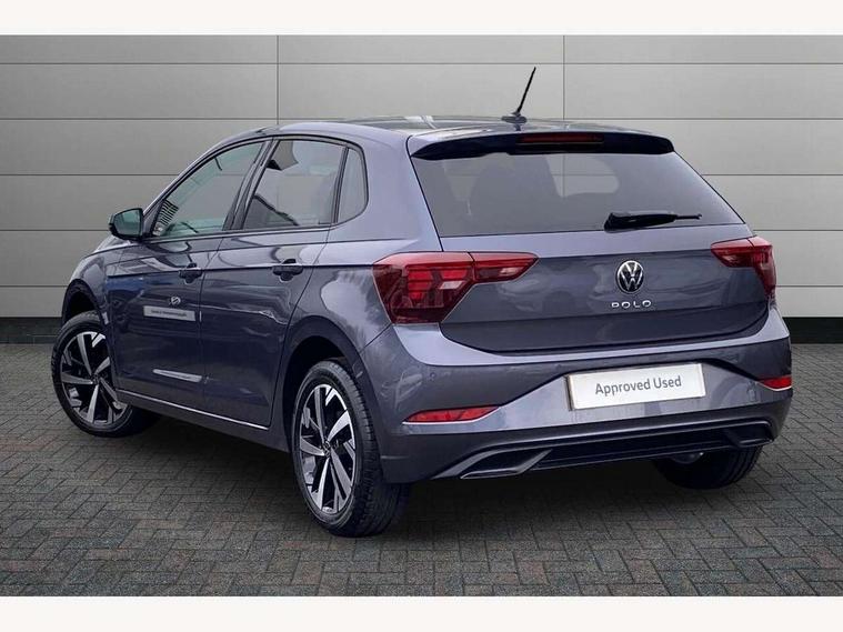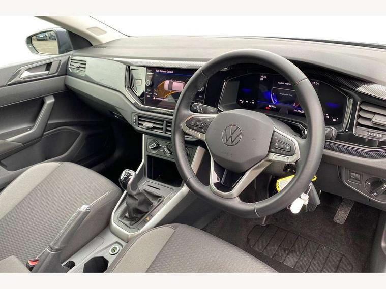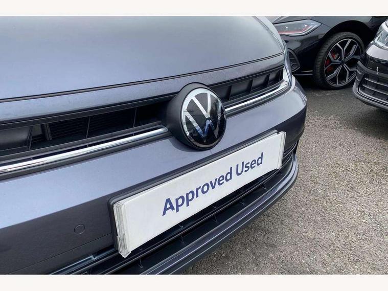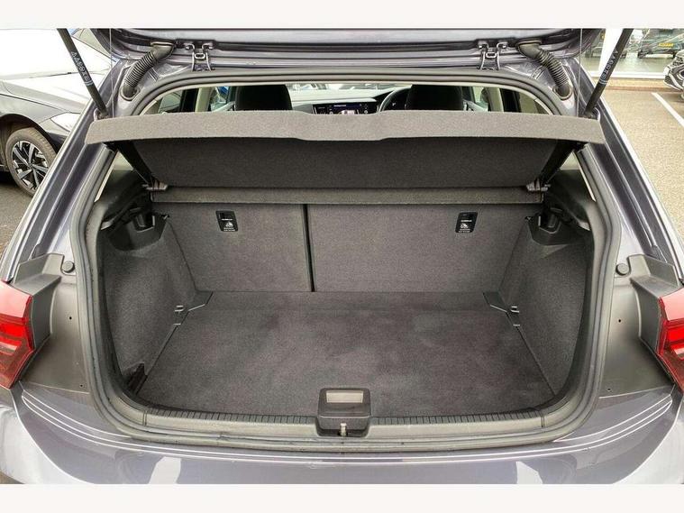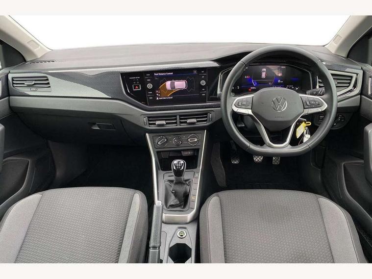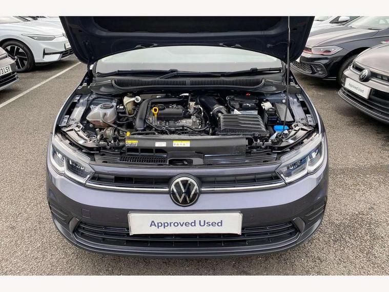 Adaptive cruise control without follow-to-stop and speed limiter, Advanced driver attention and drowsiness monitor, Bluetooth mobile phone interface, Dynamic road sign display, Emergency call service, Multifunction front facing camera for distance control, Park distance control, Power assisted speed sensitive steering, Preparation for navigation system with media and internet package, Preparation for We connect and We connect plus, Rear view camera, Speedo and rev counter, electronic odometer, trip, service interval display and exterior temperature gauge, Standard rear axle, Travel Assist - Lane keeping system and traffic jam assist, Travel assist including emergency assist, Trip computer, Warning signal and warning light for front and rear seatbelts not fastened, Washer fluid level indicator, Wireless app connect, Front wheel drive, Rear shock absorpion, Start-stop system with battery regeneration (recuperation - energy recovery during braking), DAB Digital radio, Diversity antenna for FM reception, Front and rear 6 speakers, Automatic dimming interior rear view mirror, Automatic headlight control with LED separate daytime running lights with coming/leaving home function, Body colour bumpers with chrome inserts, Body colour door handles, Body colour door mirrors, Electric front windows, Engine badge deletion, Headlight range adjustment, Heat insulating and laminated safety glass windshield, LED Headlights, LED rear combination lamps, Power folding adjustable/heated exterior mirrors and front passenger exterior mirror lowering function, Rain sensor, Rear electric windows, Rear fog light, Rear side wing doors, Rear tinted glass from B-pillar backwards approx 65% tinted, Rear windscreen washer and wiper with interval delay, Third brake light, 12V power socket in centre console, 2 front and 2 rear reading lights with switch off delay and dimmer, 2 USB-C ports in the front, 2 USB-C charging sockets on the center console in the rear, 3 rear head restraints, 60/40 split folding rear seat and rear seat bench not split, Ceramique roof lining, Chrome plated radiator grille inserts, air vent surrounds and light switch surrounds, Door and side trim panel, Driver and front passenger seat height adjustment, Driver/passenger sunvisors with illuminated vanity mirrors, Front centre armrest, Front seat backrest storage pockets, Front standard seats, Handbrake lever handle in leather, Hartley/Thomas cloth upholstery, Headliner in recycled material, Isofix child seat preparation easy-fit (for two outer rear seats, and front passenger seat) compatible with I-size, Leather trimmed gear knob, Luggage compartment cover, Luggage compartment lighting, Removable luggage compartment floor, Single front passenger seat, Standard climatic zones, Standard pedal cluster, Three spoke leather wrapped multifunction steering wheel, Light and vision pack - Polo, 3 point height adj front seatbelts + pretensioners, 3 point seat belt for centre rear seat, 3 point seatbelts, outer rear with ECE lable, ABS, Driver and front passenger airbag with front passenger airbag deactivation, Drivers and front passengers safety optimised head restraints, ESC (Electronic stability control) + EDL (Electronic Differntial lock) and ASR (Traction control), Extended and predictive pedestrian/ cyclist protection, Front assist with autonomous emergency braking (for Adaptive Cruise Control ACC up to 130 mph), Front curtain and side airbags with center airbag, Front disc brakes, Hill hold control, Manual child lock in rear doors, Rear drum brakes, Single tone horn, Tyre pressure loss indicator, Alarm with interior protection, Anti-theft alarm system with interior monitoring, backup horn, and towing protection, Anti-theft wheel bolts, Electronic engine immobiliser, Lava stone black gloss/matt decorative inserts in dash and front door panels, 16" Torsby alloy wheels, Low rolling resistance tyres,