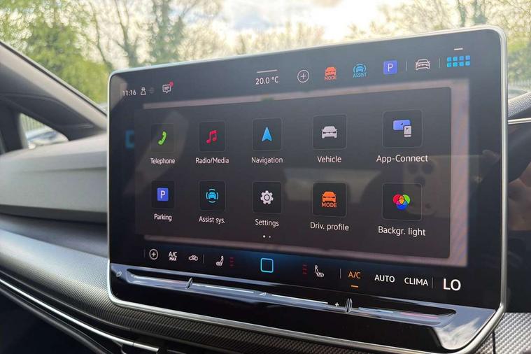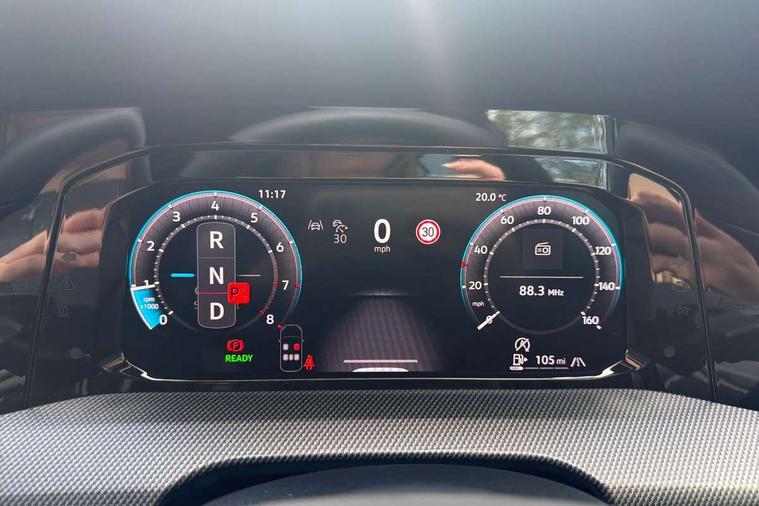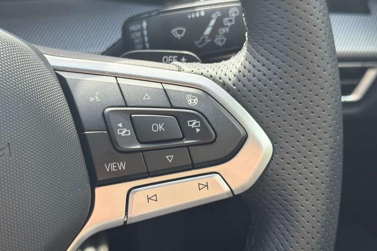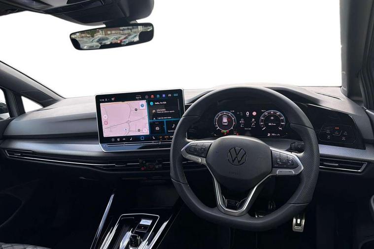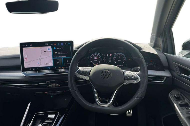 Activated carbon canister, Adaptive cruise control (ACC), Advanced driver attention and drowsiness monitor, Dynamic road sign display, Dynamic steering, E-Sim card for online connectivity, eCall emergency call system, Multi-color Digital cockpit pro, selection of different info profile possible, Multifunction front facing camera for distance control, Navigation system, Oncoming vehicle braking when turning including swerve support, Speed limiter, Speedo, rev counter, electronic odometer, trip, service interval display, exterior temperature and fuel gauge, Traffic jam assist, Voice enhancer and voice control, Warning signal and warning light for front and rear seatbelts not fastened, We connect plus preparation, We connect preparation, Wireless app connect, Hybrid propulsion system, Petrol Particulate Filter, Start-stop system with battery regeneration (recuperation - energy recovery during braking), XDS electronic differential lock for improved traction and handling, 2 USB C ports in front, 2 USB charging sockets on the centre console in the rear charging capacity upto 45W, Digital radio reception (DAB), Diversity antenna for FM reception, Gaming platform via car app, Infotainment system with 12.9" display, Mobile phone interface with inductive charging feature, 3rd brake light, Auto dimming rear view mirror, Automatic headlamp activation with Coming home and Leaving home feature, Body colored bumpers in R-Line style, Body colour door handles, Exterior ambient lighting, Exterior mirrors convex on the left and aspherical on the right, Front and rear electric windows, Heat insulating windshield made of laminated glass, LED separate daytime running light, Rain sensor, Rear exhaust tailpipe, Rear fog light on one side and reversing lights on both sides, Rear side wing doors, Rear windscreen washer and wiper with interval delay, Remote electrically foldable door mirrors, puddle lights and reverse activated passenger's door mirror, Volkswagen logo in front, illuminated lighting animation with wake up/goodbye scenario and illuminated door handles, Welcome light with surround lighting, 12V socket in front centre console, 12V socket in luggage compartment, 3 rear head restraints, 3 seat bench in 2nd row, Ambient lighting with 30 colour including LED light unit in front footwell with selectable light colour, Black roof lining, Brushed stainless steel pedals, Chrome plated radiator grille inserts, air vent surrounds and light switch surrounds, Door insert, side trim panel and arm support in leatherette, Front + rear black carpet mats, Front centre armrest, Front seat lumbar support adjuster, Integrated front head restraints, ISOFIX anchors for child seats on outer rear bench seats and on front passanger seat compatible for i-Size, Luggage compartment lighting, Manual height adjustable front passenger seat, Manually height adjustable driver seat, Plastic gear knob, Premium sports seats in front, Rear cupholder and loadthough, Sardegna cloth upholstery with front and outer rear seats Art Velour inner sides of bolsters, Single front passenger seat, Split folding backrest with centre armrest and unsplit rear seat bench, Sun visors with illuminated vanity mirrors, Titanium black instrument panel, Black exterior Styling package with Matrix LED headlights - Golf, Winter package - Golf DSG Estate/Hatchback, 3 point height adj front seatbelts + pretensioners, 3 rear three point seatbelts, ABS, Autonomous emergency braking front assist with pedestrian and cyclist monitoring, Child locks on rear doors, Driver and front passenger airbag with front passenger airbag deactivation, Electronic parking brake with auto hold, ESC (Electronic Stability Control), Extended pedestrian protection measures, Hill start assist, Rear disc brakes, Two tone horn, Tyre pressure loss indicator, Volkswagen roadside assistance, Anti theft wheel bolts, Preparation for alcohol interlock, Decorative inserts carbon grey for dashboard and front door trim panels, 18" Leeds alloy wheels, Tool kit for tyre mobility set, Tyre mobility kit Includes 12V compressor and tyre sealant,