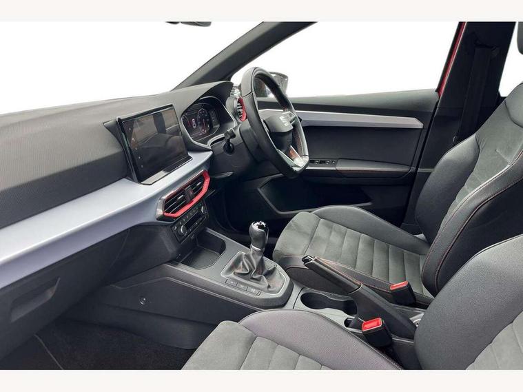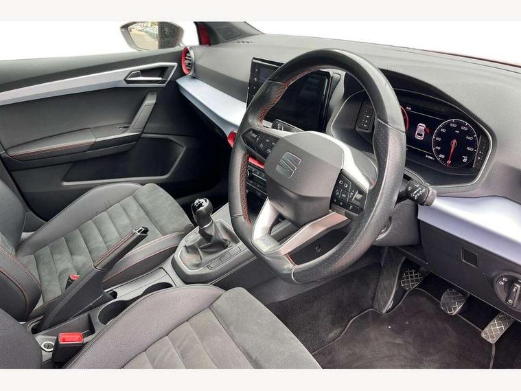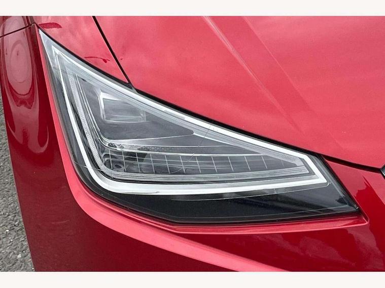 'Lights On' Reminder warning buzzer, 9.2" touchscreen navigation system with type C USB socket, Voice control and DAB/AM/FM radio, Auto start and stop system, Bluetooth audio streaming with handsfree system, Digital clock, Digital cockpit, E-call, Full link smartphone integration with mirror link, wireless apple carplay, Google android auto + USB Type C cable for apple and android devices, Lane assist, Low fuel warning light, Outside temperature gauge, Power Steering, Seat connect with safety, service, remote and online, SEAT drive profiles and ECO function, SEAT logo boot release, Speed limiter, Trip computer, Sports suspension, Auxiliary input socket, Radio/MP3 player, SD card slot, Steering wheel mounted controls, Anti theft roof antenna, Auto dimming rear view mirror, Automatic rain sensing wipers, Black door mirrors, Body colour bumpers, Body colour door handles, Brilliant black window surrounds, Dark tinted rear windows, Electric adjustable/heated/folding door mirrors, Electric front windows, Electric headlight adjustment, Electric rear windows, Front/rear fog lights, FULL LED automatic headlights with dynamic headlight range control, coming and leaving home, LED daytime running lights, LED tail lights, Rear side wing doors, Rear spoiler with FR twin exhausts, Rear wiper, Third brake light, 3 seat bench in 2nd row, 60/40 split folding rear seat, Ambient interior lighting, Chrome detailing and black headlining, Comfort seats, Dual zone climate control with combination filter, Front courtesy lights, Front cupholders x 2, Front reading lights, Gear shift indicator, Glovebox, Height adjustable front and rear headrests (five), Height adjustable front seats, Height/reach adjust steering wheel, Illuminated air vent surrounds, Illuminated boot, Instrument lighting with brightness control, Isofix, Leather multifunction flat bottomed sports steering wheel, Microsuede cloth upholstery, Passenger sunvisor, Single front passenger seat, Storage pockets on back of front seats, Sunvisors with mirror and driver side card holder, 3 point seatbelts on all 3 rear seats, ABS, Active front headrests, Child locks on rear doors, Electronic stability control, Energy recovery system, Front assist forward collision warning and autonomous emergency braking, Front driver and passenger side airbags with curtain airbag and front passenger airbag deactivation, Hill hold control, Multi-Collision braking, Seat belt reminder for front and rear seats, Tiredness recognition system, Tyre pressure monitoring system, Electronic engine immobiliser, Locking wheel bolts, Perimeter alarm and interior monitoring with backup horn and tow away protection, Remote central locking + deadlocks, 18" Performance machined alloy wheels in black and grey,