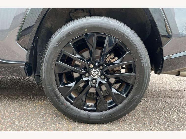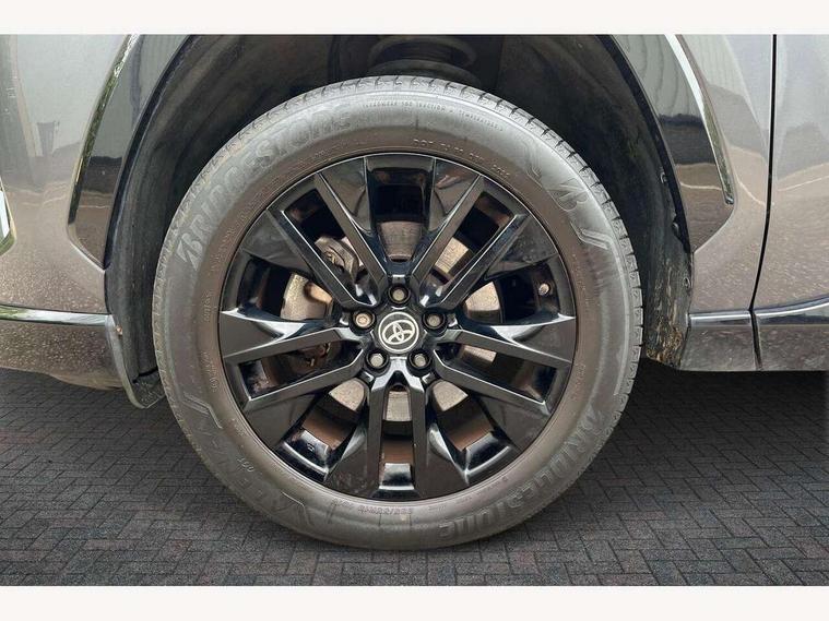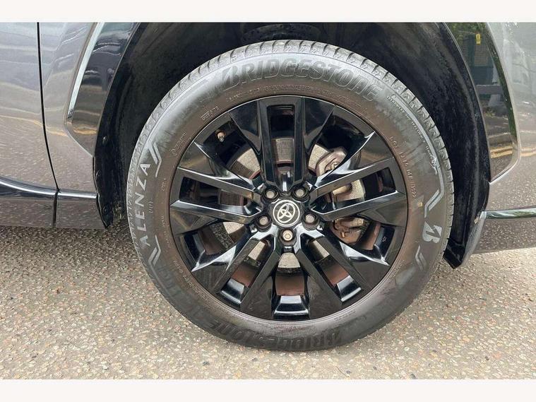 7" TFT multi information display, Analog tachometer, Apple car play and Android auto, Blind spot monitoring with rear cross traffic alert, Bluetooth system, Cyclist Detection, Drive mode selector, eCall emergency call system, ECO-driving indicator, Electric power steering, EV audible alert, Front parking sensors, Full range intelligent adaptive cruise control, Hybrid system indicator, Lane departure warning system, Lane trace assist, Lights on warning, Memory on adjustable speed limiter, MirrorLink, My T Connected services, Night Time Pedestrian Detection, Power boot opening and closing, Push button start, Rear parking camera, Rear parking sensors, Remote boot door release in cabin, Remote boot door release in key, Road sign assist - RSA, Touch 2 Go navigation system including 3D maps and voice control, Traffic sign recognition, Trip computer, Voice control system, Vehicle Stability Control (VSC), 6 speakers, 8" Multimedia display touch screen, Auxiliary socket for external MP3 player, DAB audio, Toyota touch media system, USB connection, Adaptive automatic high beam, Automatic headlamp levelling, Automatic headlights, Automatic wipers, Automatically retractable door mirrors, Black rear spoiler, Black roof rails, Black Shark-fin antenna, Body colour door handles, Door mirror puddle lights, Dual exhaust pipes, Electric adjustable door mirrors, Electrochromatic rear view mirror, Emergency brake-light signal (EBS), Follow me home headlights, Front fog lights, Front wipers with variable intermittent facility, Glass black protection moulding on side doors, Gloss black door mirrors, Gloss black front and rear bumper, Heated door mirrors, LED daytime running lights, LED High mounted stop lamp, LED rear combination lights, Meshed upper front grille, Power front windows, Power rear windows, Privacy glass, Projector LED headlights, Rear screen wiper - intermittent, Rear side wing doors, Rear windscreen defogger, Rear wing door, Silver front under-run, Silver rear under-run, Trailer Sway Control, Turning signal integrated indicators in door mirrors, 12 volt front socket, 3 rear headrests, 3 seat bench in 2nd row, 60/40 split fold rear seat back, Black roof lining, Boot light, Clean air filter, Driver and front passenger personal light, Driver and front passenger Whiplash Injury Lessening seats, Driver and passenger sunvisors with illuminated vanity mirrors, Dual sided deck board in boot, Dual zone automatic air conditioning, Dynamic sports seats, Floor mats, Folding rear centre armrest, Front and rear bottle holders, Front centre armrest, Front footwell lights, Front headrests, Front passenger seat, Front seat and rear pockets, Front/rear roof mounted assist grips, Heated driver and front passenger seats, Illuminated entry system, Isofix child seat preparation, Leather gear shift with chrome surround, Light blue ambient lighting on front cupholders and open tray, Luggage area tonneau cover, Manual telescopic and tilt 3-spoke leather steering wheel with Chrome insert, Manually reclining and sliding front passenger seat, Multimedia switches on steering wheel, Pollen filter, Power height-adjustable sliding reclining and lumbar support for driver seat, Rear coat hooks, Rear door armrests, Rear passenger air vents, Rear view display in display audio screen with dynamic guide lines, Reclining rear seats, Satin chrome interior door handles, Sunglasses holder, Synthetic leather upholstery, Telephone and voice recognition switches on steering wheel, 3x3 point rear seatbelts, ABS/EBD, Acoustic vehicle alerting system, Adjustable front driver and passenger seat belt extender, Brake assist function, Brake hold function, Child proof door locks, Collision mitigation braking system, Driver/Front Passenger airbags, Driver/front passenger side airbags, Drivers knee airbag, Electronic parking brake, Electronic Stability Programme (ESP), Front and rear curtain airbags, Front and rear seatbelt reminder, Front passenger airbag detector, Hill start assist, Passenger airbag cut-off device, Pedestrian detection, Pre collision system, Seatbelt pretensioners with load limiters, Toyota safety sense, Traction control, Tyre pressure warning, Glass-breaking alarm sensors, Immobiliser, Intrusion alarm, Light - on and Key in reminder, Motion sensor alarm, Remote central locking, Smart entry + Smart start, Speed sensitive auto door locking, Tilt detection sensors, Piano black centre console with silver insert, Soft-touch black lower dashboard, Soft-touch black upper dashboard with silver insert, 19" 10 spoke black alloy wheels, Full size spare wheel,