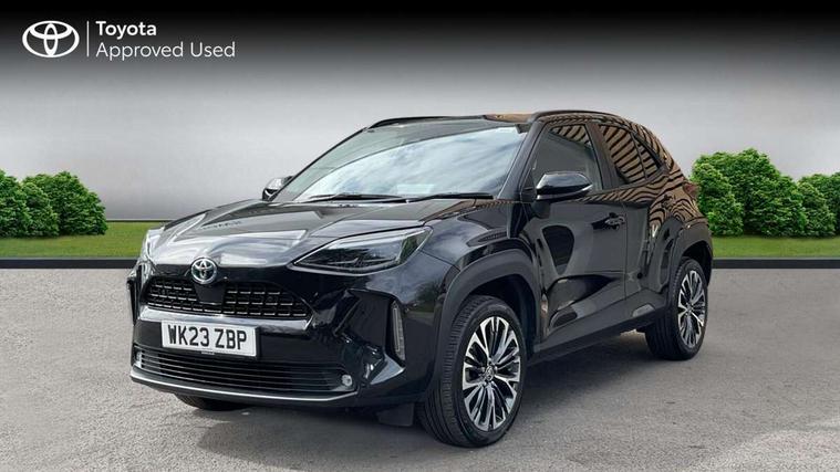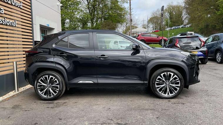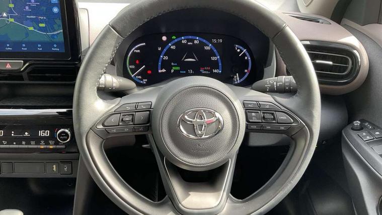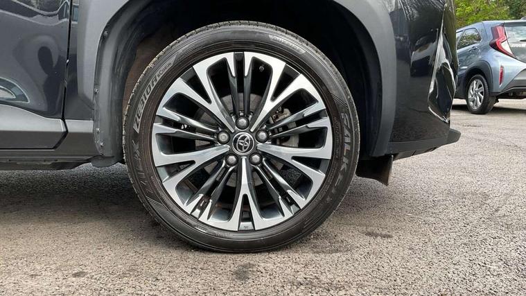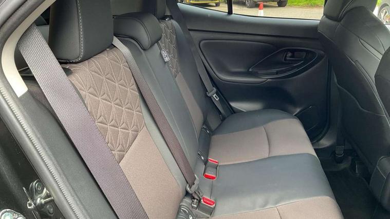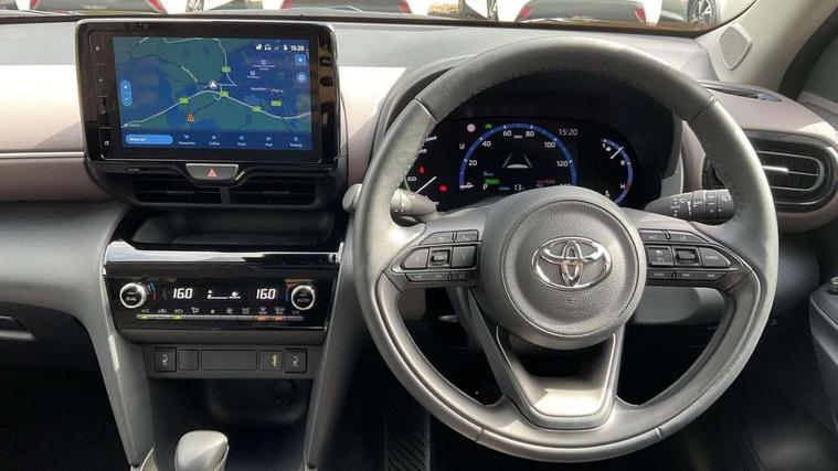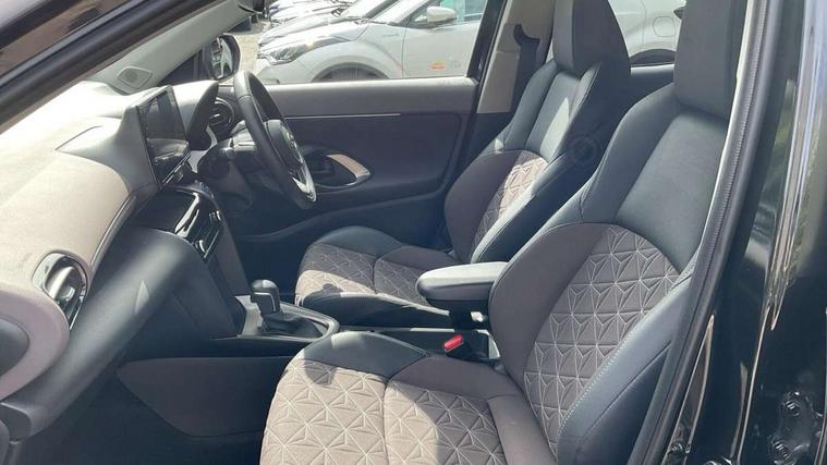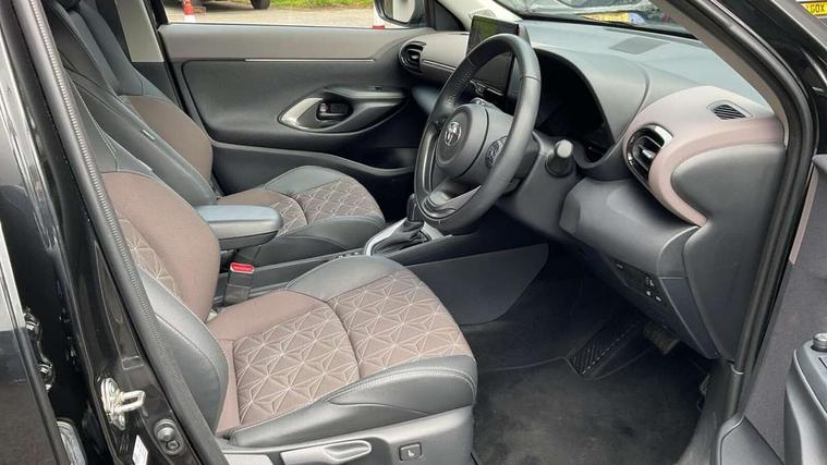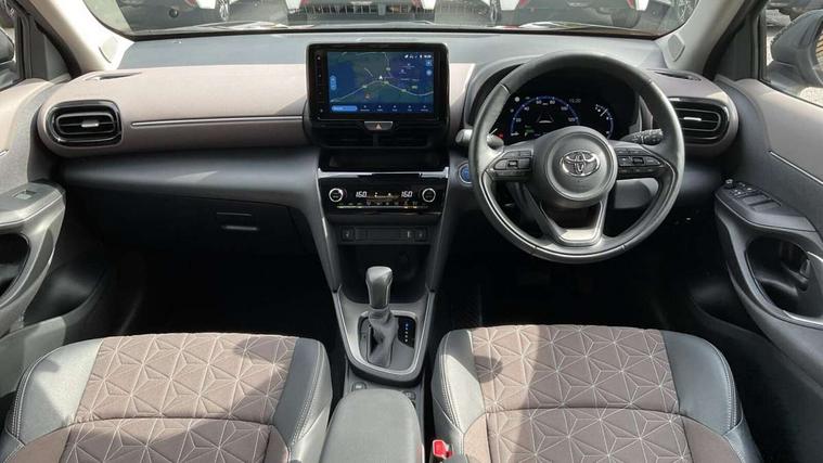 7" Multi information display screen, Adjustable speed limiter, Bluetooth connectivity, Driver attention alert system, eCall emergency system, Electric power steering, Full range intelligent adaptive cruise control, Hybrid system indicator, Key reminder warning, Lane trace assist, Multimedia, audio, telephone and voice recognition switches on steering wheel, My T Connected services, Pre-collision system enhanced with emergency steering assist, Reversing camera, Road sign assist - RSA, Steering assisted vehicle stability control, 6 speakers, DAB Digital radio, USB connection, 3rd brake light, Acoustic windscreen glass, Aluminium roof rails, Anti-jam protection on power windows, Auto high beam [AHB] with on/off switch, Automatic headlights, Automatically retractable door mirrors, Black lower front grille, Black Shark-fin antenna, Black wheel arch mouldings, Body colour door handles, Body colour front bumper, Body colour rear bumper, Dark chrome plated insert on upper front grille, Electric adjustable heated door mirrors, Electrochromatic auto dimming rear view mirror, Follow me home headlights, Front and rear electric windows with auto up/down function, Front intermittent wipers, Gloss black upper front grille, Headlight cut off reminder, Indicators integrated on door mirrors, Intermittent rear wiper, Kick activated power back door, LED daytime running lights guide, LED front fog lights, LED front light guide, LED Indicators, LED projector headlights, LED rear light guide, Manual headlight levelling, Noise reduction layer on windscreen, Privacy glass, Rain sensor, Rear LED lights with sequential indicators, Rear side wing doors, Rear spoiler, Rear window defogger, 12v power outlet - front, 12V power point in boot, 2x Rear coat hooks, 3 seat bench in 2nd row, 3 spoke leather steering wheel, 40:20:40 split folding rear bench seat, Adjustable speed limiter switch on steering wheel, Boot light, Central armrest, Centre console in light blue ambent lighting, Driver and front passenger personal lights, Driver and passenger seatback pockets, Dual zone automatic air conditioning, Fabric door trim, Fabric seat with synthetic leather upholstery, Footwell in light blue ambient lighting, Front console box, Front cup holders, Front head restraints, Front sport seats, Glovebox, Grey roof lining, Heated driver and passenger seats, Heated steering wheel, Height adjustable driver's seat, Height adjustable front passenger seat, Hooks for luggage holding belts, Lane departure alert switch on steering control, Leather gearshift, Light blue ambient lighting on front doors, Light on driver and front passenger sun visor, Manual telescopic and tilting steering wheel, Mirror on driver and passenger sun visor, Nanoe-X air purifier, Pollen air filter, Power adjustable lumbar support on driver seat, Rear cup holders, Rear head restraints, Single front passenger seat, Soft tonneau cover, Storage box under boot floor, Advance safety pack - Yaris Cross, Tech pack - Yaris Cross, 3x3 point rear seat belts, ABS+EBD+Brake assist, Driver and passenger central airbags, Driver and passenger front airbags, Driver and passenger side airbags, Electronic parking brake, Emergency brake light system (EBS), Front seat belt reminder, Hill start assist control (HAC), ISOFIX child restraint system, Passenger airbag on/off switch, Pre-collision system with pedestrian and cyclist detection, Rear door child safety locks, Rear passenger side airbags, Rear seat belt reminder, Traction control, Tyre pressure warning system, Immobiliser, Intrusion alarm, Keyless smart entry with push button start, Power door locks, Power passenger window lock, Remote door lock, Tyre repair kit,