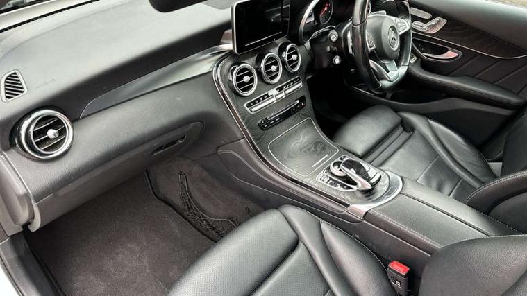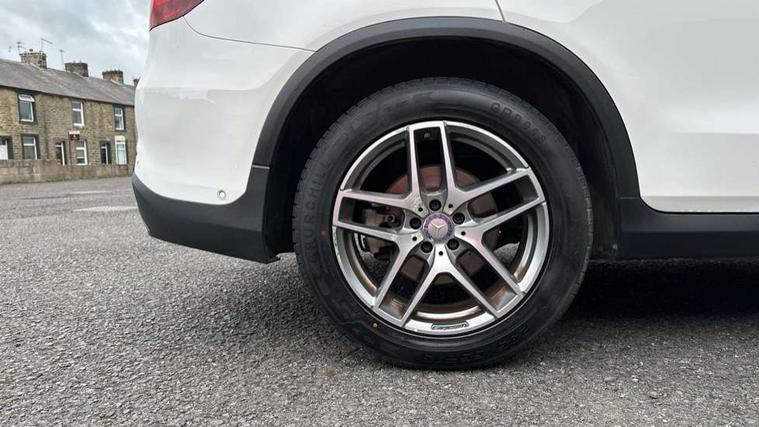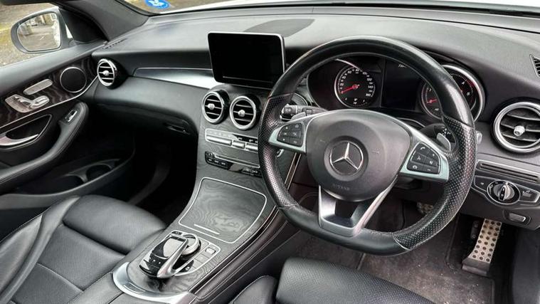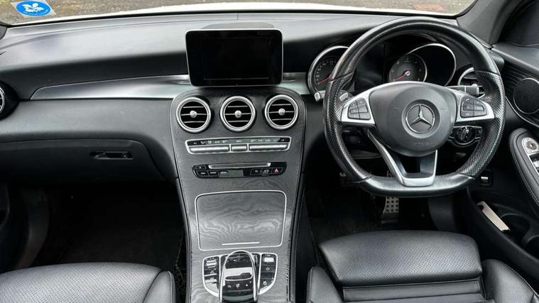 7" colour screen, Active park assist with parktronic system, Attention assist, Bluetooth interface for hands free telephone, Collision prevention assist, Crosswind Assist, Cruise control with speedtronic variable speed limiter, DYNAMIC SELECT with a choice of driving modes (ECO, Comfort, Sport, Sport+ and Individual), Garmin Map Pilot navigation system with SD card, touchpad and voice control, Multi function trip computer, Outside temperature gauge, Power opening/closing tailgate, Remote boot release, Speed sensitive steering, Diesel particulate filter, 5 speakers, DAB Digital radio, Frontbass loudspeakers, Mercedes Audio 20 radio/single CD + telephone keypad, USB connection, Adaptive brake lights, Aerodynamic rear spoiler, AMG bodystyling, Automatic headlights, Body coloured bumpers, Electric panoramic sunroof with sunblind, Electric windows one touch open/close, Electrically adjustable and heated door mirrors, Exhaust tailpipe finisher, Heated windscreen washers, LED daytime running lights, LED rear lamps, Privacy glass (to rear of B post), Rain sensor windscreen wipers, Range adjustable headlights, Rear wiper, Tinted glass all round, 2 cupholders in front centre console, 2 way rear head restraints, 3 spoke flat bottom AMG steering wheel in nappa leather, 4 way adjustable front head restraints, 4 way electric lumbar support for driver and front passenger, 40:20:40 split folding rear seats, AMG floor mats, AMG sports seats, Auto Mercedes-Benz child seat recognition sensor, Automatic climate control, Black roof lining, Dividing net - rear, Electric front seat height adjustment, Front door sills with Mercedes Benz lettering, Gearshift paddles, Heated front seats, Height/reach adjustable steering column, Illuminated glovebox, LED interior illumination, Multifunction steering wheel, Rear top tether child seat ISOFIX attachment, Sports pedals with stainless steel surfaces and rubber studs, Sunvisors with illuminated vanity mirrors, Easy-pack load compartment cover, Interior lighting pack - GLC, Memory pack - GLC, Mirror pack - GLC, Storage pack - GLC, 3 rear 3 point seatbelts, ABS with Brake Assist, Active bonnet, Adaptive brake system, Child proof door locks, Drivers knee airbag, Dual stage driver/passenger airbags, Electronic parking brake, ESP with ASR, Front and rear seatbelt reminder, Front passenger seat occupancy sensor, Front side airbags, Tyre pressure monitoring system, Warning triangle and first aid kit, Window airbags, Alarm system/interior protection/immobiliser, Automatic door locking, Keyless entry and keyless start, Remote central locking, Tyre inflation kit,