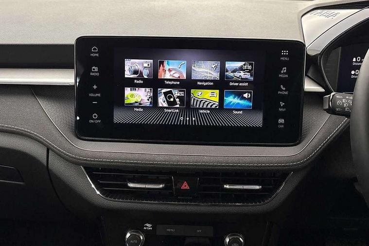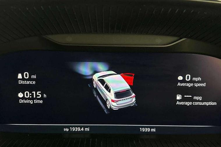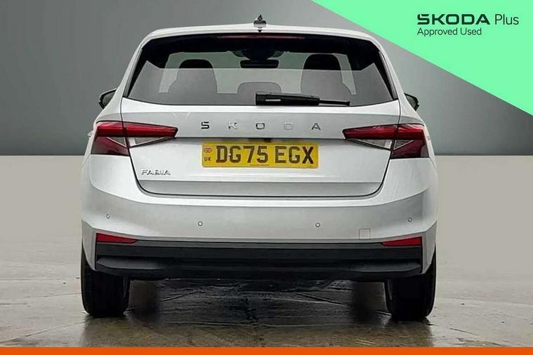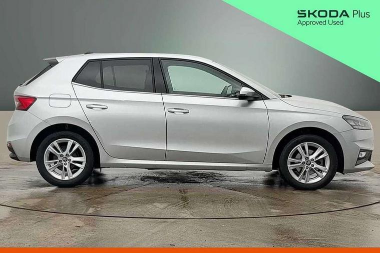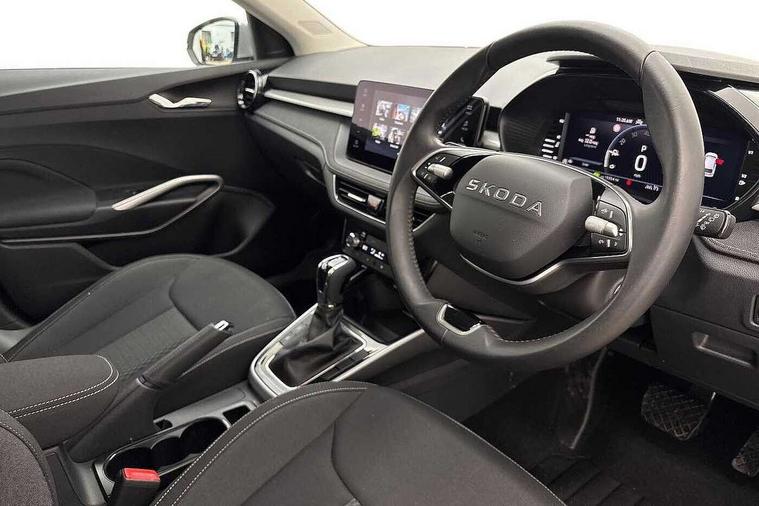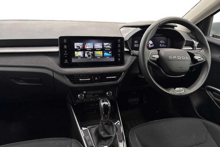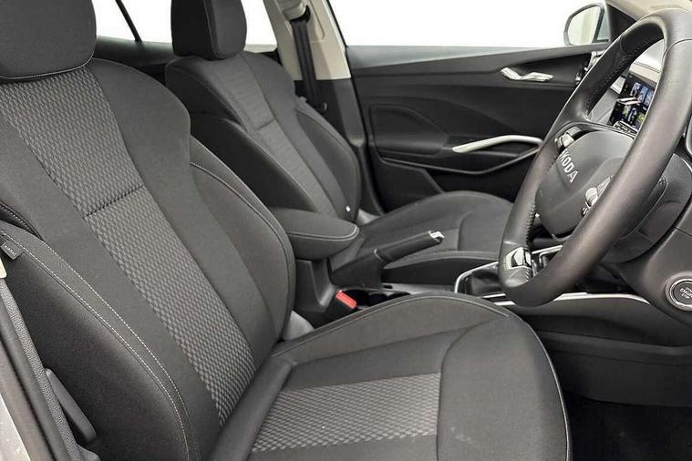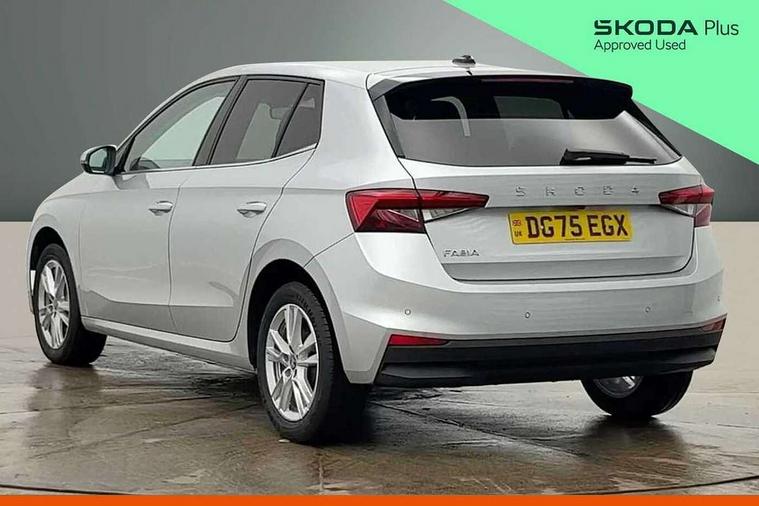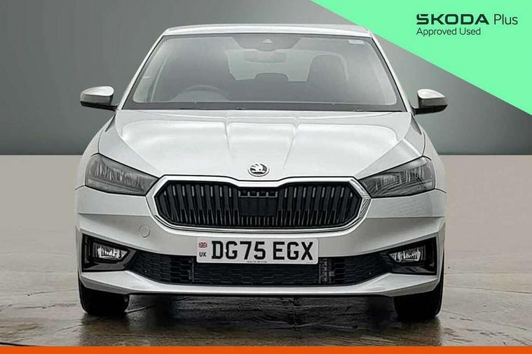 Advanced driver attention and drowsiness monitor, Bluetooth connection, Driver alert system, Electromechanical power steering, Exterior temperature gauge, Service interval indicator, Traffic sign recognition, Virtual cockpit with 10.25" colour display, Wireless SmartLink for Apple CarPlay and Android Auto, 6 Speakers (4 in front and 2 in rear), 9.2" colour display skoda navigation system with voice control and web radio, Auxiliary socket for external MP3 player, DAB digital radio reception, Auto dimming rear view mirror, Body colour door mirrors, Body coloured bumpers, Chrome window surround, Door mirror integrated indicators, Front and rear electric windows, Front window wiper intermittent control, Headlight range control - Automatic, Ice scraper in fuel cap, LED 3rd brake light, LED daytime running lights with coming and leaving home feature, LED rear lights, Privacy glass, Rear LED fog light, Rear side wing doors, Rear window wiper with washing nozzles, Roof mounted spoiler, SKODA tailgate lettering in chrome, Unique dark chrome design logo on alloy wheels, 2 LED reading lights in front and rear, 3 rear headrests, Backrest split and folding, Central console with fixed cup holder and storage box, Chrome handbrake release button, Comfort seats, Door sills with fabia badging, Dual zone air conditioning with climatronic electronic control, Fabric upholstery, Front centre armrest, Gearshift knob/handle in leather, Grain satin black interior door handles, Hand brake lever handle in leather, Height adjustable front headrests, Height adjustable front seats, Height adjustable steering wheel, ISOFIX and TopTether anchorage points to the outer rear seats, ISOFIX and TopTether on the front passenger seat, Luggage compartment lighting, Manually adjustable lumbar support in front seats, Pollen filter, Rear seat bench unsplit, Single front passenger seat, Skoda lettering on steering wheel, Storm grey headlining, Sun visors with mirror and airbag label on passenger side, Textile floor mats, Ticket holder, Umbrella in drivers door, Ambient lighting pack - Fabia Hatchback, 3-point height adjustable front seats belts with pretensioner and force limiter, Automatic warning lights in case of crash, Driver and passengers airbag with switch off function, e-Call+, ESC including ABS, MSR, ASR, EDS, HBA and XDS, Front and rear seat belt warning, FRONT ASSIST (AEB City and AEB Inter Urban), Front side airbags, Head airbags, Hill hold control, One tone horn, Pedestrian protection, Three rear 3-points safety seat belts with pretensioner and force limiter including stop function for outer rear seat belts, Tyre pressure monitoring system, Anti-theft alarm system including immobiliser, interior monitoring, backup horn, and towing protection, Central locking with radio remote control, interior controls, SAFE function and 2 foldable keys, Chrome edged air vents, Grain satin black central console cover, Metallic grey upper decorative trim, Satin black door and side trim panel in front, Textile microsuede grey lower decorative trim with art grey stitching, Anti-theft wheel bolts protection, Super-low rolling resistance tyres,