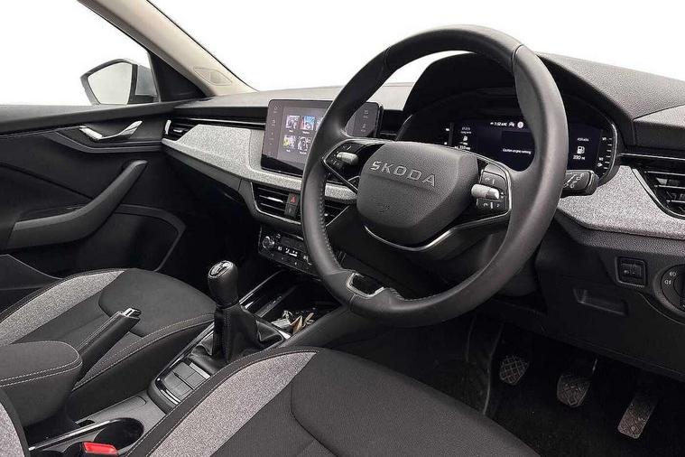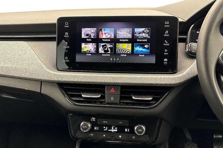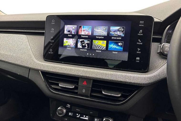 Advanced driver attention and drowsiness monitor, Bluetooth system, E-call, Front assist system, PAS, Rear parking sensors, Rear view camera, Service indicator, Speed limiter, Traffic sign recognition, Virtual cockpit with 10.25" display, Voice control system, Wireless smartlink, 4 USB C ports, 8 Speakers, 9.2" Skoda navigation display, DAB Digital radio, Auto dimming rear view mirror, Automatic headlight control with coming home and leaving home feature, Black roof rails, Body colour bumpers, Body colour door mirrors and handles, Chrome grille surround, Front and rear electric windows, Full LED headlights, Heated rear window, LED brake lights, LED daytime running lights, LED front turning lights, LED high beam, LED low beam, LED third brake light, Rear LED fog light, Rear side wing doors, Rear wiper, Ticket holder inside windscreen, 12V socket in luggage compartment, 3 seat bench in 2nd row, Black hotstamping, Cargo elements, Chrome inner door handles, Driver and passenger sun visors with vanity mirror, Dual zone climate control, Front and rear roof lights, Front centre armrest, Front head restraints, Glove compartment with illumination, Height adjustable driver seat, Height adjustable front passenger seat, Ice scraper, Inner circulation control with pollen filter, ISOFIX on front passenger seat, Isofix preparation for back seats, Krepp recycled decor inserts, Leather gearknob and handbrake lever, Loft cloth upholstery, Manual lumbar support for front seats, Net package and top tether hooks in boot space, Net under rear shelf, Overhead glasses storage compartment, Pocket on the back of both front seats include mobile phone pockets, Rake/reach adjustable steering wheel, Reading lights, Satin black door inserts, Single front passenger seat, Textile floor mats, Third rear headrest, Top tether for front passenger seat, Umbrella in driver's door, 3x3 point rear seatbelts, Airbags - driver and front passenger, Disc brakes, ESP, Extended and predictive pedestrian/cyclist protection, Front passenger airbag deactivation switch, Front side airbags with curtain airbags, Hill hold control, Manual leather parking brake, Manual rear child locks, One tone horn, Seatbelt reminder for driver an co-driver, Traction control, Tyre pressure monitor, Anti-theft alarm system with interior monitoring, backup horn, towing protection and remote central locking with SAFE system, Anti-theft wheel bolts, Electronic engine immobilizer,