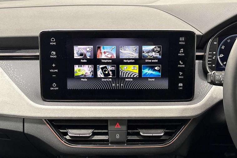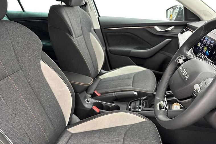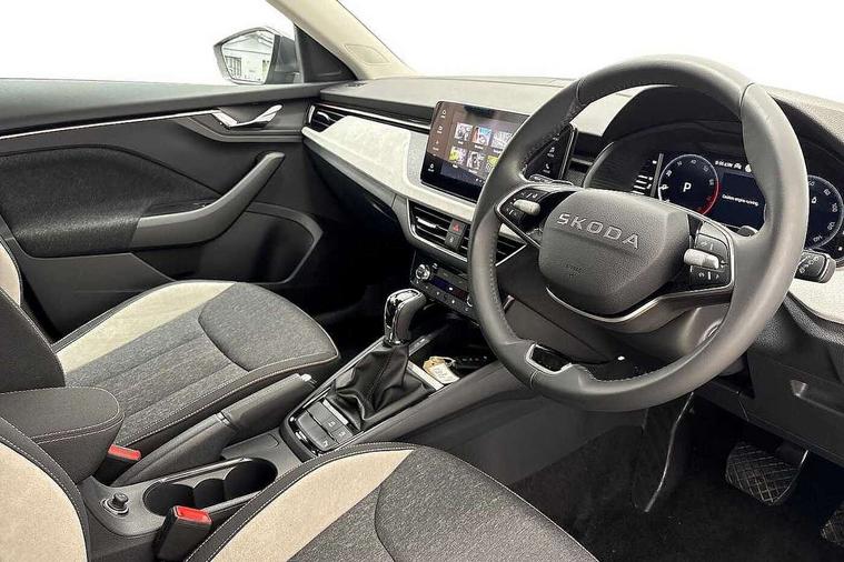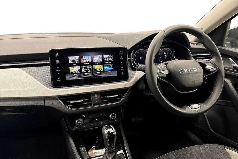 Advanced driver attention and drowsiness monitor, Bluetooth, e-Call (emergency call), Front assist system, PAS, Rear parking sensors, Rear view camera, Speed limiter, Tailgate, Traffic sign recognition, Virtual Cockpit - 10.25" digital display, Voice control system, Wireless smartlink, 4 USB C ports, 8 Speakers, 9.2" Skoda navigation display, DAB radio, Auto dimming rear view mirror, Automatic headlight control with manual coming and leaving home feature, Automatic intermittent wipers, Body colour bumpers, Body colour door mirrors and handles, Chrome moulding around grille, Chrome window frames, Front and rear electric windows, Heated rear window, LED 3rd brake light, LED daytime running lights, LED high beam, LED low beam, Light sensors, Privacy glass, Rear LED fog light, Rear side wing doors, Rear wiper, Tinted windows, Unique dark chrome design logo on alloy wheels, 12V socket in luggage compartment, 3 seat bench in 2nd row, Ambient lighting in white/red, Black / Copper armrest stitching, Cargo elements, Chrome inner door handles, Copper hotstamping, Door inserts in accent black, Driver and passenger sun visors with vanity mirror, Dual zone climate control, Front and rear roof lights, Front centre armrest, Front head restraints, Glasses storage in roof liner, Height adjustable driver seat, Height adjustable passenger seat, Ice scraper, Illuminated glove compartment, Inner circulation control with pollen filter, ISOFIX for front passenger seat, Isofix preparation for back seats, Leather gearknob and handbrake lever, Lodge cloth upholstery, Luggage net under rear parcel shelf, Manual lumbar support for front seats, Net package and top tether hooks in boot space, Pocket on the back of both front seats, incl. mobile phone pockets, Rear centre armrest, Single front passenger seat, Skoda lettering on steering wheel, Textile floor mats, Third rear headrest, Ticket holder, Top tether for front passenger seat, Umbrella in driver's door, Convenience pack without rear camera - Scala, 3x3 point rear seatbelts, ABS, Child locks, Curtain airbags and front side airbags, Disc brakes, Driver and front passenger airbags, ESP, Hill hold control, Manual leather parking brake, One tone horn, Passenger airbag switch off function, Seatbelt reminder for driver and front passenger, Tyre pressure monitoring system, Anti theft alarm system with interior monitoring, backup horn and towing protection, Anti-theft wheel bolts, Remote central locking with 2 remote folding keys, SAFE function for remote central locking, Decorative inserts,