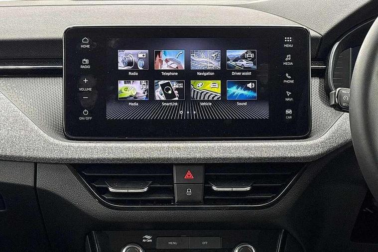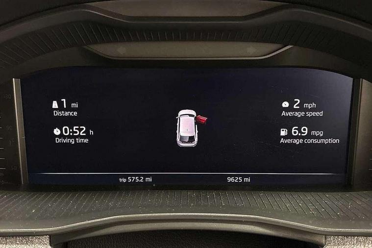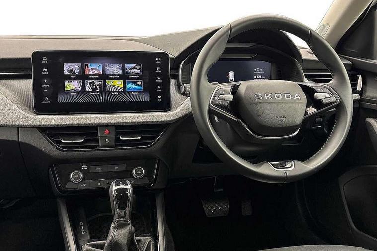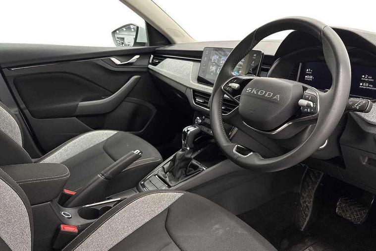 Advanced driver attention and drowsiness monitor, Bluetooth, e-Call (emergency call), Front assist system, PAS, Rear parking sensors, Rear view camera, Speed limiter, Tailgate, Traffic sign recognition, Virtual Cockpit - 10.25" digital display, Voice control system, Wireless smartlink, 4 USB C ports, 8 Speakers, 9.2" Skoda navigation display, DAB radio, Auto dimming rear view mirror, Automatic headlamp activation with Coming home and Leaving home feature, Automatic high/low beam, Body colour bumpers, Body colour door mirrors and handles, Chrome moulding around grille, Front and rear electric windows, Full LED headlights, Heated rear window, LED 3rd brake light, LED brake lights, LED daytime running lights, LED front turning lights, LED high beam, LED low beam, LED taillights, Rear LED fog light, Rear side wing doors, Rear wiper, Tinted windows, Unique dark chrome design logo on alloy wheels, 12V socket in luggage compartment, 3 seat bench in 2nd row, Black / Grey armrest stitching, Black hotstamping, Cargo elements, Chrome inner door handles, Door inserts in satin black, Driver and passenger sun visors with vanity mirror, Dual zone climate control, Front and rear roof lights, Front centre armrest, Front head restraints, Glasses storage in roof liner, Height adjustable driver seat, Height adjustable passenger seat, Ice scraper, Illuminated glove compartment, Inner circulation control with pollen filter, ISOFIX for front passenger seat, Isofix preparation for back seats, Leather gearknob and handbrake lever, Loft cloth upholstery, Luggage net under rear parcel shelf, Manual lumbar support for front seats, Net package and top tether hooks in boot space, Pearl grey ceiling, Pocket on the back of both front seats, incl. mobile phone pockets, Single front passenger seat, Skoda lettering on steering wheel, Textile floor mats, Third rear headrest, Ticket holder, Top tether for front passenger seat, Umbrella in driver's door, 3x3 point rear seatbelts, ABS, Child locks, Curtain airbags and front side airbags, Disc brakes, Driver and front passenger airbags, ESP, Hill hold control, Manual leather parking brake, One tone horn, Passenger airbag switch off function, Seatbelt reminder for driver and front passenger, Tyre pressure monitoring system, Anti theft alarm system with interior monitoring, backup horn and towing protection, Anti-theft wheel bolts, Remote central locking with 2 remote folding keys, SAFE function for remote central locking, Decord pad, door inserts Kota uni,