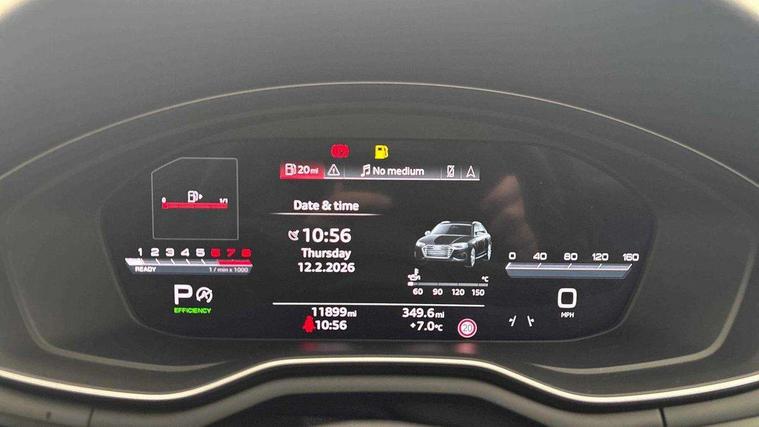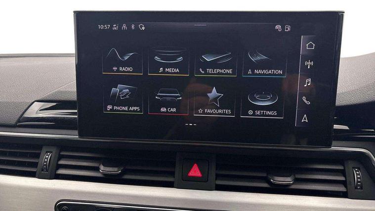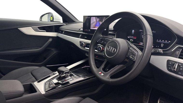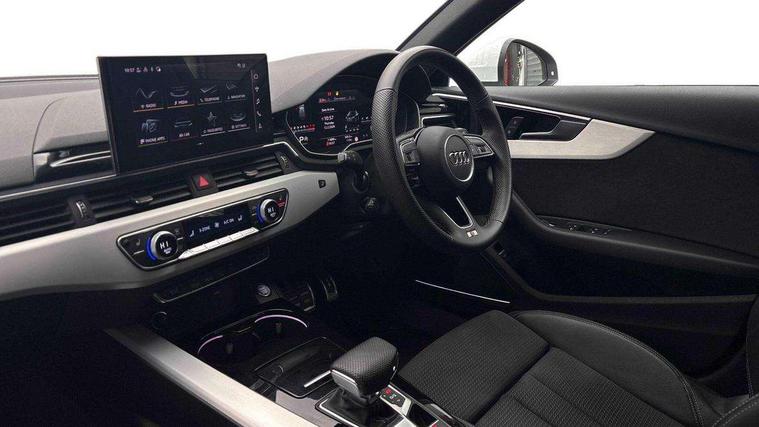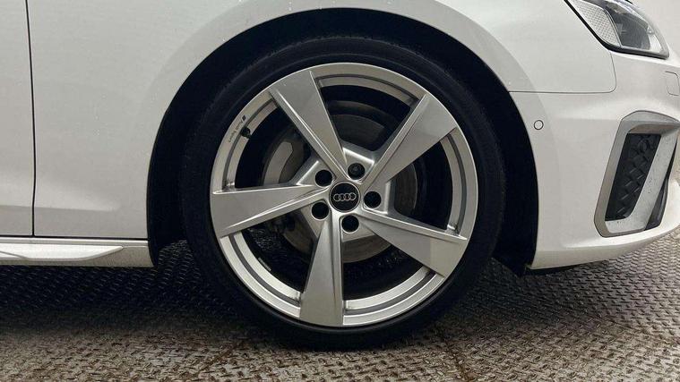 Audi connect safety and service (e-call), Audi drive select, Audi smartphone interface, Audi virtual cockpit, Automatic start-stop system with coasting functionality and efficiency programme, Bluetooth interface, Camera based traffic sign recognition, Electromechanical power steering, Email, calendar and text messages displayed via MMI, Front and rear parking sensors, Lane departure warning, MMI Navigation plus with MMI touch includes 10.1" high resolution colour MMI display, 3D map, Power operated tailgate, Rear view camera, Voice control system, 54 litre fuel tank, Sports suspension lowered by 23mm, 2 USB charging ports, 8 passive loudspeakers, DAB digital radio reception, Aluminium roof rails, Auto dimming rear view mirror, Body colour door handles, Body colour front spoiler lip, Body colour side sill trim, Body coloured door mirrors, Electric adjustable/heated/folding door mirrors with auto dimming, Grained matt black side air inlets with matt aluminium silver inlay, High beam assistant, Honeycomb structure radiator grille in grained matt black, LED headlights with LED rear lights + dynamic rear indicators + headlight adjustment and high beam, turning light + LED daytime running lights, LED third brake light, Matt aluminium silver tailpipe trim, Privacy glass, Rain and light sensors, Rear side wing doors, Rear wiper, S Line badges on the front wings, S line front and rear bumpers with side skirts, S Line rear diffuser in matt anthracite black with trim strip in matt aluminium silver, S Line roof edge spoiler, Variable intermittent front wash/wipe, Windscreen with acoustic glazing, 3 spoke high multi-function sports leather steering wheel grips in perforated leather with S badging including paddle shift, 4 way electric lumbar support for driver and front passenger, 40/20/40 split folding 3 rear seat bench in 3 parts with rear centre armrest, Black carpets, Black cloth headlining, Black perforated leather gearknob, Contrast stitching on seats, steering wheel and gear lever gaiter, Deluxe 3 zone electronic climate control, Electric load area cover, Front and rear head restraints, Front centre armrest, Heated front seats, Illuminated door sill trims with S logo, ISOFIX child seat mounting and top tether, Manual seat adjustment, Single front passenger seat, Stainless steel pedals and foot rest, High gloss package - A4, LED Interior light pack - A4/S4, 3 rear seatbelts, 6 airbags - Driver, front passenger, curtain and side windows, Attention and drowsiness assist, Electronic Stabilisation Control (ESC) including ABS, ASR and EDL, Hill hold assist, Multi collision brake assist, Pop-up bonnet for pedestrian protection, Pre sense city, Rear door child safety locks, Seatbelt monitoring, Warning triangle and first aid kit, Anti theft alarm, Anti theft wheel bolts, Central locking, Keyless Go, Matt brushed aluminium inlays, Tool kit, Tyre repair kit,