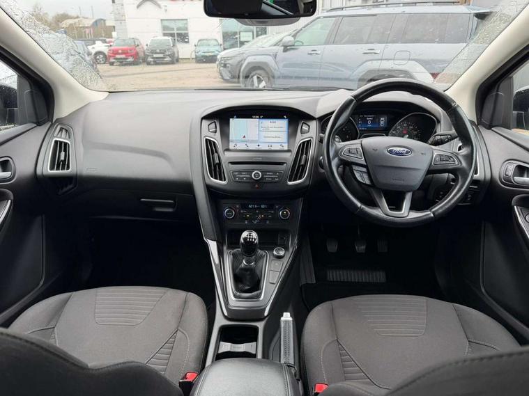 Cruise control + speed limiter, Digital clock, Easy fuel capless refuelling system, Eco mode, Electric boot release, PAS, Rear parking sensor, TFT cluster screen, Trip computer, Diesel particulate filter, 6 speakers, Aux input, Steering column with mounted audio controls, SYNC 2 DAB radio/CD, 8" colour touch screen, emergency assistance, Bluetooth connection, advanced voice control, USB connection, 'Quickclear' heated windscreen/heated washer jets, Auto dimming rear view mirror, Automatic headlights, Automatic rain sensing wipers, Body colour bumpers, Body colour door handles, Body colour door mirrors, Body colour rear spoiler, Chrome finish on upper door line, Chrome radiator grille and surround, Electric adjustable heated door mirrors, Front fog lights, Front variable intermittent wipers with electric wash, Heated rear window, LED daytime running lights, Tailgate wash/wipe, 3 spoke leather steering wheel, 60/40 split back and cushion rear seats with 2 height adjustable headrests, Centre console storage box/armrest, Driver's seat with adjustable lumbar support, Dual electronic automatic temperature control air conditioning - CFC-free, Height adjustable front headrests, Isofix child seat preparation, Passenger seat height/lumbar adjustment, Reach + rake adjustable steering column, Sports style front seats, ABS+Electronic Brake force Distribution, Active city stop, Driver airbag, ESP with traction control + emergency brake assist, Front inertia reel height adjustable seatbelts with pre-tensioners, Front passenger airbag, Front side airbags, Hill start assist, Side curtain airbags, Three rear inertia reel lap/diagonal seatbelts, Torque vectoring brake, Tyre pressure monitoring system, Immobiliser-Passive Anti-Theft System (PATS), Key free system, MyKey system, Remote central double locking, Thatcham Cat.1 alarm,