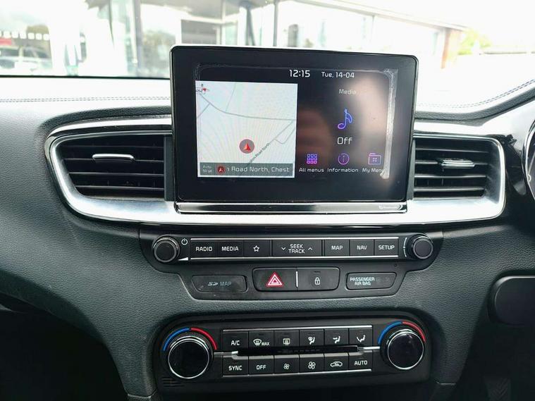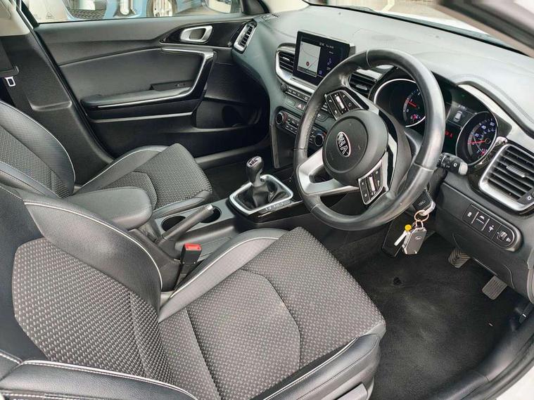 10.25" touchscreen satellite navigation including telematics, 4.2" supervision colour cluster display, Apple car play/Android Auto with voice control, Bluetooth with Voice Recognition & Music Streaming, Cruise control + speed limiter, Driver attention warning, Emergency stop signalling system, Forward Collision-Avoidance Assist (FCA) - City/Pedestrian, Kia connected services featuring TomTom live, Lane keep assist, Motor driven power steering, Outside temperature gauge, Rear parking sensor, Reversing camera with dynamic guide lines, Service interval indicator, Trip computer, Diesel particulate filter, Intelligent Stop and Go, 6 speaker audio system, DAB Radio with MP3, Illuminated USB & aux ports, Steering wheel mounted controls, USB & AUX Ports for Connection of a Media Device, USB Fast Charger in Front Centre Console, All-round Electric Windows with Front Auto Up & Down Function, Auto dimming rear view mirror, Automatic defog system, Automatic headlights, Body colour bumpers, Body colour door mirrors, Body colour exterior door handles, Chrome window surround, Electric adjustable/heated/folding door mirrors with LED Indicators and Kerbside Lights, Front fog lights, Front wiper de-icer, Heated rear window with timer, High beam assist, High gloss black radiator grille, LED daytime running lights, LED High-mounted Brake Light, LED rear lights, Privacy glass (rear side windows and rear screen), Projection headlights with cornering lights, Rain sensing front wipers, Rear spoiler, Rear wash/wipe, Tinted glass, Wide view drivers door mirror, Windscreen Washer Level Warning, 12V socket in luggage compartment, 3 x passenger assist grips, 60/40 split folding rear seat, All-round height adjustable headrests, Centre console storage box/armrest, Cloth/faux leather upholstery, Cupholders in centre console, Cupholders in rear armrest, Dash illumination dimmer switch, Driver & Front Passenger Sunvisors with Vanity Mirror Illumination & Ticket Holder, Driver + front passenger electric lumbar support, Driver's seat height adjuster, Dual Height Luggage Area Floor, Dual zone automatic air conditioning, Faux leather door trim, Front and rear door storage, Front map light with sunglasses case, Front Passenger Seat Height Adjuster, Front seat and rear pockets, Gear shift indicator, Headlining in Light grey, Illuminated ignition key hole, Interior door lock/unlock function, ISOFIX Child seat top tethers and anchor fixings, Leather handbrake, Leather steering wheel and gearshift, Luggage area light, Luggage area parcel shelf, Luggage hooks, Rear centre armrest, Rear coat hooks, Satin chrome interior door handles, Tilt/telescopic adjustable steering wheel, ABS with Electronic Brakeforce Distribution (EBD) and Brake Assist System (BAS), All round 3-point seatbelts, Dual front side airbags, Dual horn, Electronic stability control (ESC) and vehicle stability management (VSM), Front passenger airbag deactivation, Height adjustable front seatbelts, Hill start assist control (HAC), Impact sensing auto door unlocking, Rear door child safety locks, Seatbelt reminder warning, Traction control, Twin curtain airbags, Twin front airbags, Tyre pressure monitoring system, Alarm system, Engine Immobiliser & Deadlocks, Locking wheel nuts, Remote central door locking with fold away key, Speed sensitive auto door locking, Black high gloss front console tray garnish & door trim, Satin Chrome Fascia Trim, 17" Alloy wheels, Tyre mobility kit,