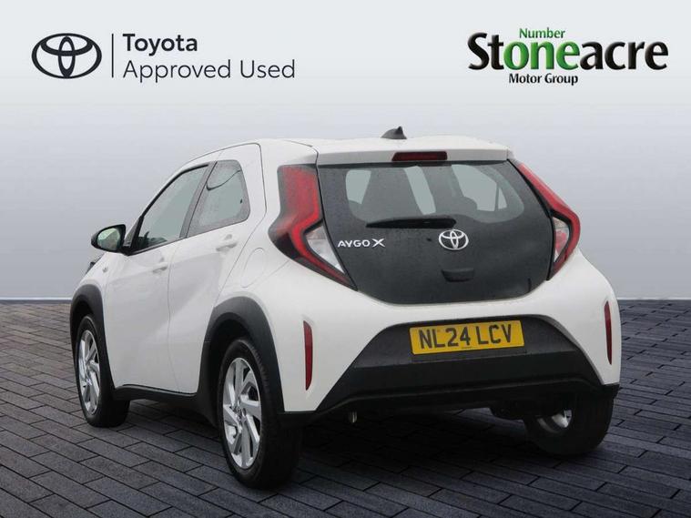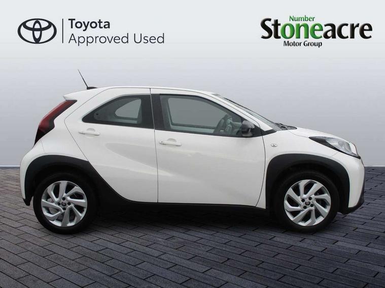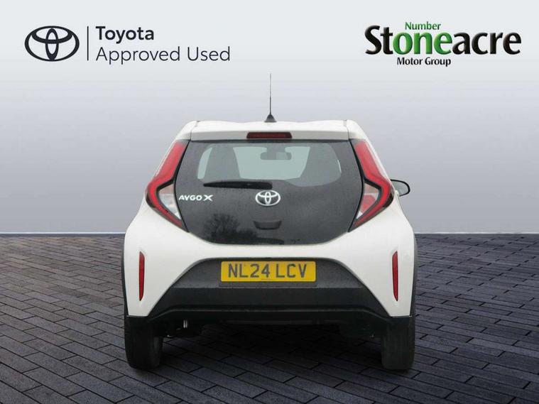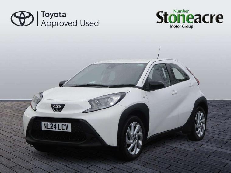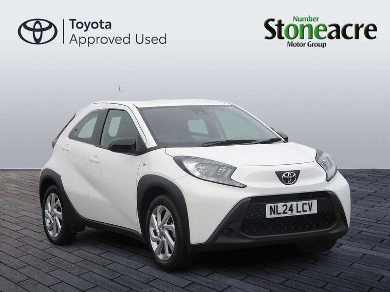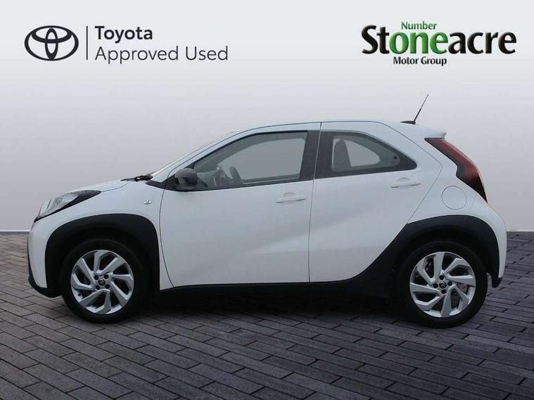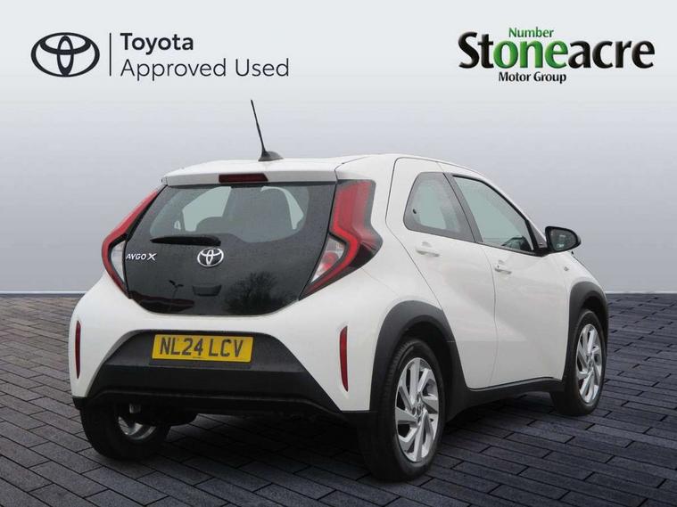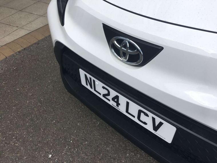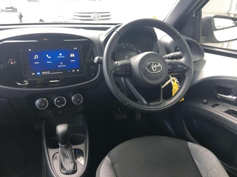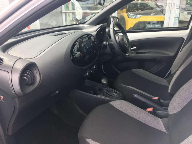 4.2" TFT colour screen, Adjustable speed limiter, Analogue speedometer, Bluetooth connectivity, Digital tachograph, Driver attention alert system, eCall emergency call system, ECO-driving indicator, Electric power steering, Intersection turn assist, Key reminder warning, Noise reduction kit, Pre collision system with emergency steering assist, Reversing camera with static guide lines, Smart phone integration with Apple car play/Android Auto, Speed limit display, Start and stop, Vehicle Stability Control (VSC), 4 speakers, 9" HD multimedia display touch screen with Toyota smart connect, DAB digital audio broadcast, USB connector, Auto headlights, Automatic headlights cut-off, Bicycle towing hook, Black lower front grille, Black rear bumper, Black side protection mouldings, Black upper front grille, Black wheel arch mouldings, Body colour door handles, Body coloured front bumper, Boot door scuff plate, Electric heated door mirrors, Follow me home headlights, Front power windows, Gloss black door mirrors, Headlight cut-off reminder, LED daytime running lights, LED front light guide, LED High mounted stop lamp, Manual day/night rear view mirror, Manual headlight levelling, Pagoda roof, Power adjustable door mirrors, Power back door, Projector halogen headlights, Rain sensor, Rear combination lights LED bulb type, Rear side wing doors, Rear windscreen defogger, Rear windscreen wiper, Short antenna, Variable intermittent windscreen wipers, 12v power outlet - front, 2 seat bench in 2nd row, 3 spoke leather steering wheel, 50/50 split folding rear seat, Adhesive roof headlining, Adjustable speed limiter switch on steering wheel, Audio and telephone switches on steering wheel, Black insert on steering wheel, Boot light, Centre room light, Chrome interior door handles, Chrome surround on air conditioning buttons, Clean air filter, Fabric upholstery, Floor mats, Front and rear cup holders, Front head rest deco art, Front head restraints, Gear shift indicator, Height adjustable driver seat, Intelligent adaptive cruise control switch on steering wheel, ISOFIX child restraint system on rear seats, Lane departure alert switch on steering wheel, Leather gearshift knob, Light grey roof lining, Manual air conditioning, Manual tilt steering wheel, Manually reclining and sliding driver seat, Manually reclining and sliding front passenger seat, Multimedia switches on steering wheel, Pollen filter, Rear door pockets, Rear head restraints, Resin console box storage, Satin silver insert on gear shift knob, Silver stitching on gear shift knob, Single compartment glovebox with lights, Single front passenger seat, Soft tonneau cover, Sun visors with mirror on driver and passenger side, Voice recognition switch on steering wheel, Toyota safety sense pack - Aygo X, Anti lock braking system + Electronic brake force distribution, Child safety door lock, Emergency brake light signal (EBS), Hill start assist control (HAC), Passenger airbag on/off switch, Seat belt reminder for front and rear seats, Supplement restraints system (SRS) - 6 airbags, Traction control, Tyre pressure warning system, Immobiliser, Remote power door locks, Black air vent surround, Black wheel centre caps, Tyre repair kit,